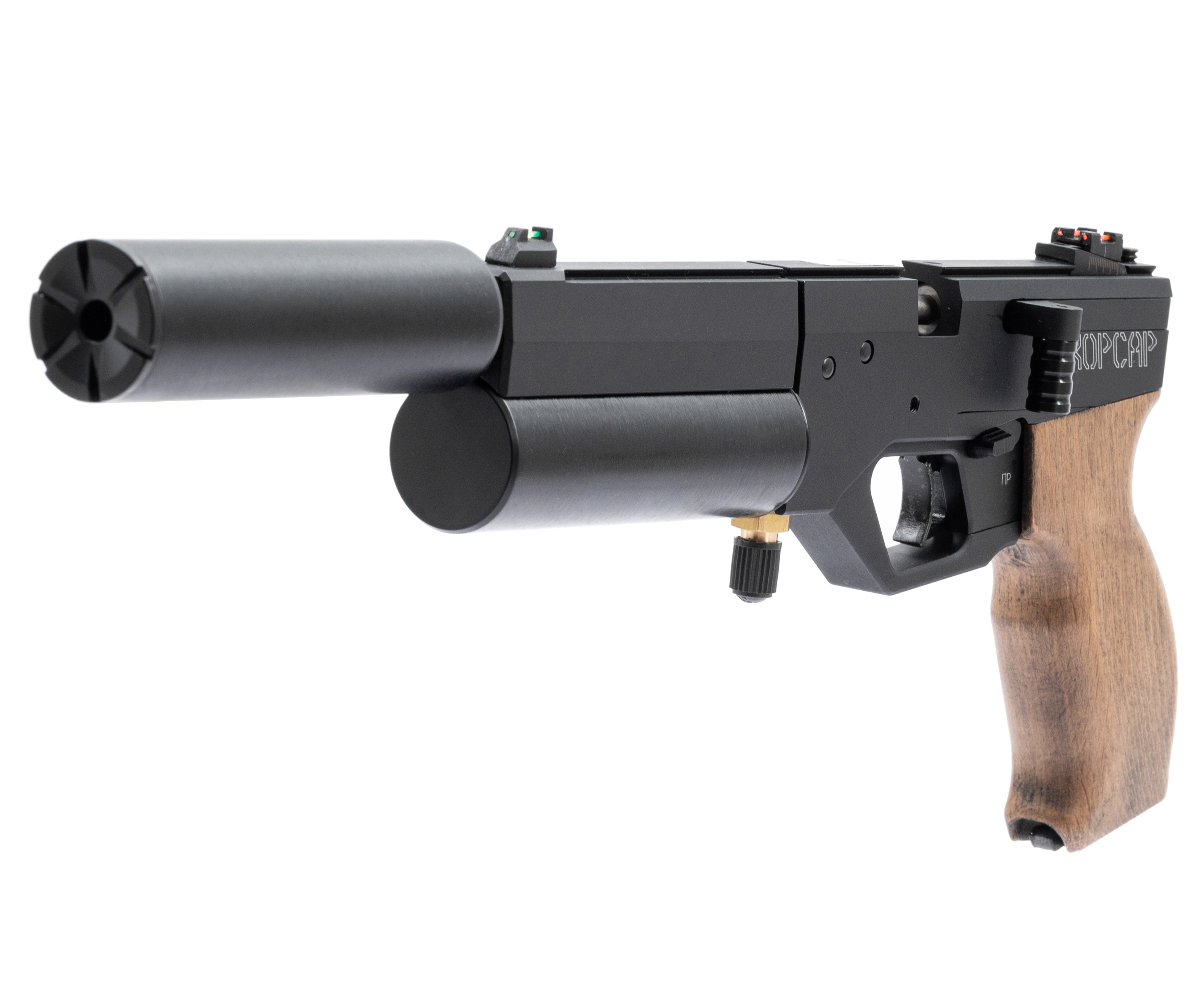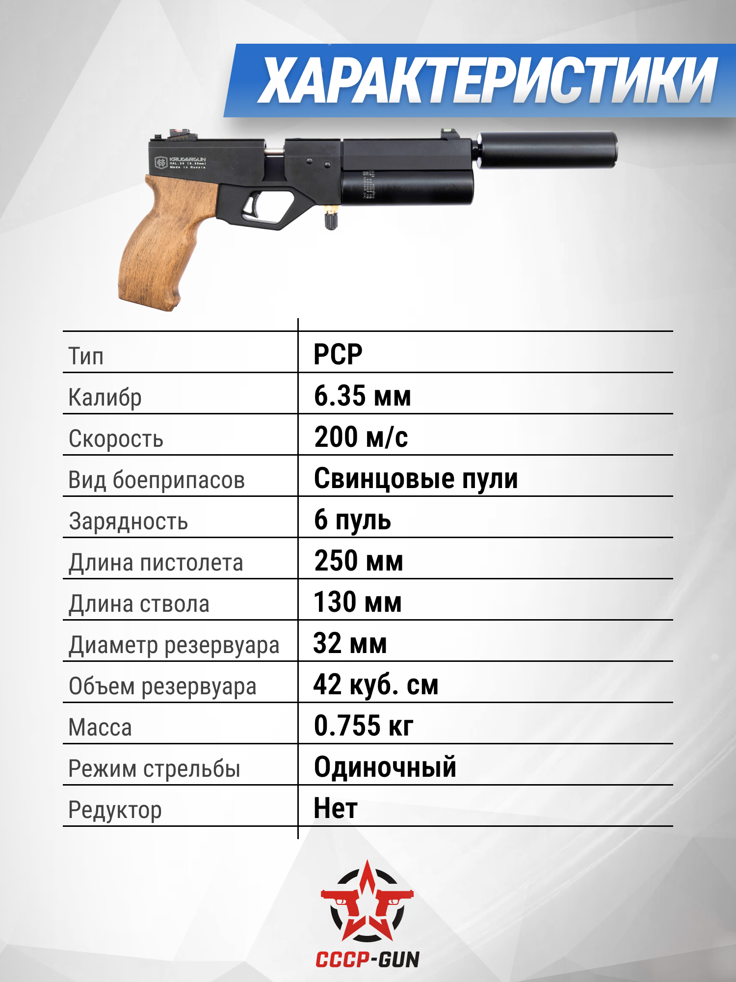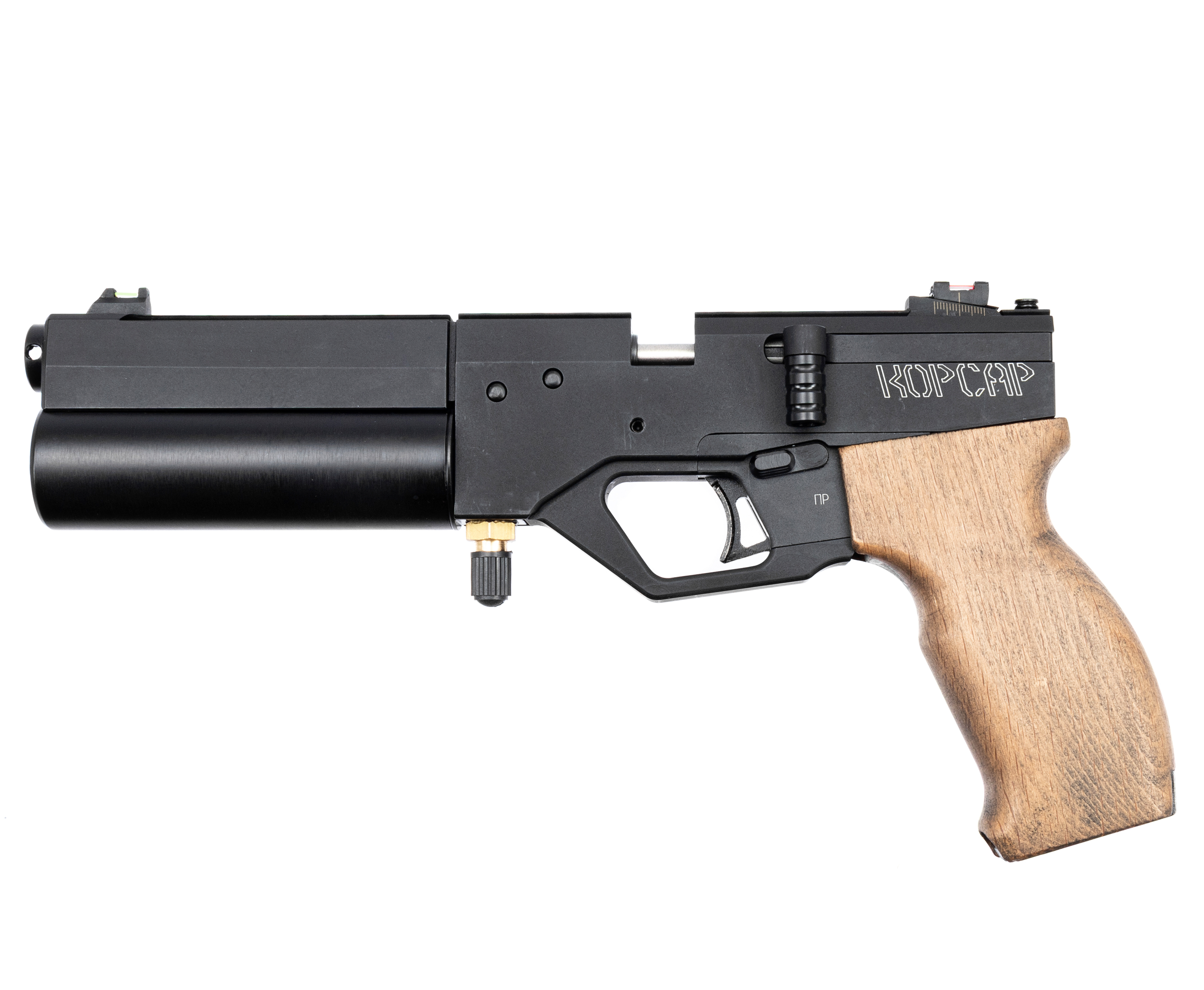 Крюгерган Корсар Компакт Д32 с деревянной рукоятью свободно продается в России по той причине, что производитель выпускает пистолеты с дульной энергией не переходящей за рамки показателя 3 J. Это позволяет приобретать изделия начинающим спортсменам из стрелковых дисциплин, которые пока не получили оружейную лицензию. После усиления обозреваемый пистолет будет разгонять боеприпасы до скорости равной 200 метров в секунду. Для безопасности стрелка и его окружения инженеры Krugergun спроектировали на пистолете надежный флажковый предохранитель.