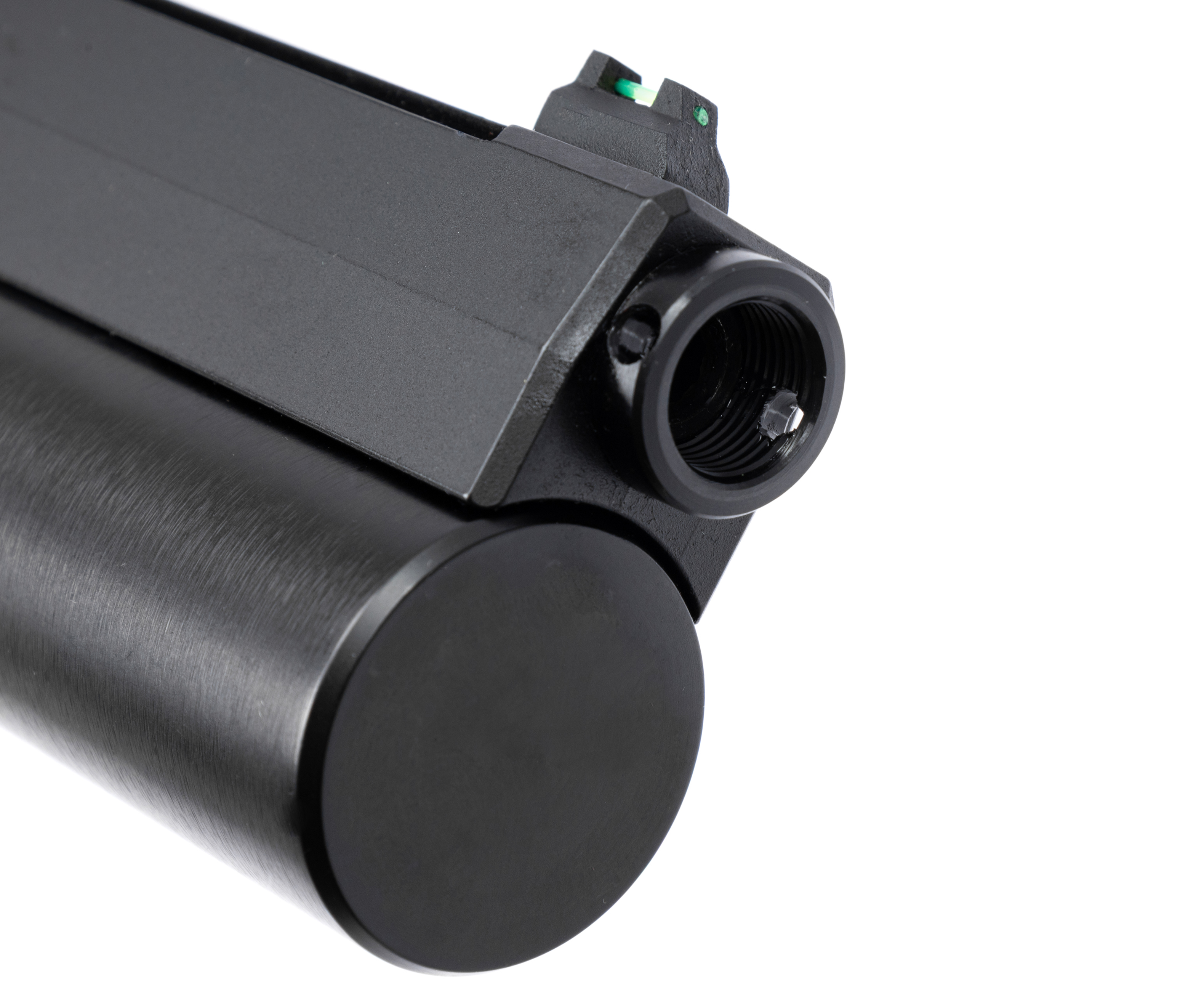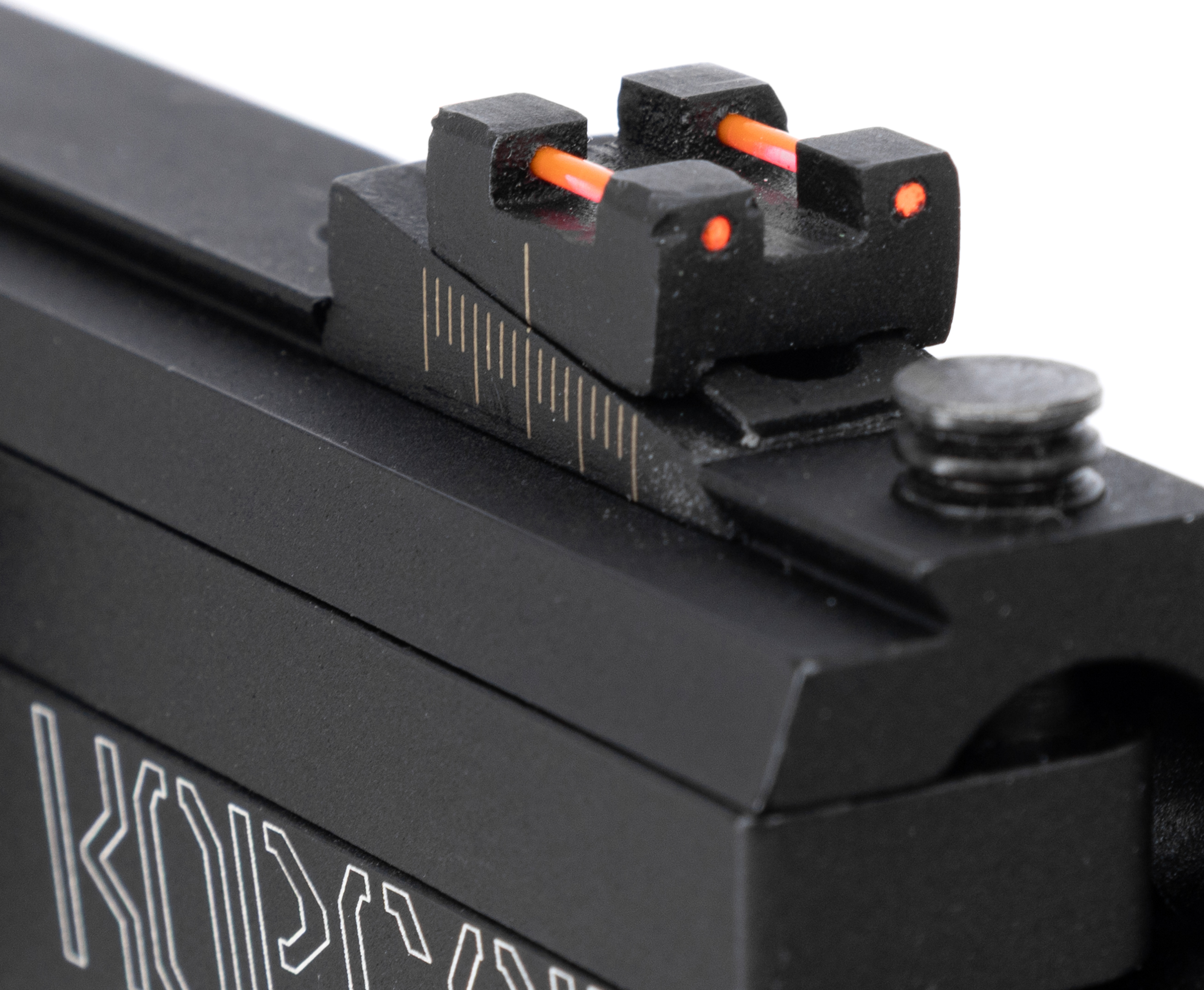 Приятным бонусом в Krugergun Компакт является наличие фиброоптических стержней внутри мушки и регулируемого целика, что помогает работать с пневматикой в темное время суток. На корпусе пистолета также спроектирована планка «Ласточкин хвост» и специальное крепление на пятке рукояти, что помогает докупить дополнительные прицельные приспособления и приклад, сделав из модели мини карабин.