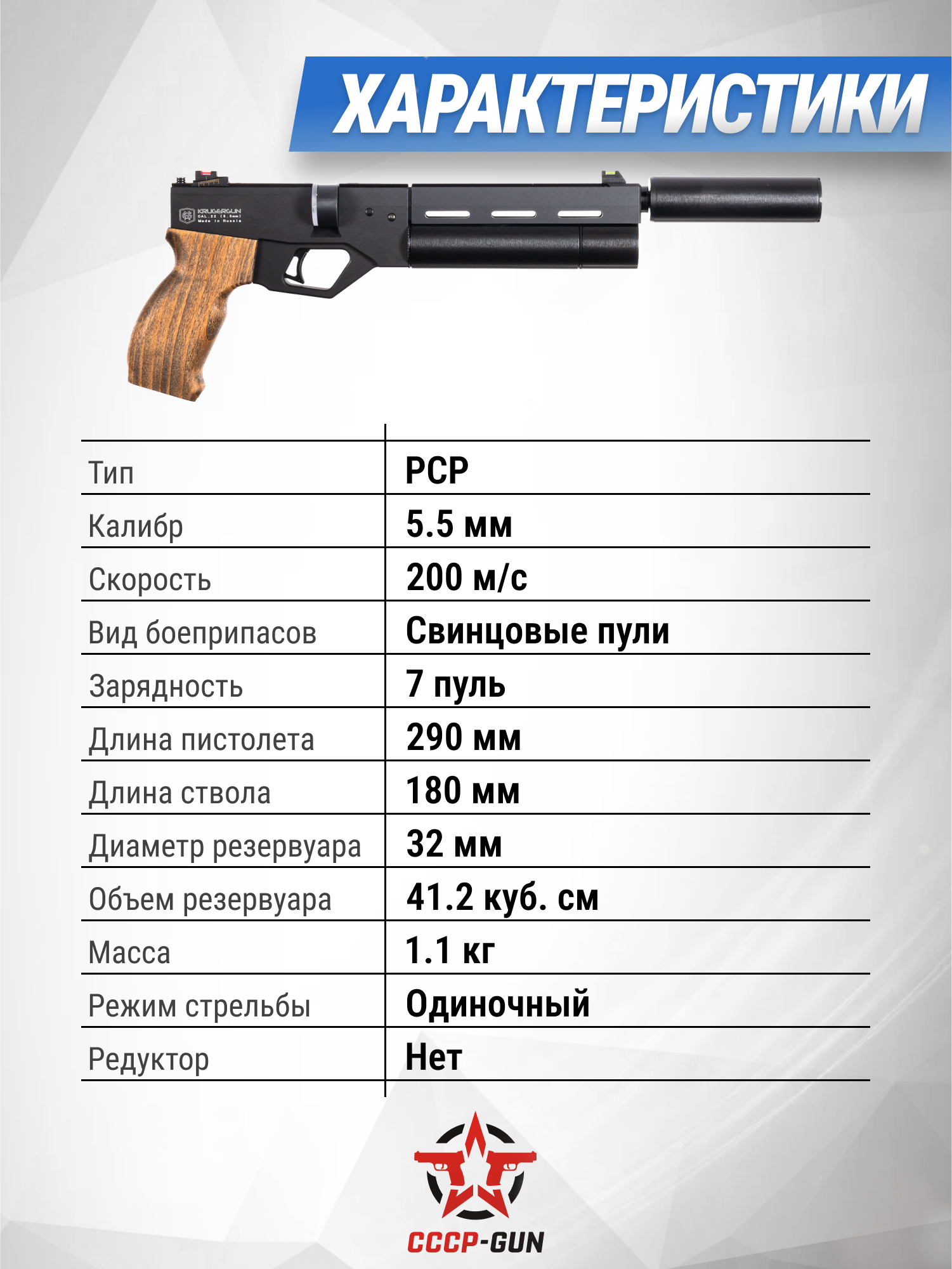 Помимо отмеченных особенностей, требуется обратить внимание на высокую степень удобства эксплуатации изделия. За счет эргономичной формы деревянной рукояти, описываемый пистолет КрюгерГан Корсар удобен в обращении в любом положении ведения стрельбы. Кроме того, по желанию пользователя пневматика может быть дополнена прикладом скелетного типа, который приобретается отдельно и монтируется в основании пистолетной рукоятки.