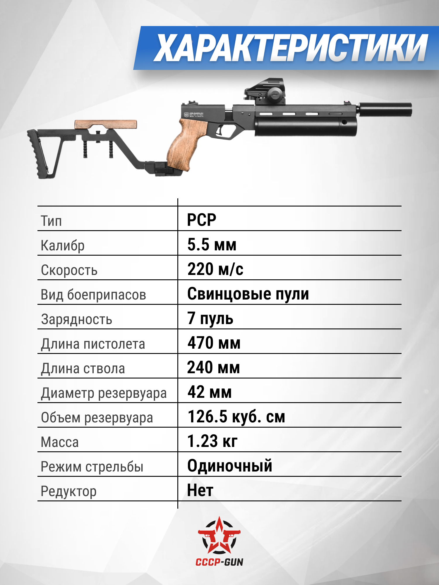 Пневматический пистолет KrugerGun Корсар 6.35 мм (240 мм, D42, приклад, редуктор, дерево, с манометром)