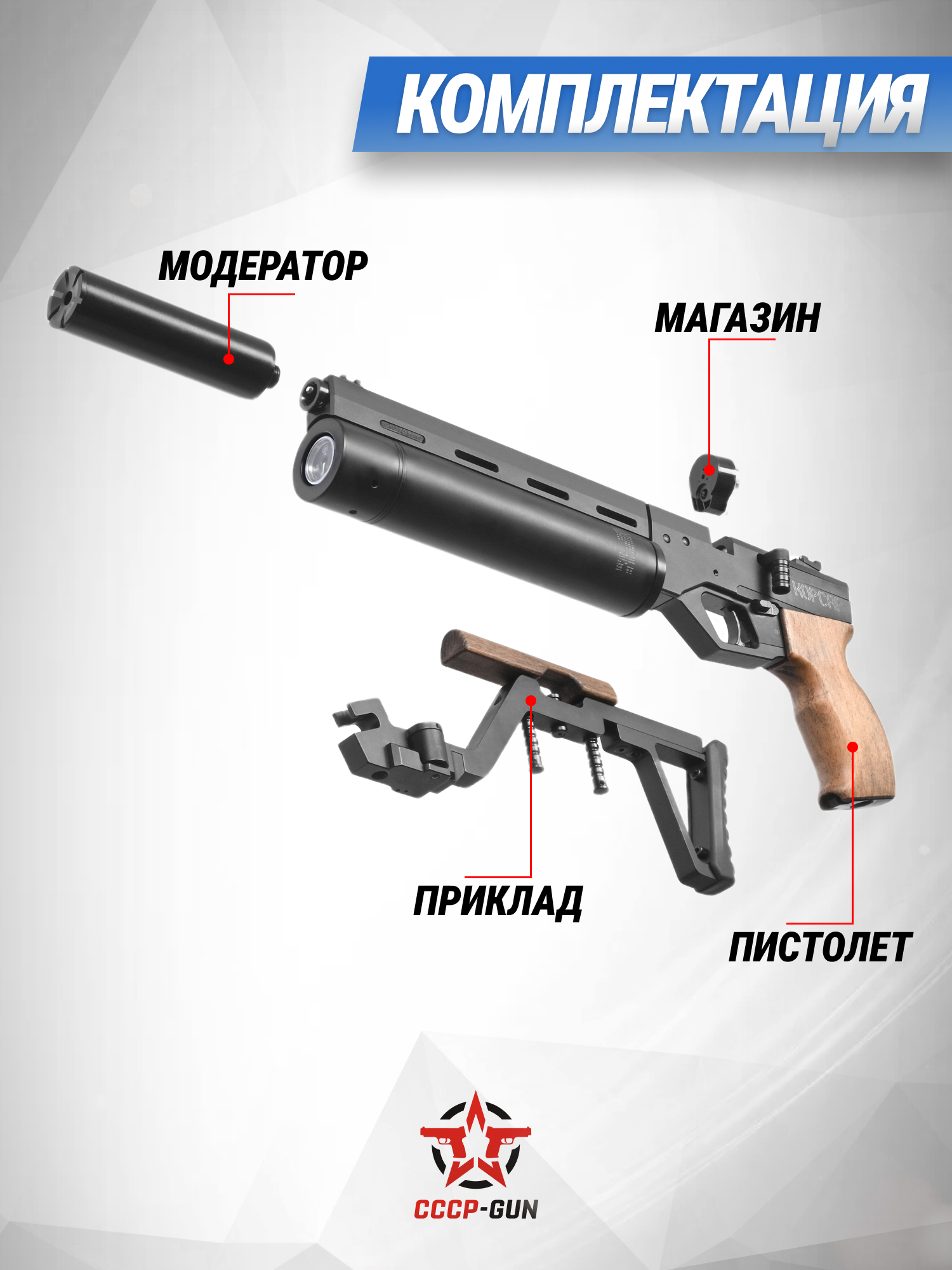 Пневматический пистолет KrugerGun Корсар Компакт Hunter Set 5.5 мм (дерево, приклад, цевье, D32, подарочный набор)