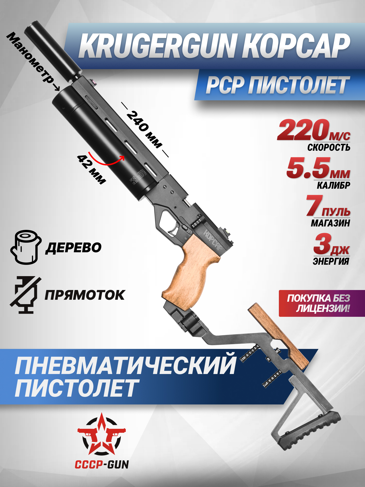 Пневматический пистолет KrugerGun Корсар 5.5 мм (240 мм, d42, прямоток, дерево, с манометром)