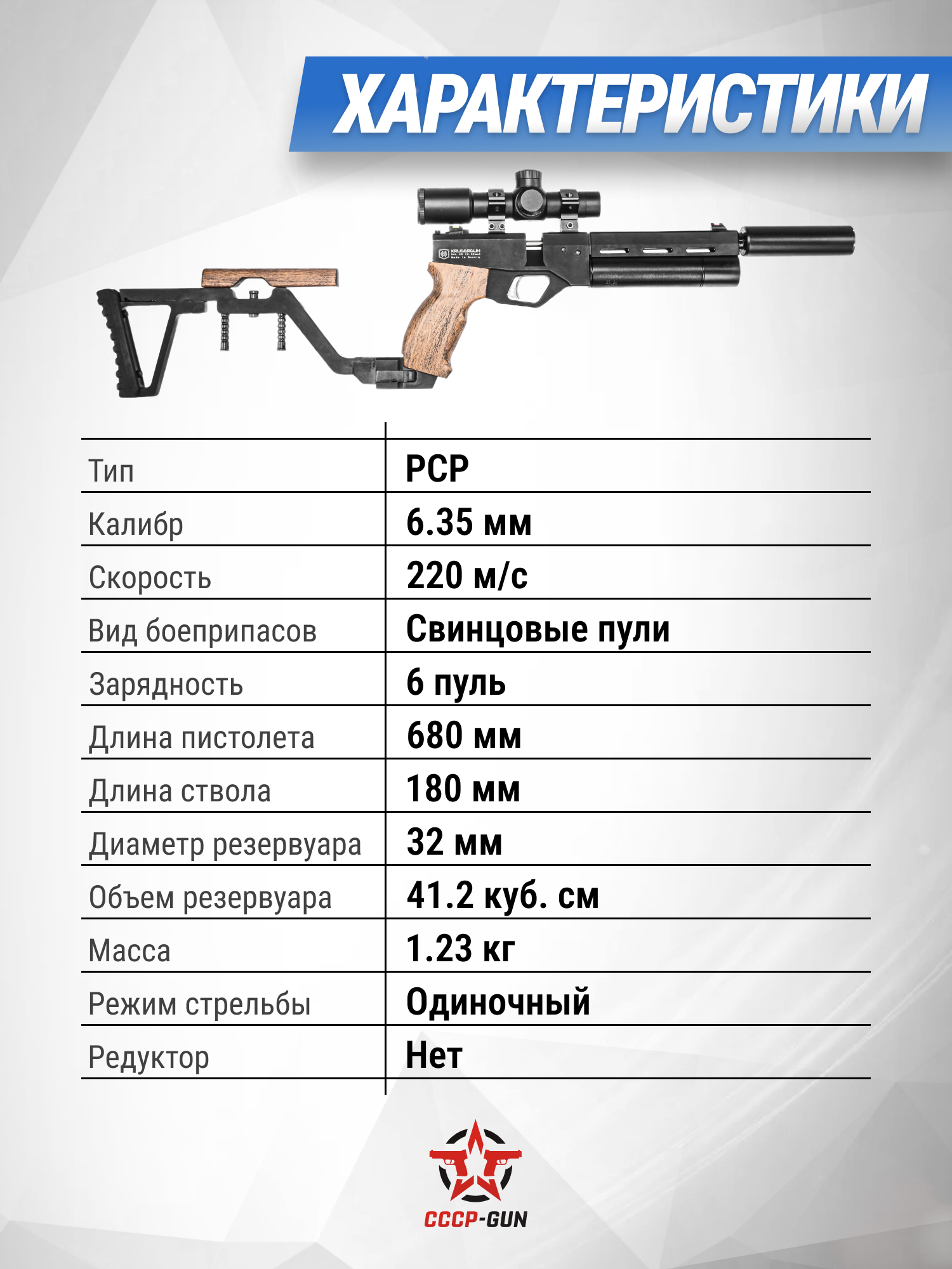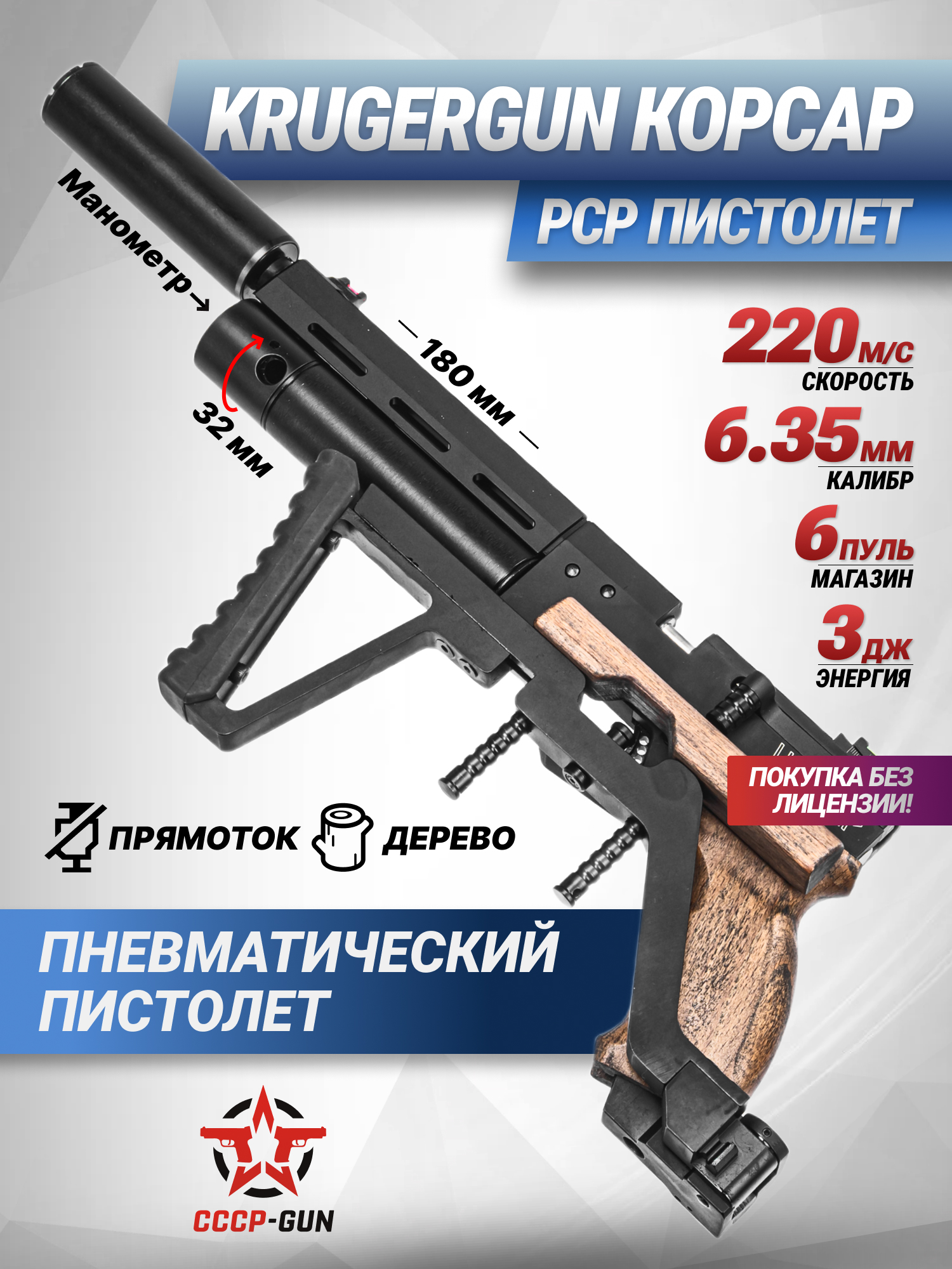 Пневматический пистолет KrugerGun Корсар 6.35 мм (180 мм, d32, редуктор, дерево, приклад, с манометром)