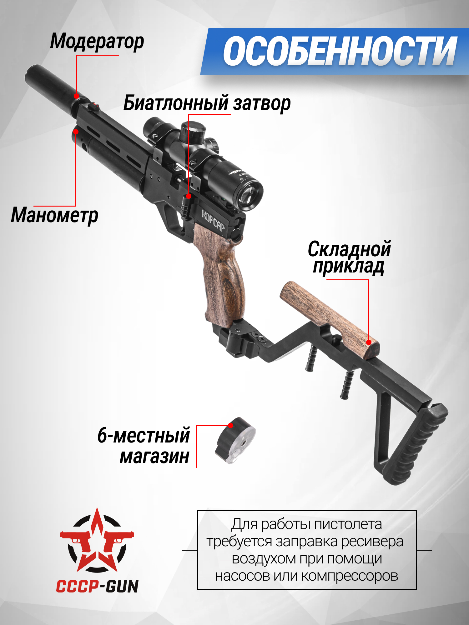 Пневматический пистолет KrugerGun Корсар 6.35 мм (240 мм, D42, приклад, редуктор, дерево, с манометром)