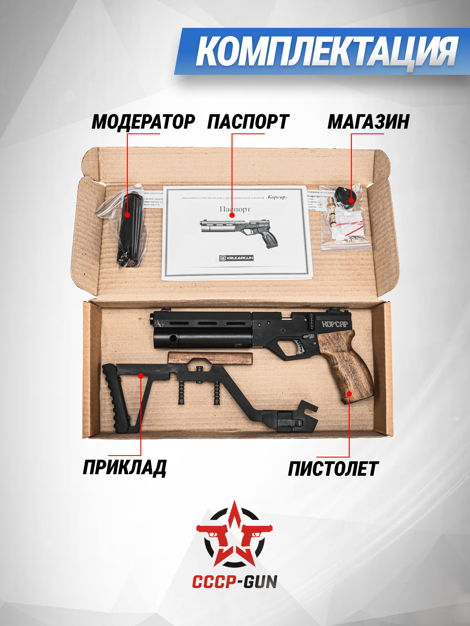 Пневматический пистолет KrugerGun Корсар Компакт Hunter Set 5.5 мм (дерево, приклад, цевье, D32, подарочный набор)