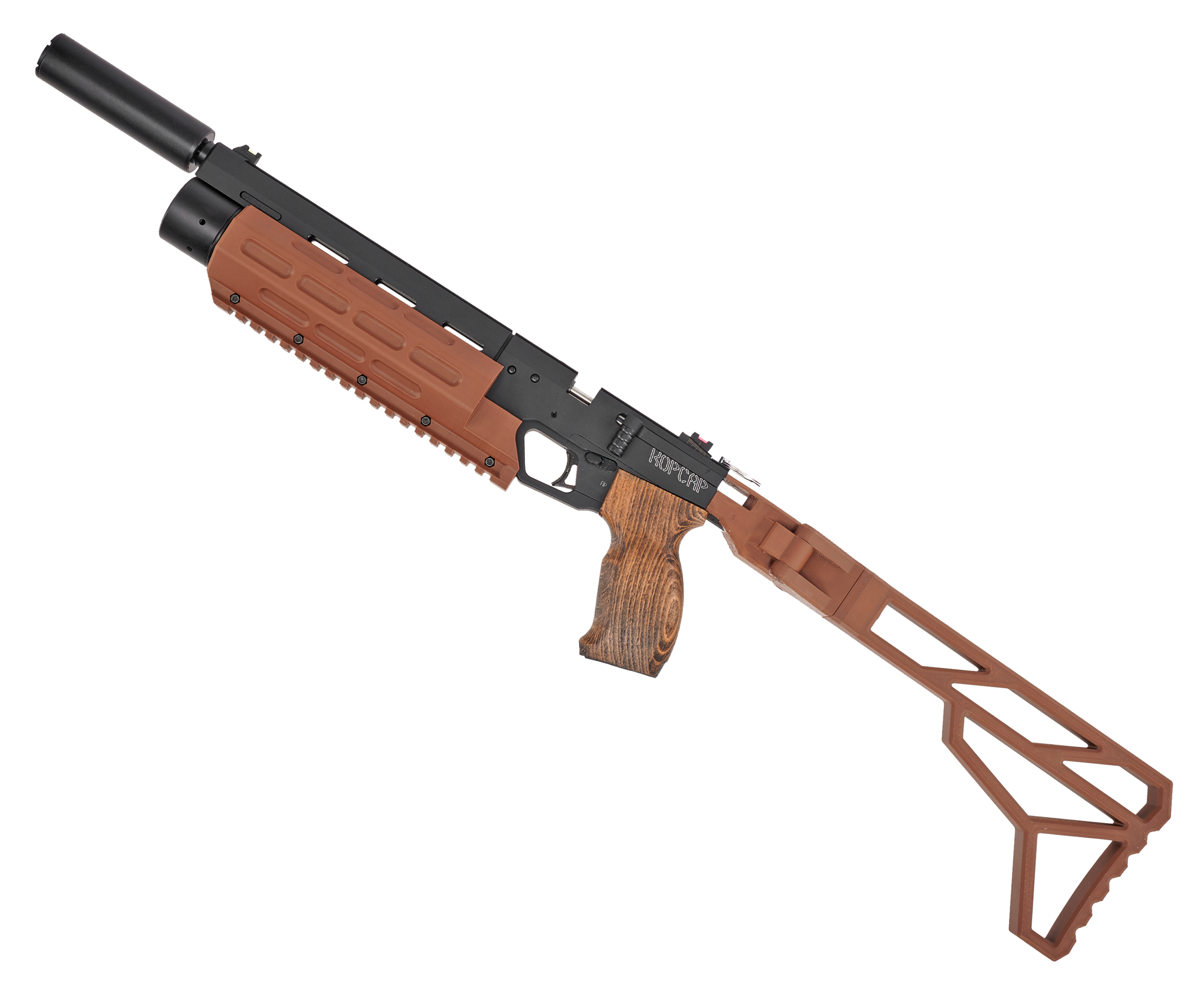 Для установки тюнинга нужен шестигранный ключ, которым важно не перетягивать резьбу, чтобы не повредить детали. Цевье крепится на ресивер 126.5 куб. см, а приклад с помощью пробки и фиксатора из комплекта. Перечисленные элементы тюнинга созданы из коричневого ударостойкого полимера методом FDM-печати, поэтому устойчивы к влаге и выдерживают диапазон температур, равный -40/+65 градусов по шкале Цельсию.