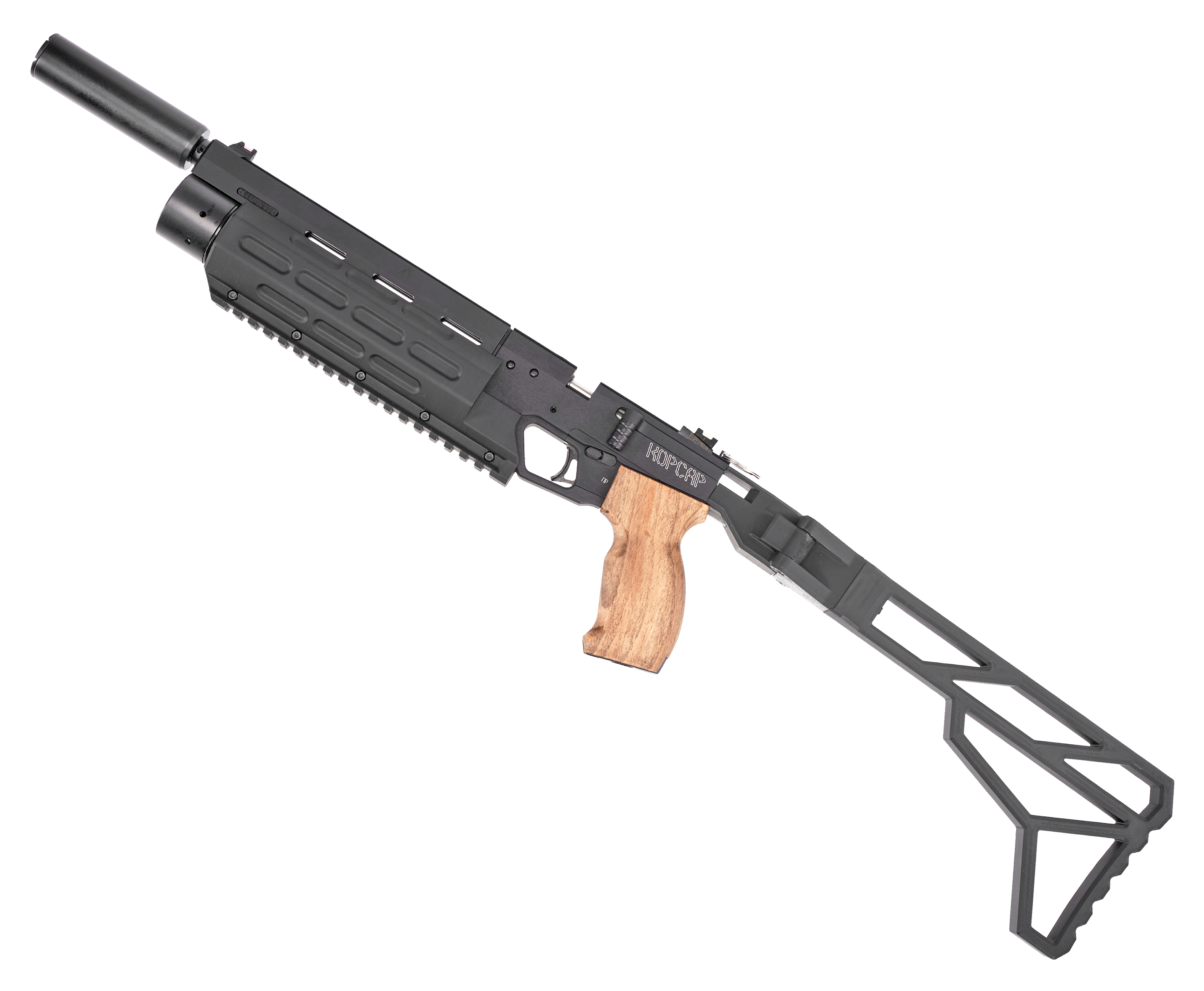 Габариты самого пистолета в длину составляют 350 мм, что с учетом массы, равной 1.17 кг, позволяет проще хранить и переносить изделие. Штатная деревянная рукоять оружия создана для комфортной стрельбы из любого положения, что в комбинации с тюнингом помогает добиться лучших результатов. Цевье с планкой Weaver спроектировано для монтажа на пневматике упоров, фонарей и ЛЦУ, а складной приклад с противоскользящим тыльником реализует плотную вкладку и без труда возвращает модель к стандартным размерам.