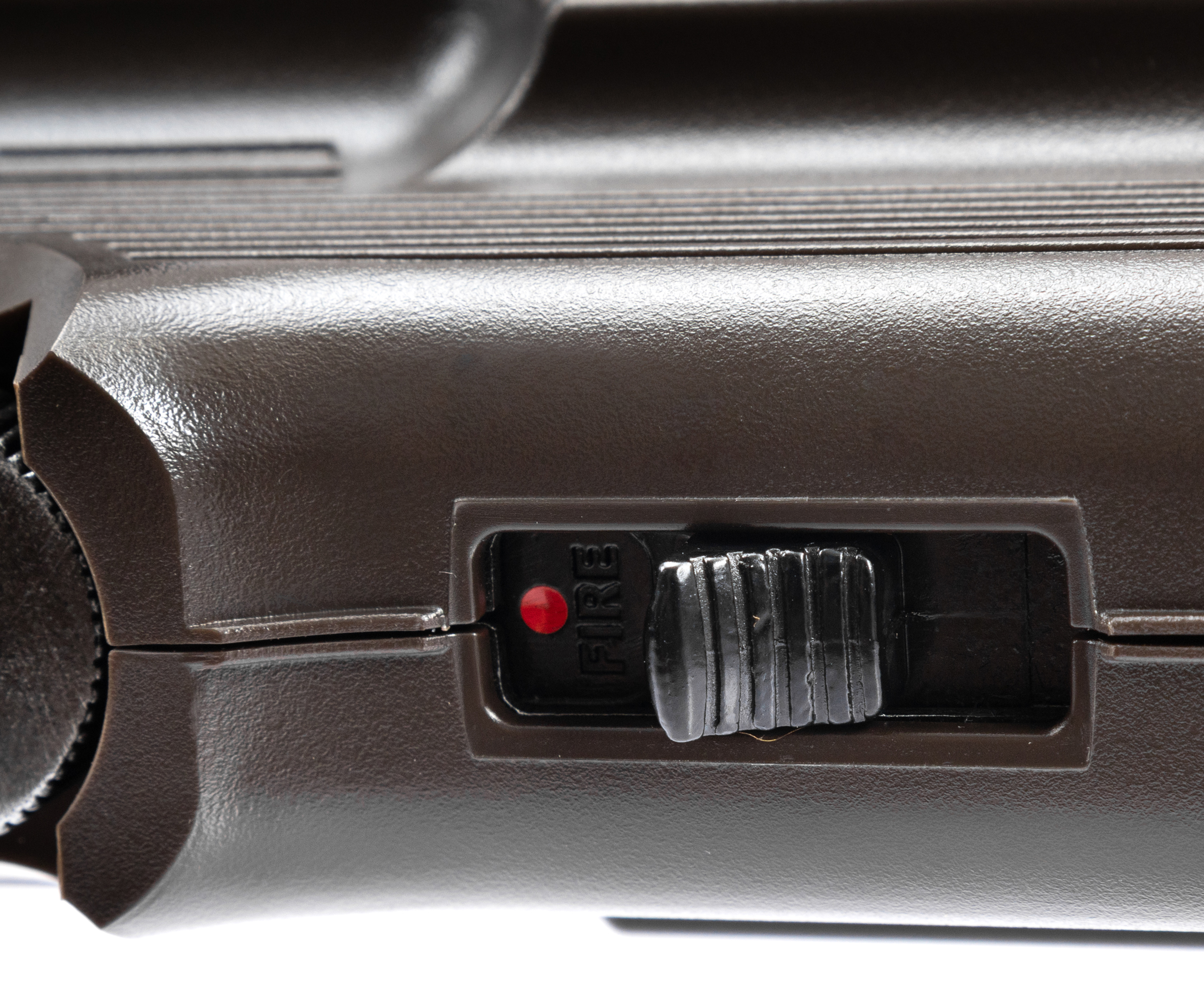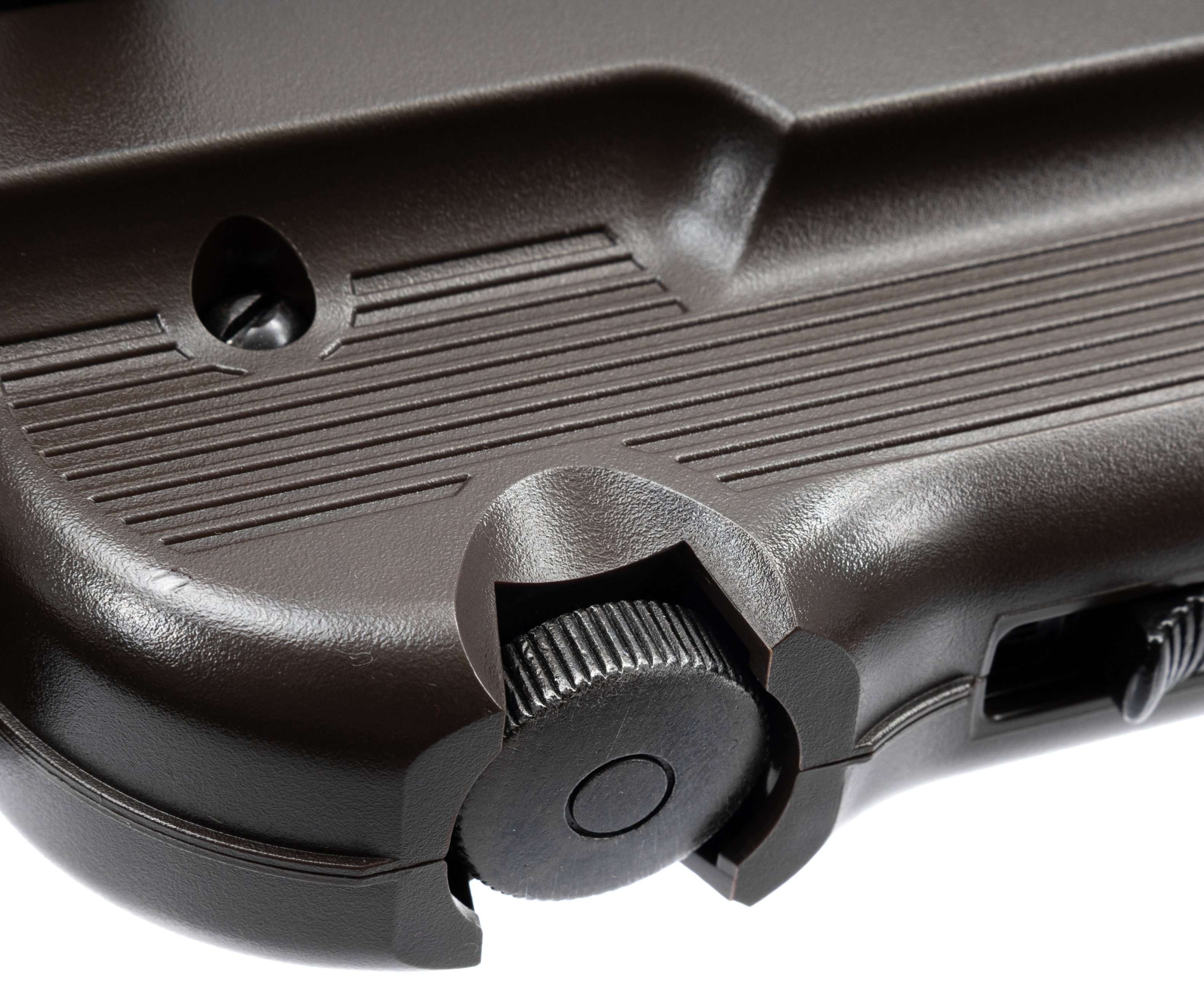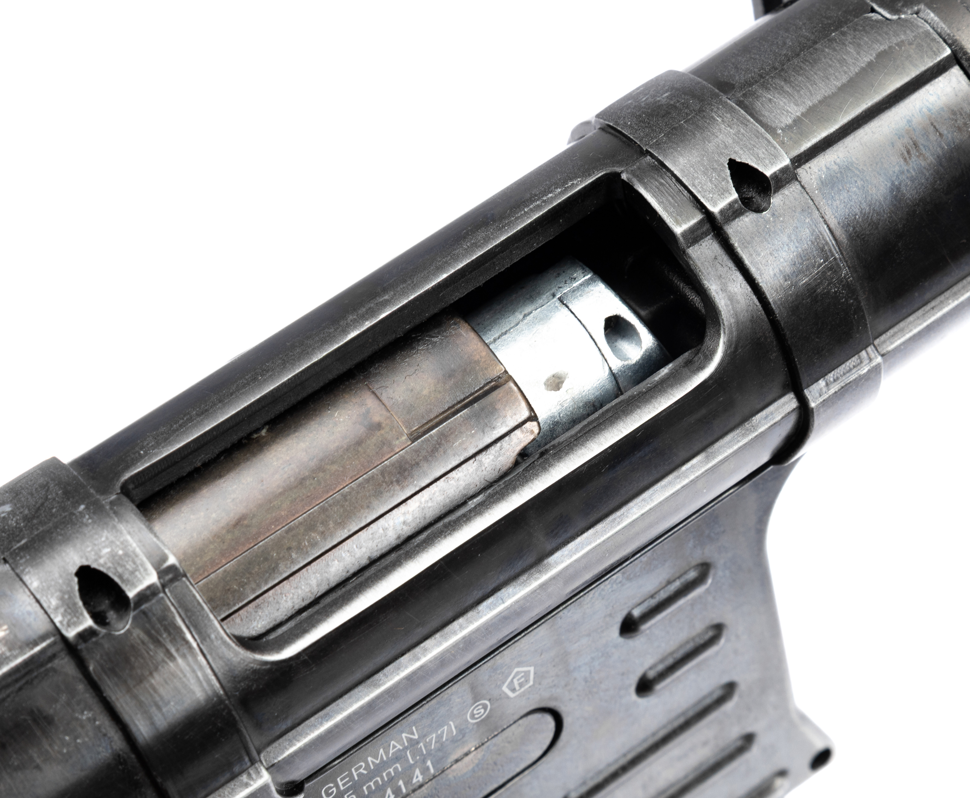 Работа осуществляется в полуавтоматическом режиме, а каждое нажатие на спуск сопровождается срабатыванием механизма blowback. Затвор двигается назад, создавая отдачу, визуально и тактильно приближенную к реальному образцу. Пистолет-пулемет пневматический Umarex Legends не требует ручного взведения после отдельного выстрела, а темп стрельбы зависит только от скорости взаимодействия с УСМ.