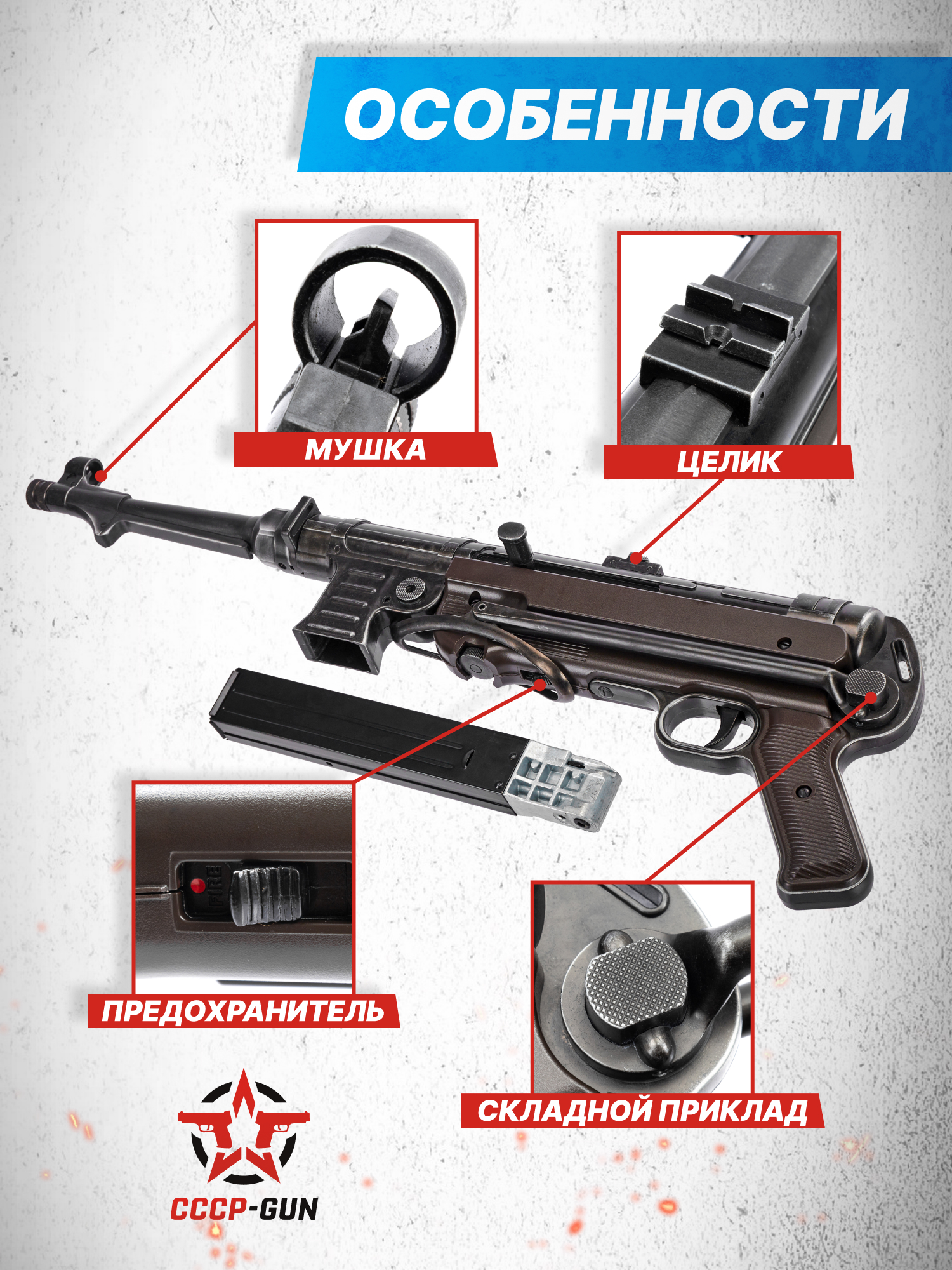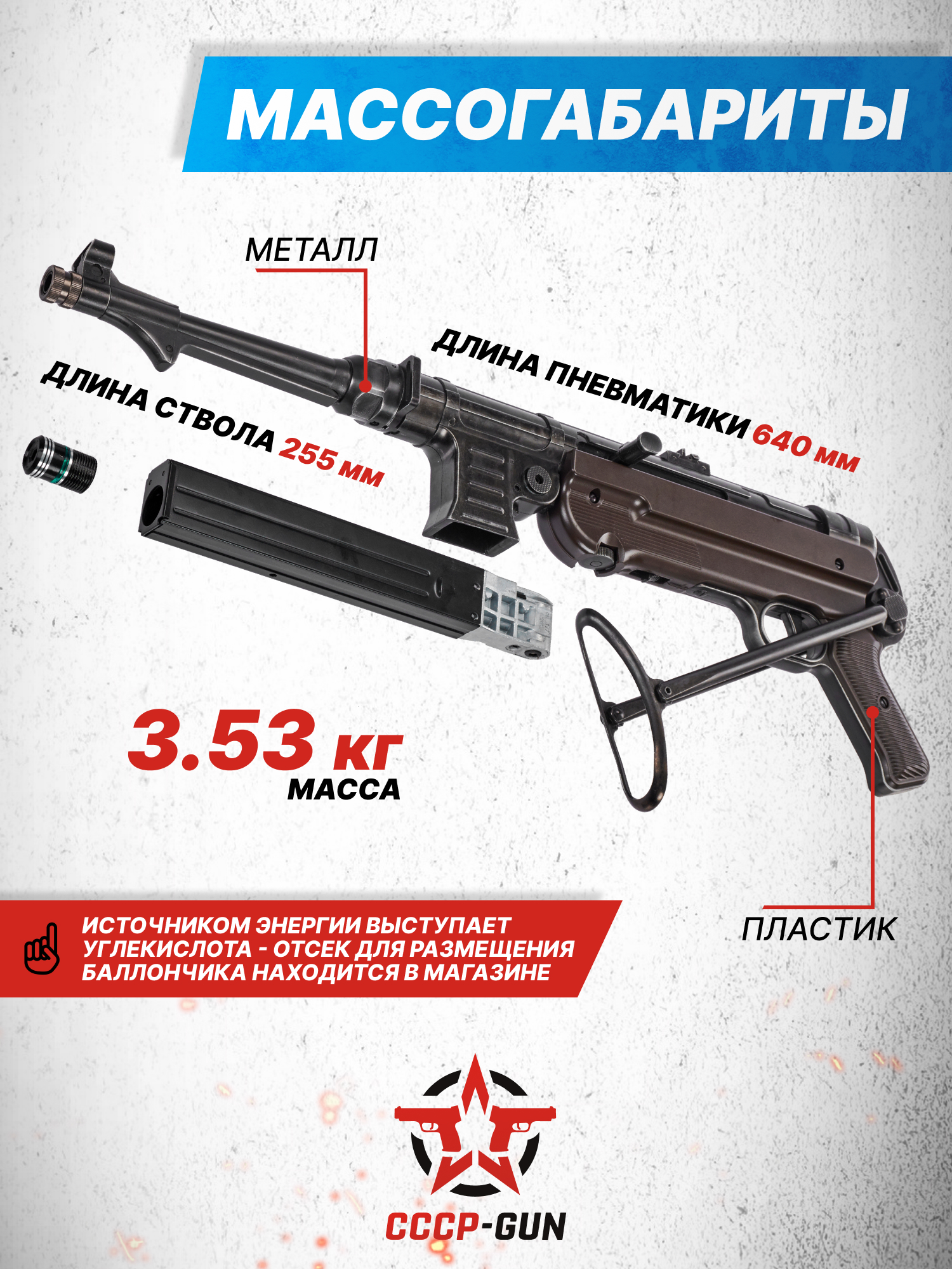 Прототипом пневматического MP-40 стал пистолет-пулемет MP 38/40 Maschinenpistole, разработанный в конце 1930-х годов в Германии и применявшийся во время Второй мировой войны. Он отличался складным прикладом, простотой обслуживания и повышенной надежностью. Популярность обозреваемый ПП получил благодаря массовому использованию в пехотных и парашютных подразделениях вермахта.