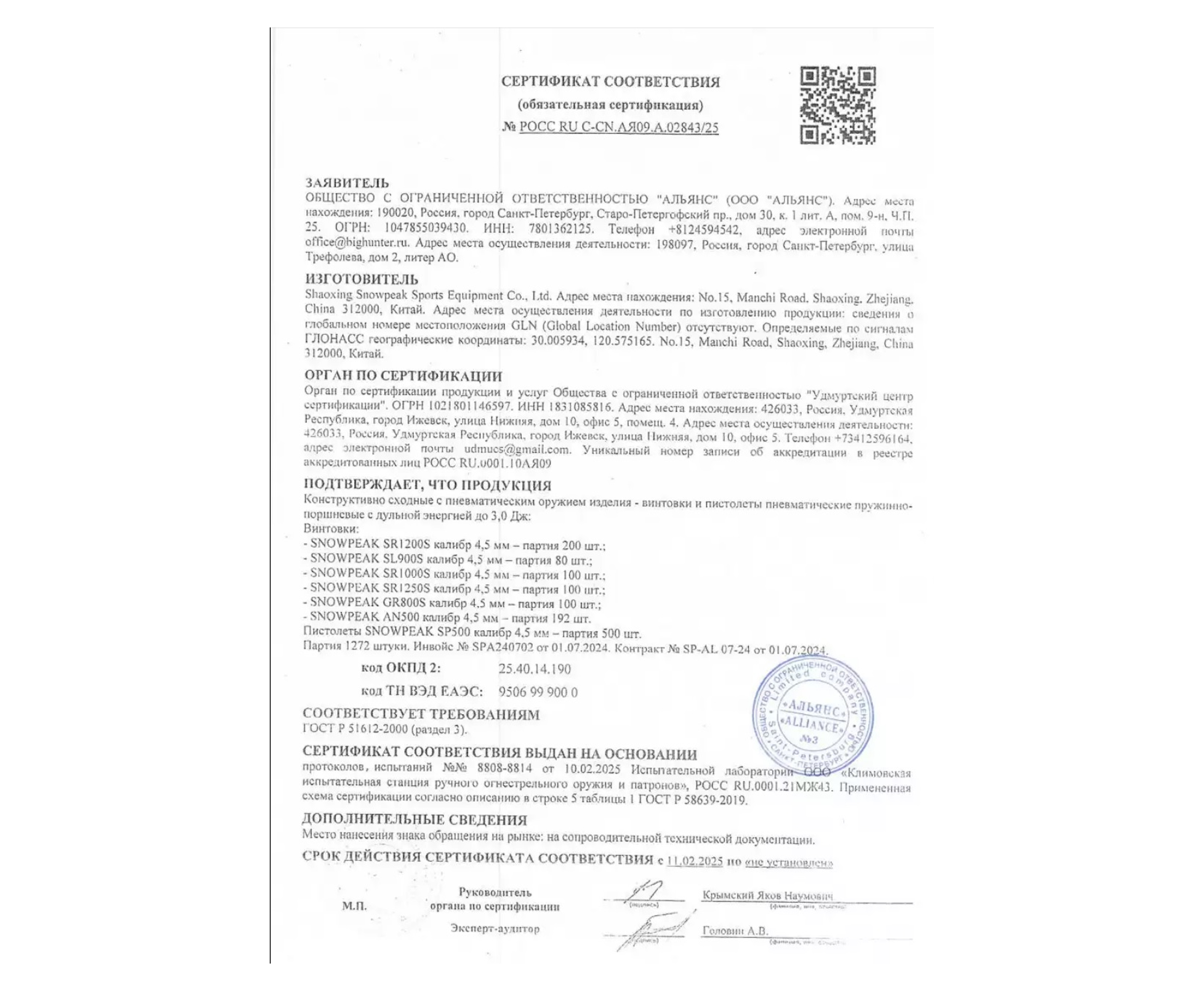 Внимание! Данная модель поставляется в разрешенной мощности для свободного приобретения на территории Российской Федерации. При этом в модели имеется возможность увеличения мощности путем замены части деталей или настройки конструкции, однако не стоит забывать о Федеральном законе «Об оружии» № 150 - ФЗ. В случае необходимости, опираясь на данный закон и руководствуясь им, возможно, потребуется получить разрешение от ЛЛР ГУ МВД России после вмешательства в конструкцию.