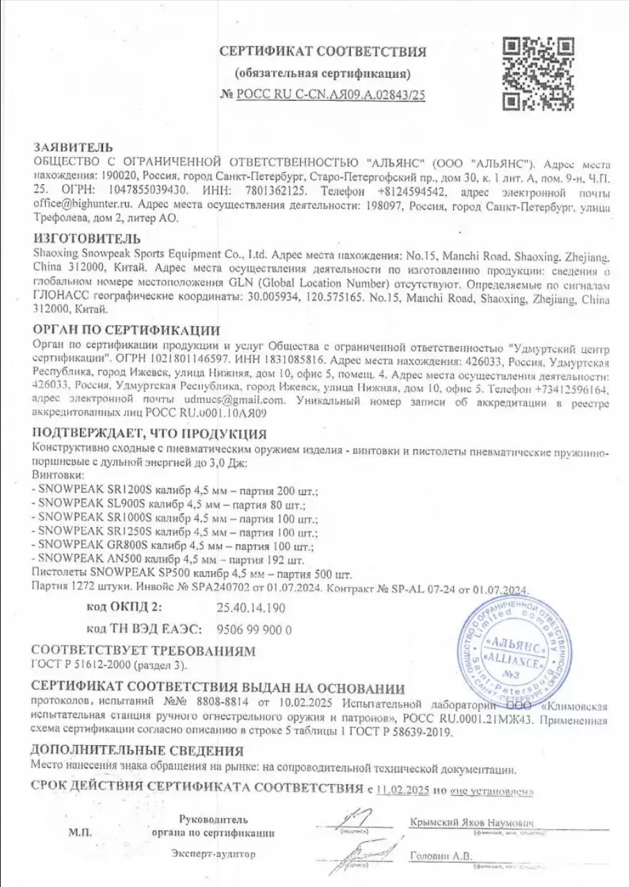 Пневматический пистолет Snowpeak SP500 - альтернатива винтовке для условий, когда использование полноразмерного оружия становится не практичным. Длина этого оружия равна 380 миллиметрам, а в положении со сложенным стволом оно займет еще меньше места - соответственно переносить его можно не только в чехле, но и в обычных рюкзаках и сумках. Округлые формы фурнитуры не затруднят извлечение.