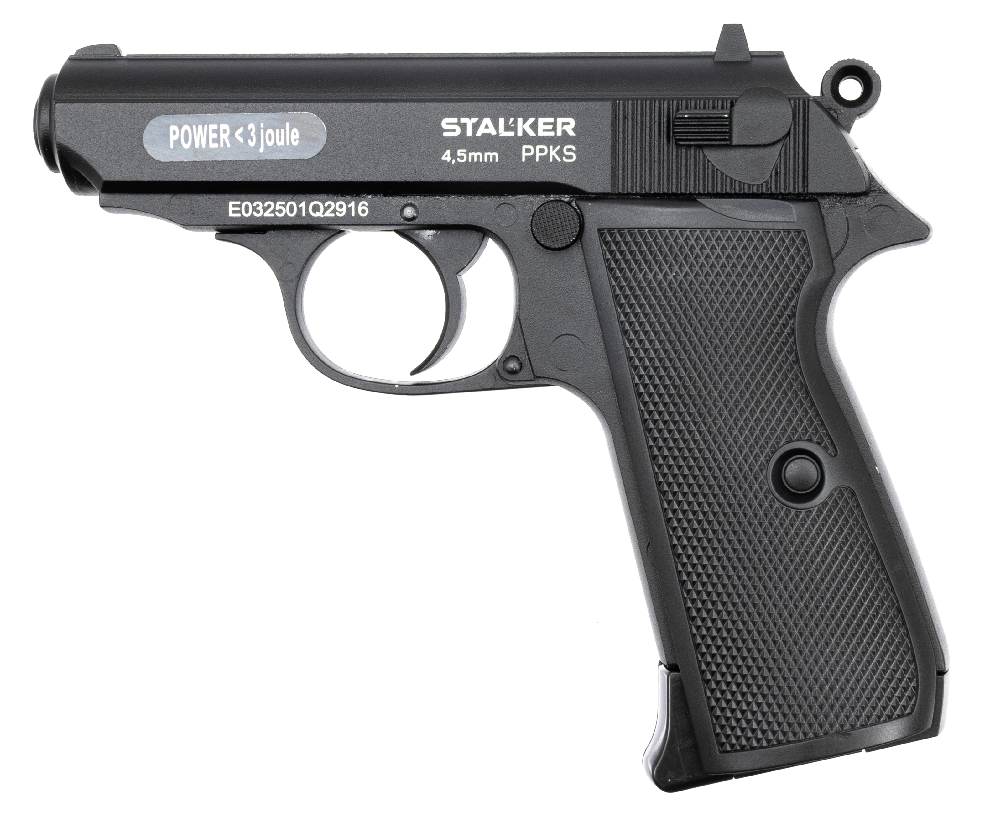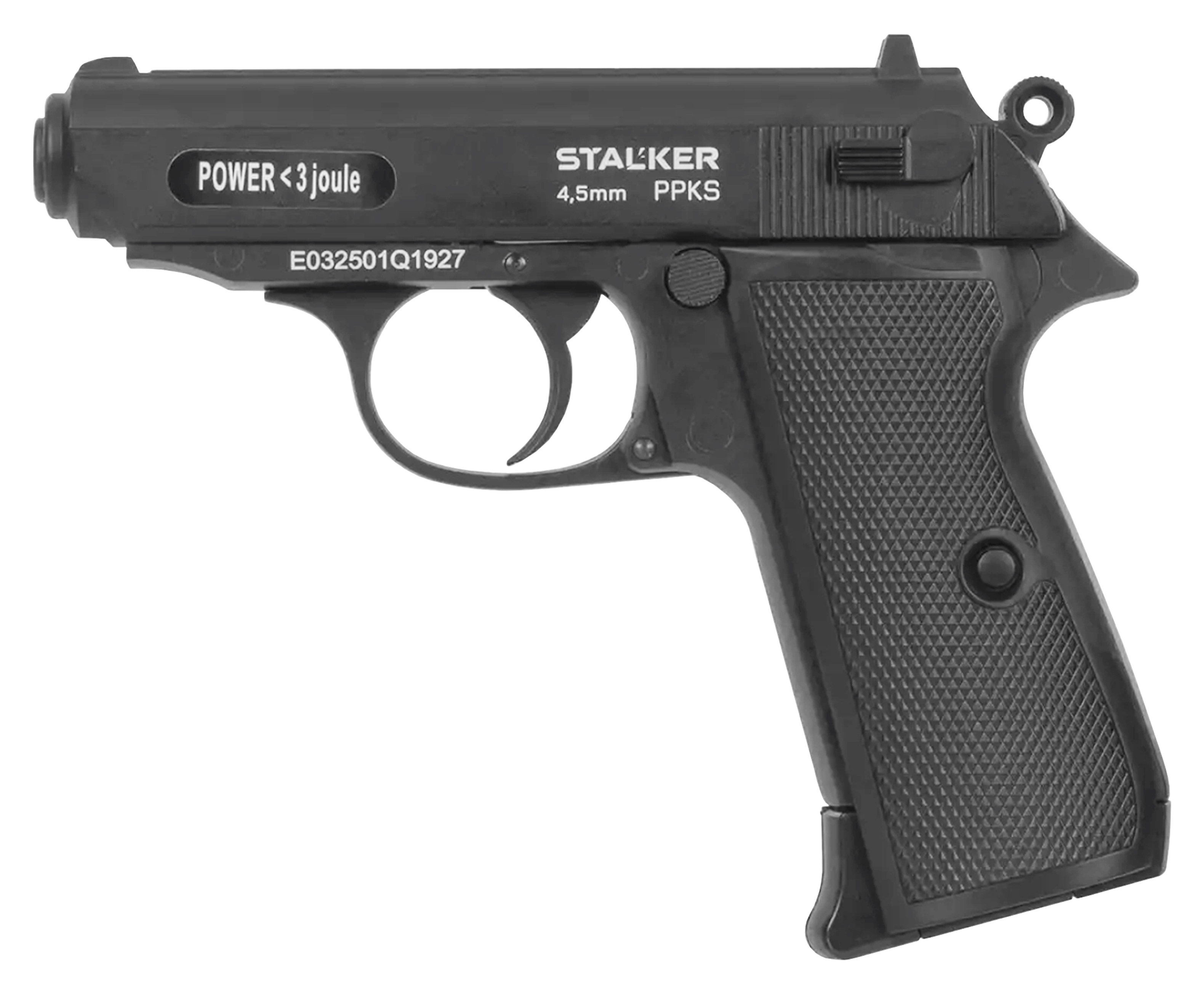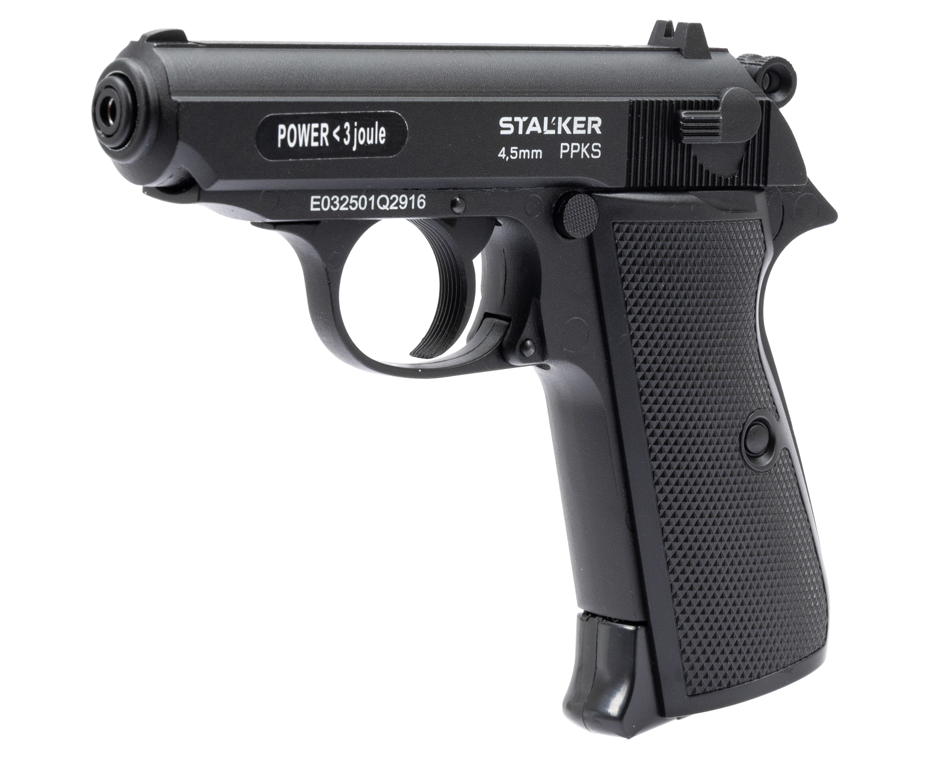 Продается Stalker PPKS 4.5 мм в свободном формате без требования оружейной лицензии, благодаря тому, что производитель выпускает изделия с разрешенной дульной энергией, не превышая отметки в 3 Дж. Максимальная скорость полета шарика составляет 90 метров в секунду, что дает применять модель для плинкинга на природе. Приблизительная дальность стрельбы составляет от десяти до пятнадцати метров.
