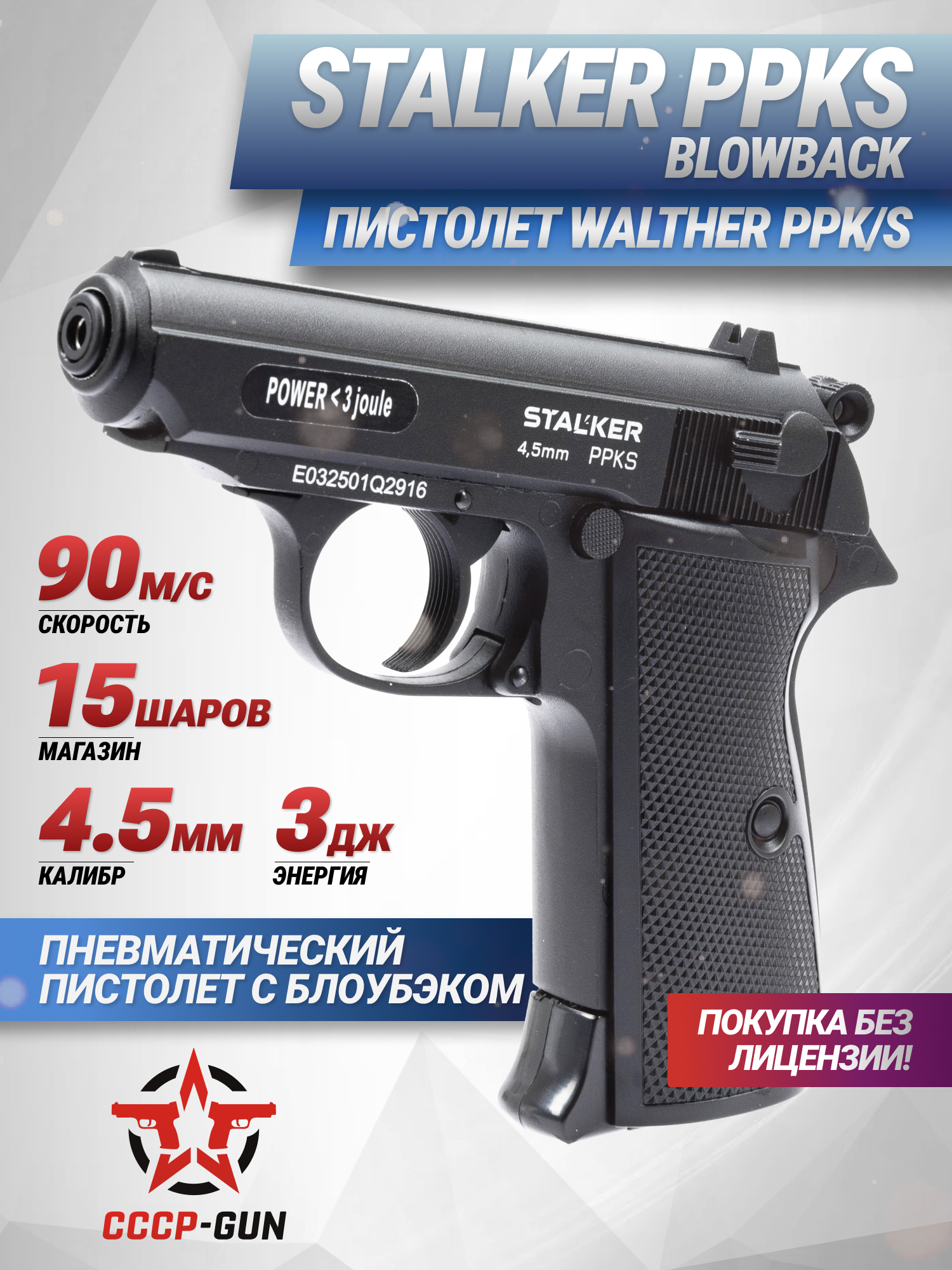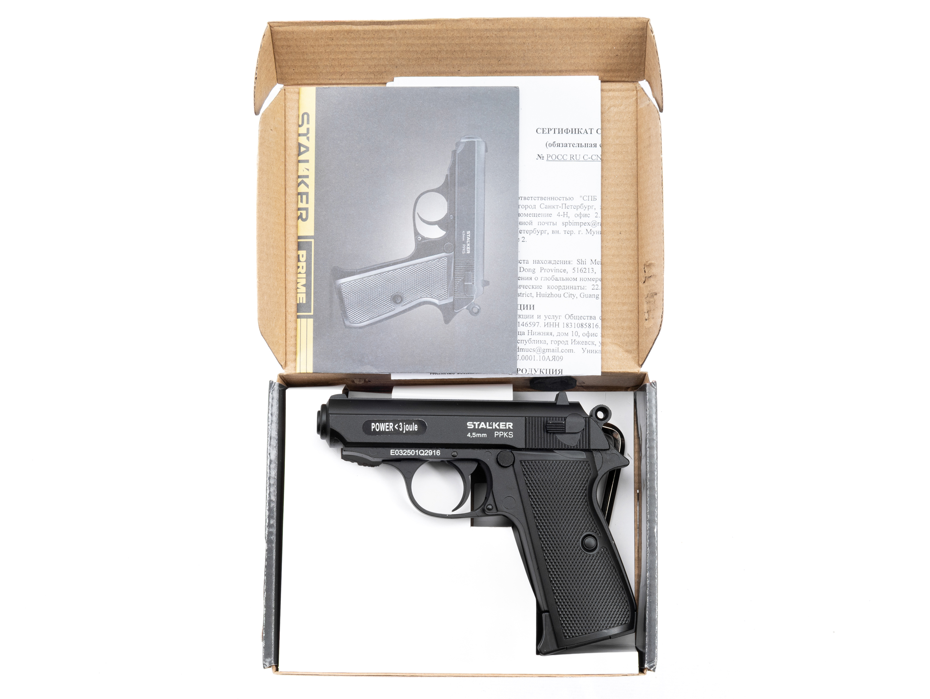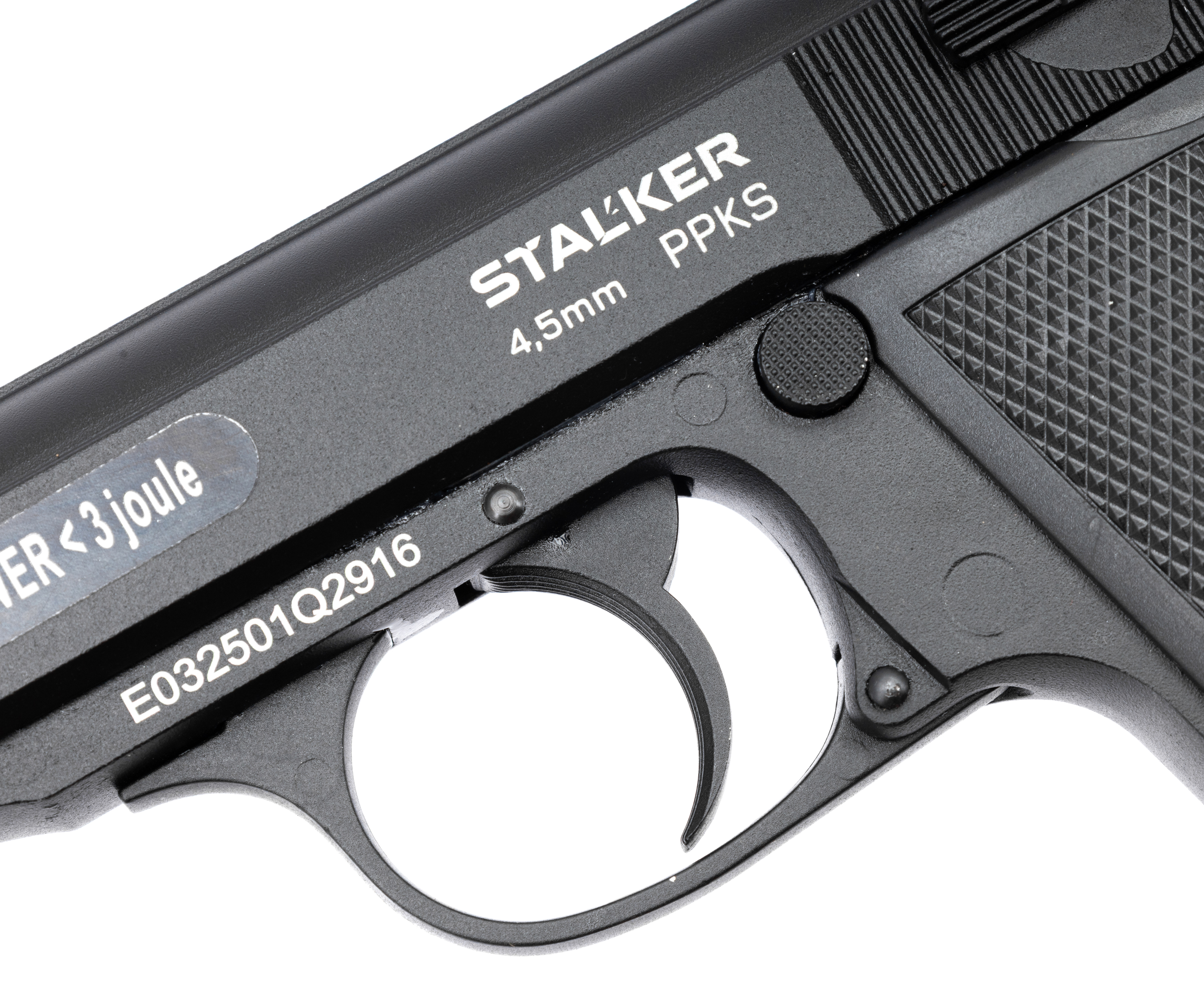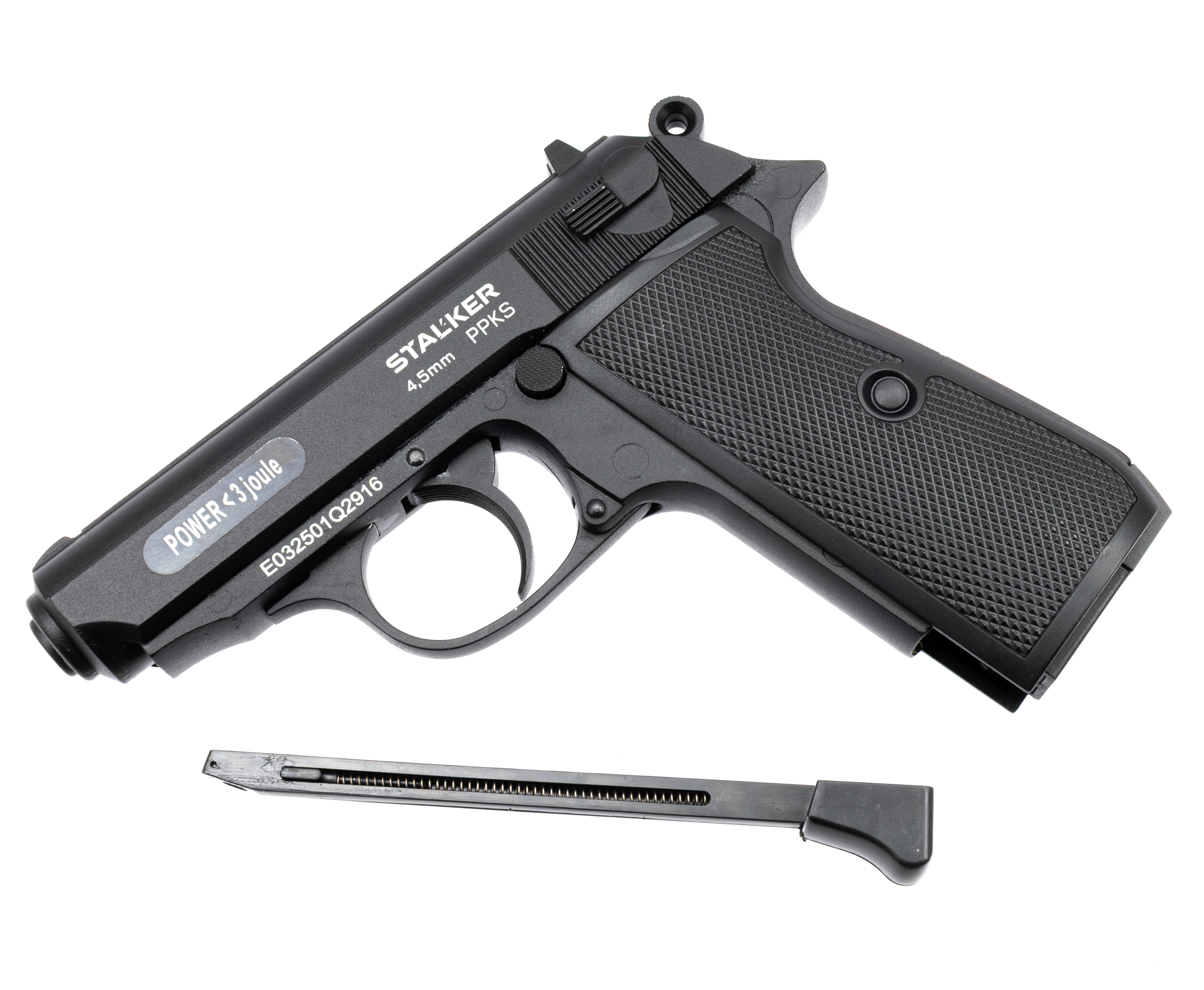 Продается Stalker PPKS 4.5 мм в свободном формате без требования оружейной лицензии, благодаря тому, что производитель выпускает изделия с разрешенной дульной энергией, не превышая отметки в 3 Дж. Максимальная скорость полета шарика составляет 90 метров в секунду, что дает применять модель для плинкинга на природе. Приблизительная дальность стрельбы составляет от десяти до пятнадцати метров.