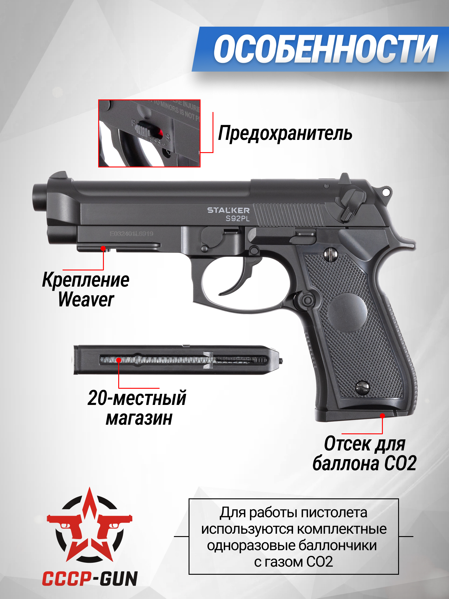 Дульная энергия при вылете пули из пистолета не превышает 3 J, по этой причине на территории РФ модель S92PL продается свободно, а это значит, что покупателю не понадобится оформлять специальное разрешение. Изделие считается лишь конструктивно схожим с оружием, о чем свидетельствует сертификат производителя. Тем не менее максимальная скорость снаряда, выпущенного из пистолета, достигает 120 метров в секунду, чего будет достаточно для плинкинга и развлекательной стрельбы на отдыхе.