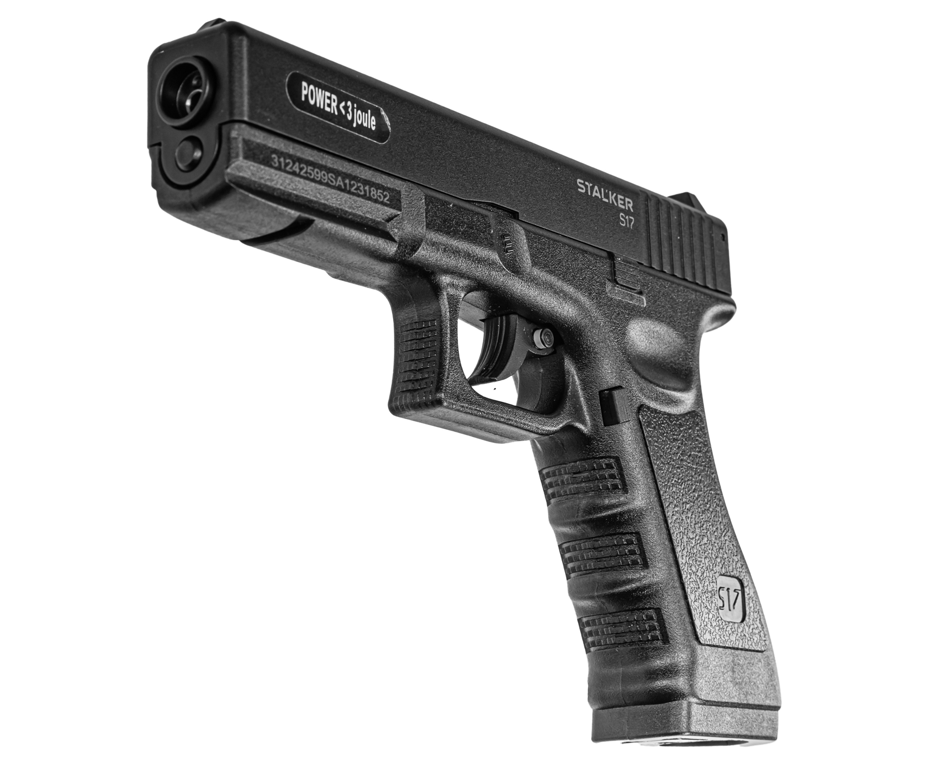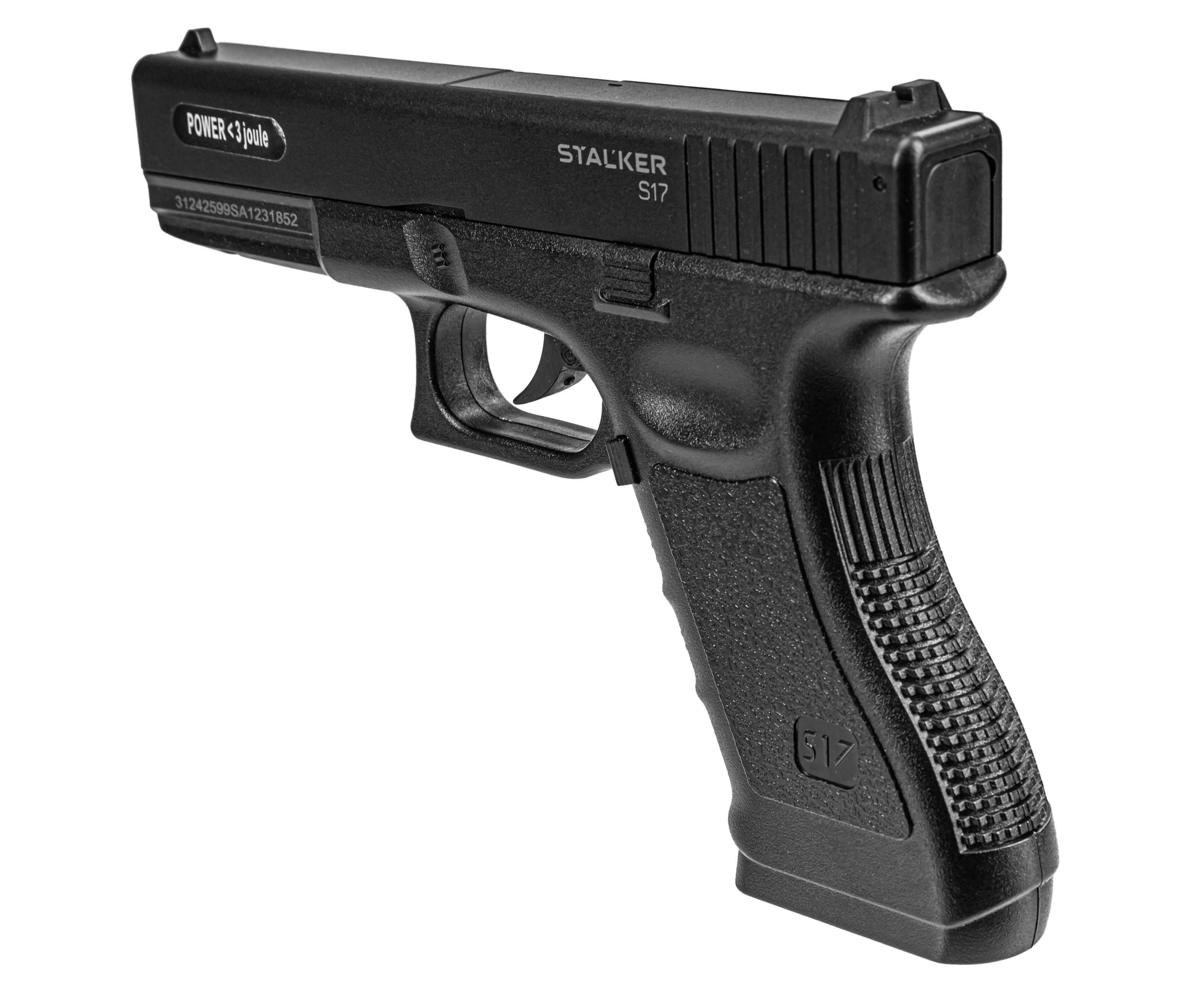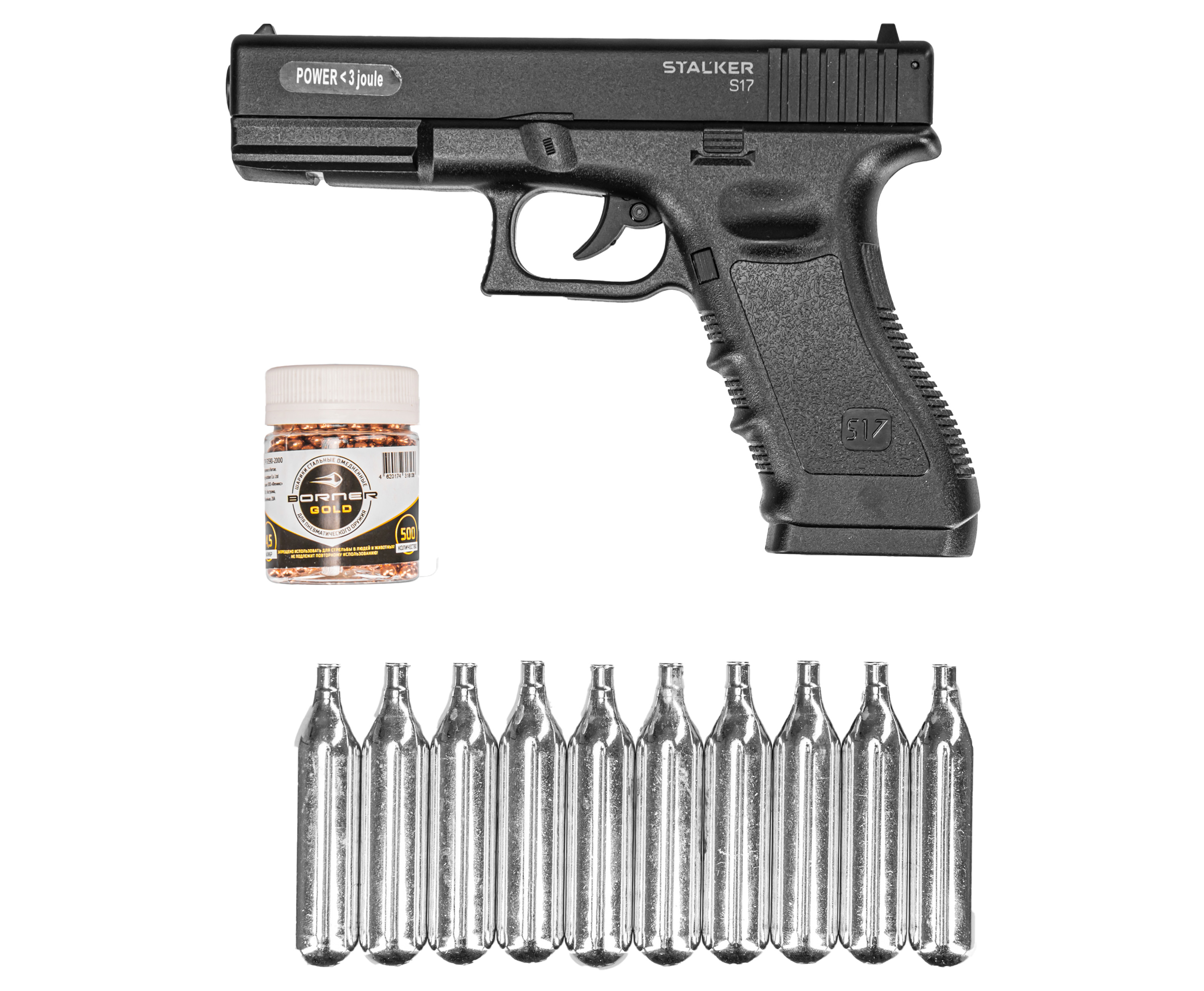 Пневматический пистолет Stalker S17 Glock 17 изготовлен по газобаллонной схеме. Стандартные резервуары CO2 объемом 12 грамм обеспечивают бесперебойное питание механизма, они устанавливаются в рукоять, отдельно от магазина. Комплект включает 10 штук баллончиков с углекислотой, которых хватит на несколько продолжительных тренировок или выезда на открытое стрельбище.