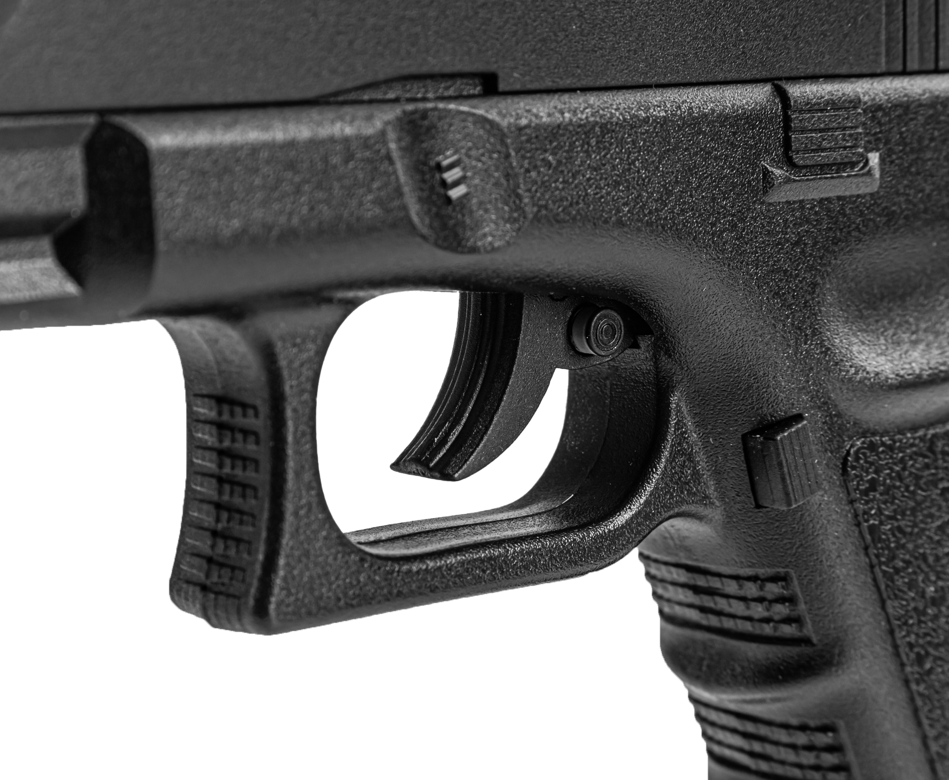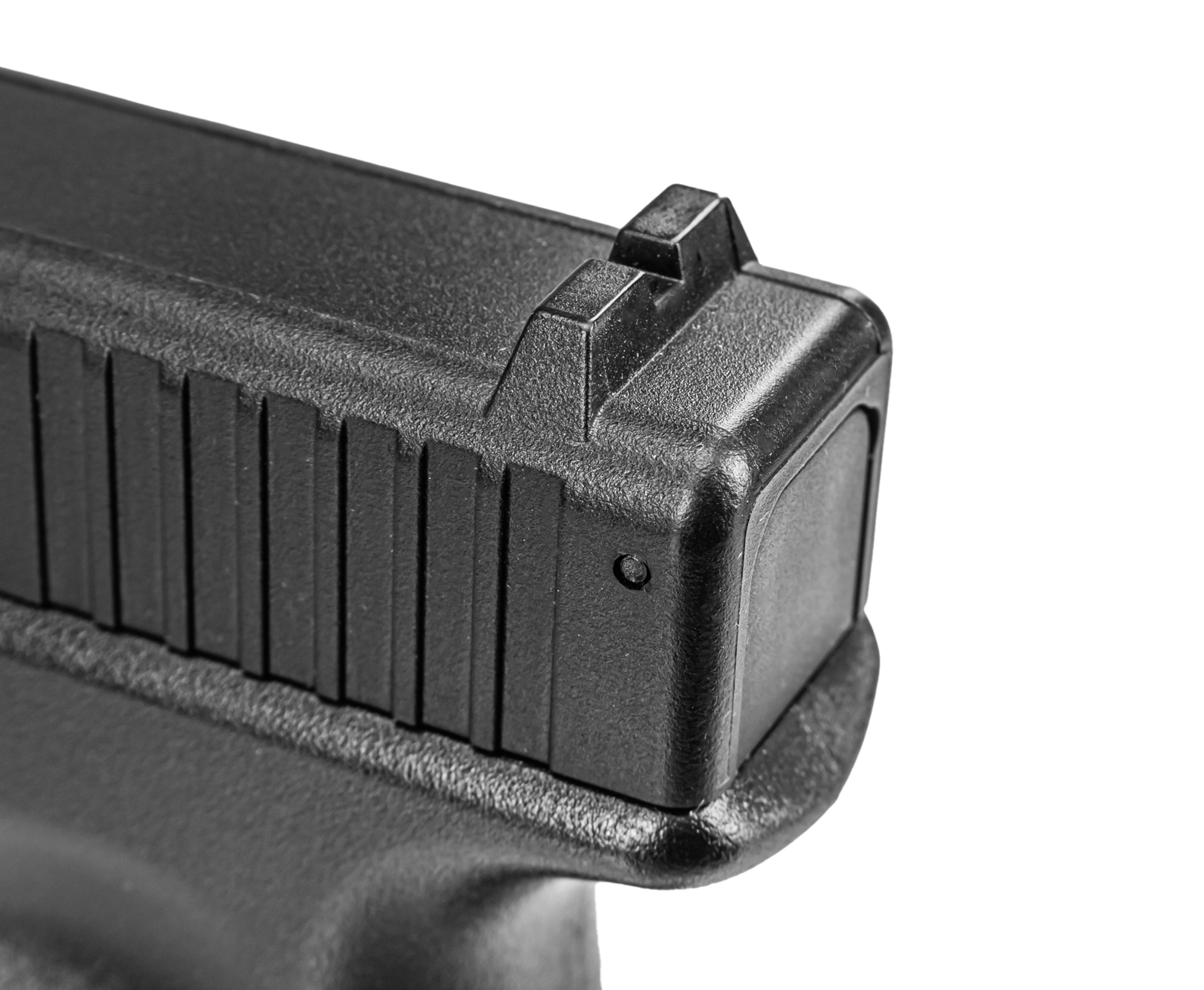 Отдельного внимания заслуживает эргономика модели. Рукоять наделена ямкой под большой палец и текстурированным покрытием, исключающим соскальзывание во время выстрела. Она, как и рамка пистолета, изготовлена из крепкого полимерного материала.