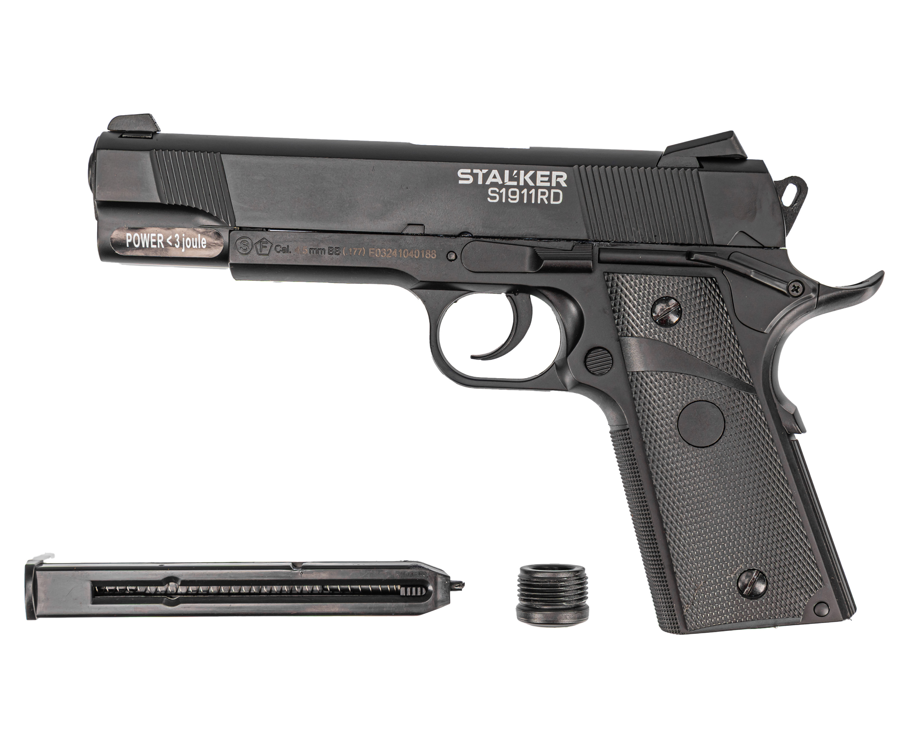 Бренд Stalker проявил себя как производитель надежного и доступного пневматического оружия, которое ориентировано как на новичков, так и на стрелков, имеющих опыт. Особое внимание компания уделяет реалистичности моделей и их приближенности к существующим огнестрельным образцам. Пистолет S1911RD в составе комплекта Hunter Set №3 - наглядный пример такого подхода.