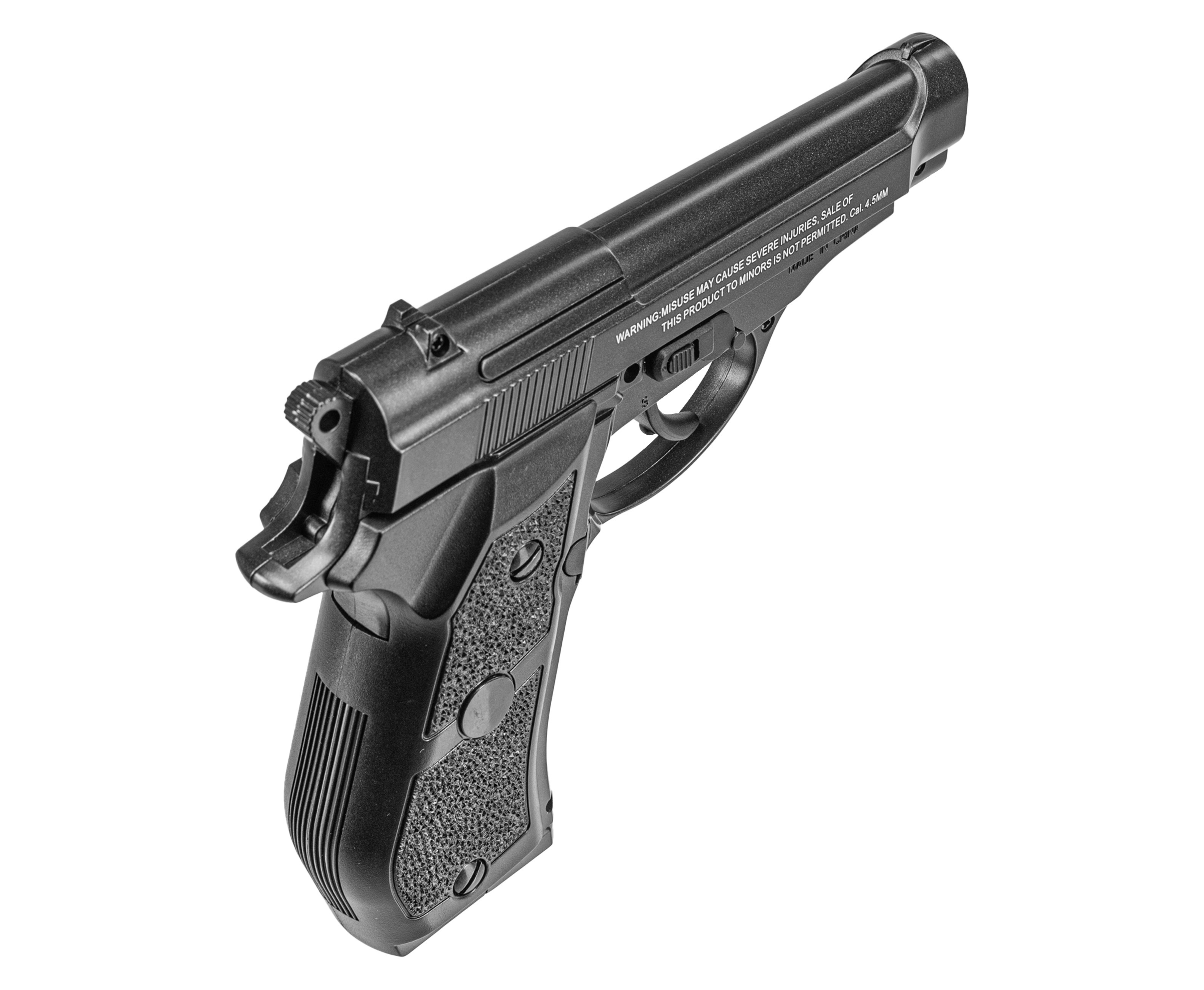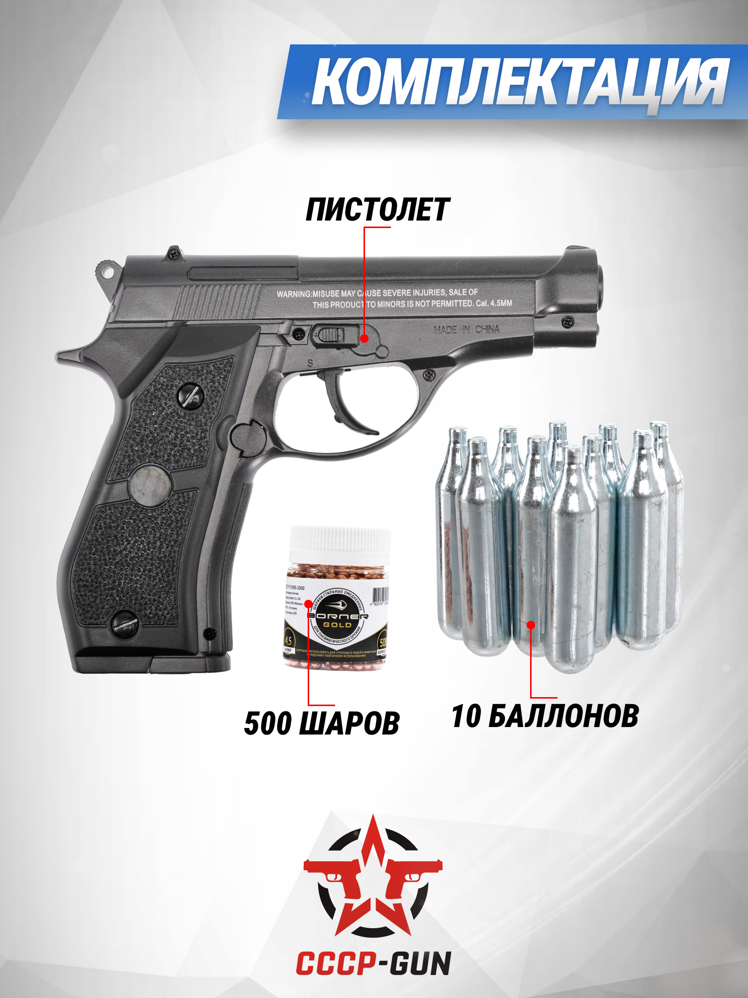 Применяемый газобаллонный принцип работы позволяет использовать ресурс сжатой углекислоты - энергия выстрела создается за счет газа в сменном баллончике объемом 12 грамм, который устанавливается в рукоять, отдельно от магазина. Комплект включает десять одноразовых резервуаров, что делает набор удобным для продолжительных тренировок или в качестве подарка для полного ознакомления со стрельбой из пневматики.