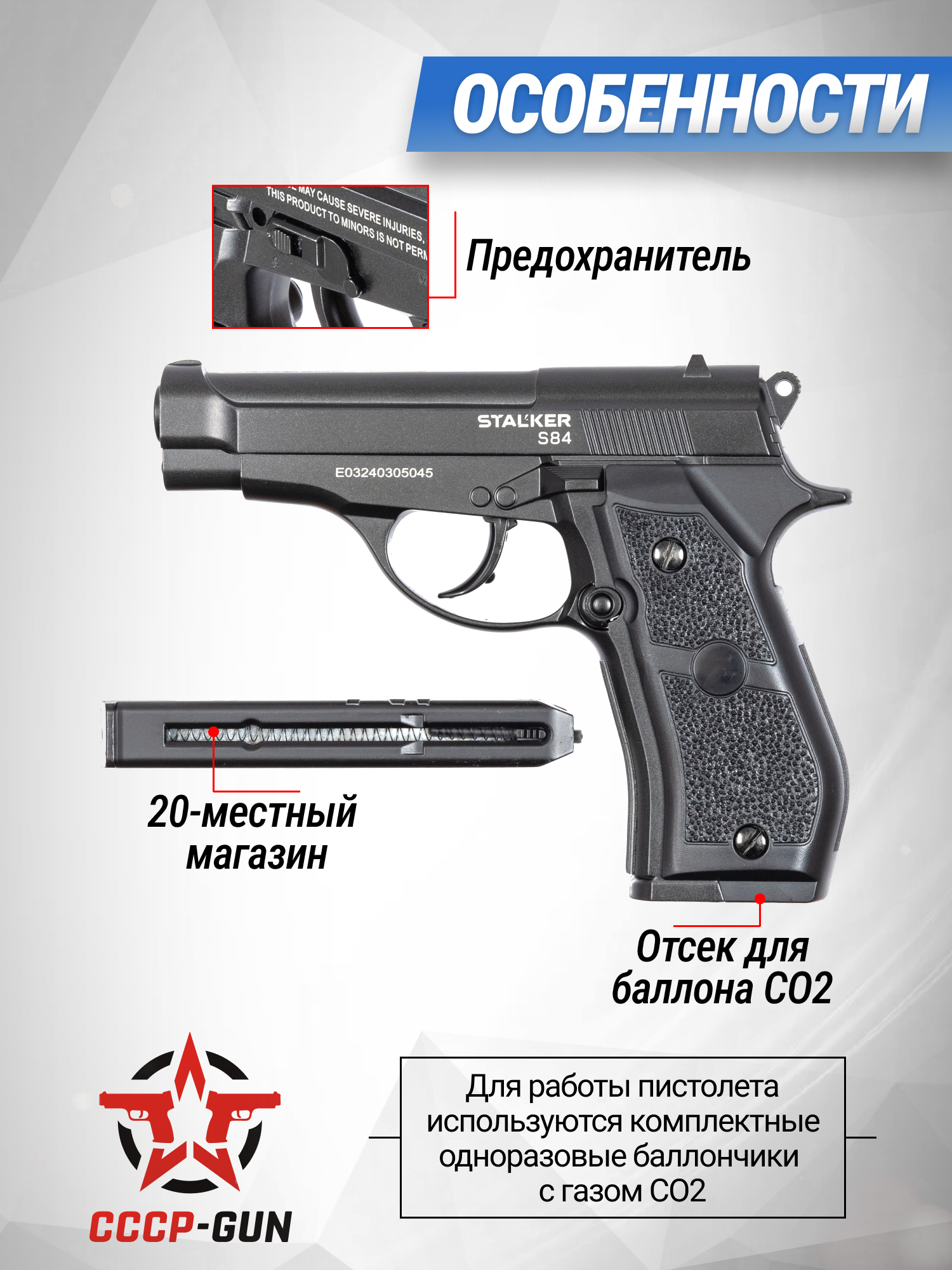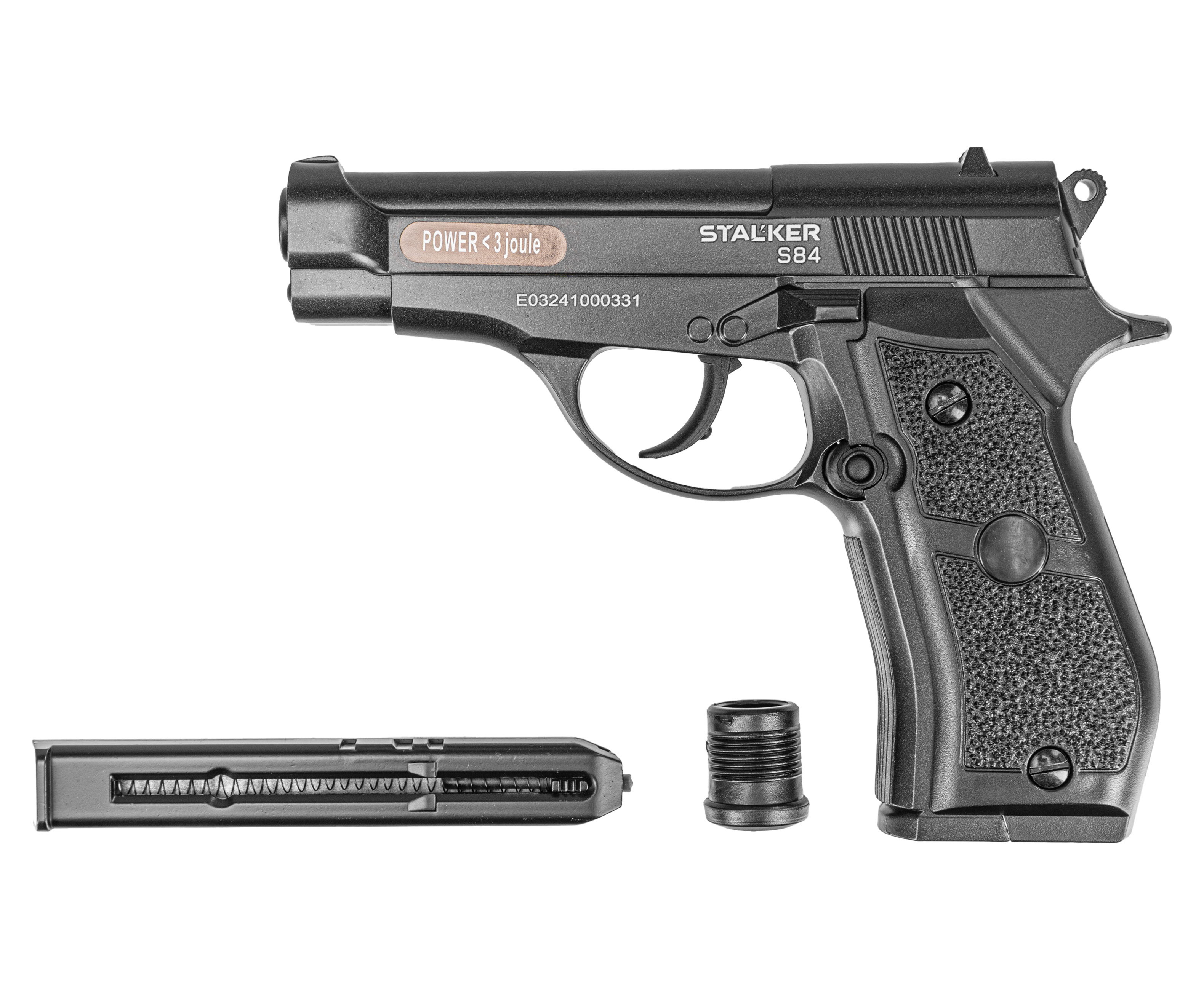 Пневматический пистолет Сталкер S84 в составе набора Hunter Set №1 создан на базе итальянского прототипа Beretta M84 и отличается характерной компактностью и удобством управления. Это делает его интересным решением как для коллекционеров, так и для любителей стрелковых практик.