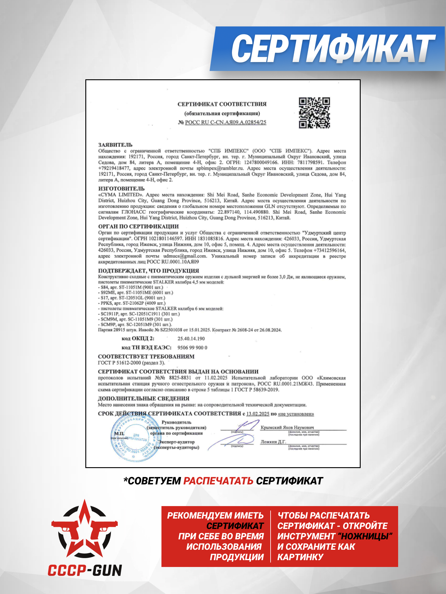 Изготовитель Stalker известен своими доступными пневматическими платформами, среди которых выделяются экземпляры, повторяющие реальные образцы и выполненные с высокой детализацией. Компания делает акцент на сочетании практичности, простоты обслуживания и внешнего сходства с огнестрельным оружием. Благодаря применению проверенных технических решений модели бренда отличаются надежностью, удобством эксплуатации и оптимальным балансом характеристик.