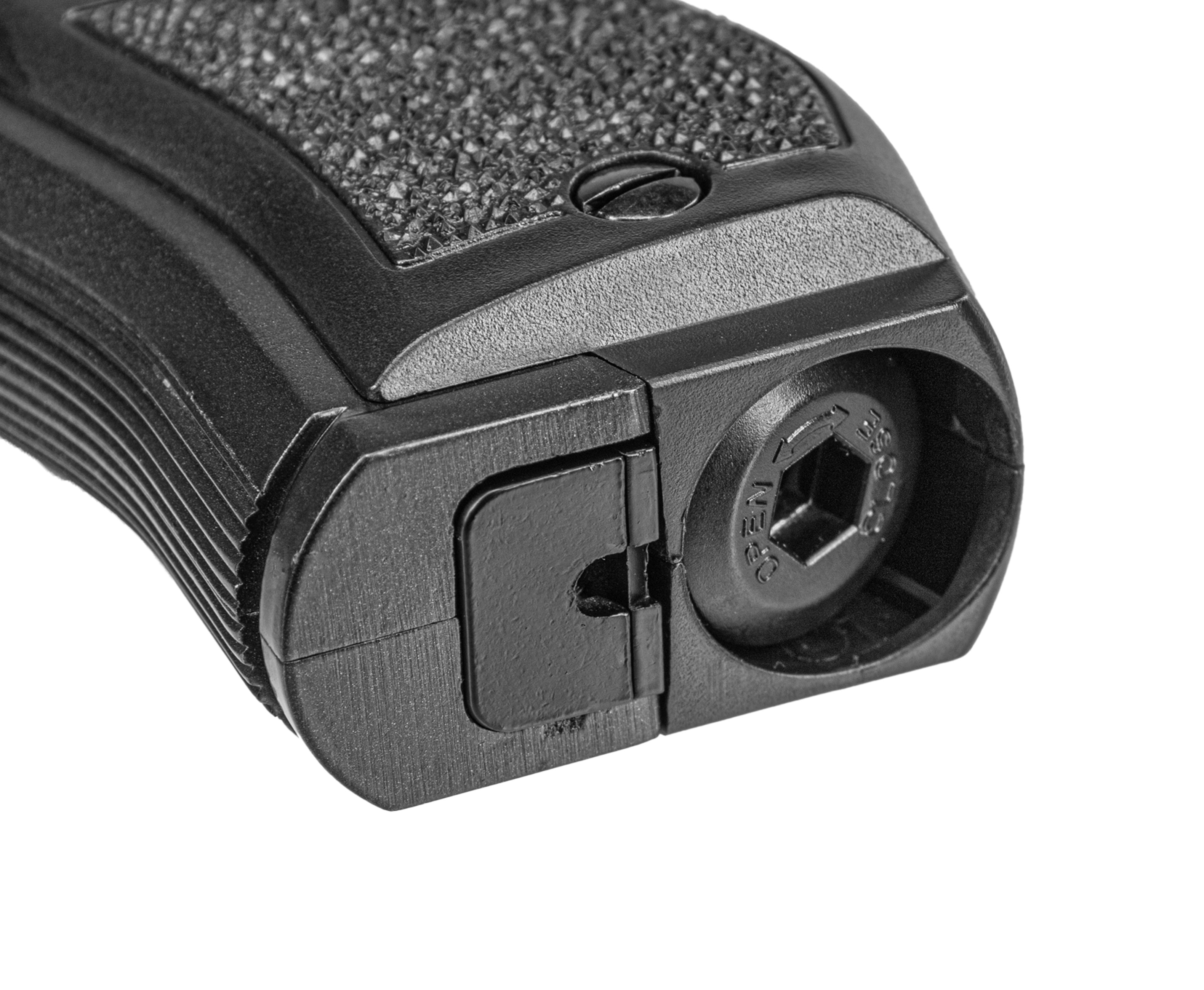Архитектура пистолета продумана с учетом эргономики и удобства удержания, а также визуального соответствия прототипу. Рукоять оснащена текстурированными поверхностями, обеспечивающими плотный хват, а компактные размеры делают модель комфортной даже для начинающих стрелков.
