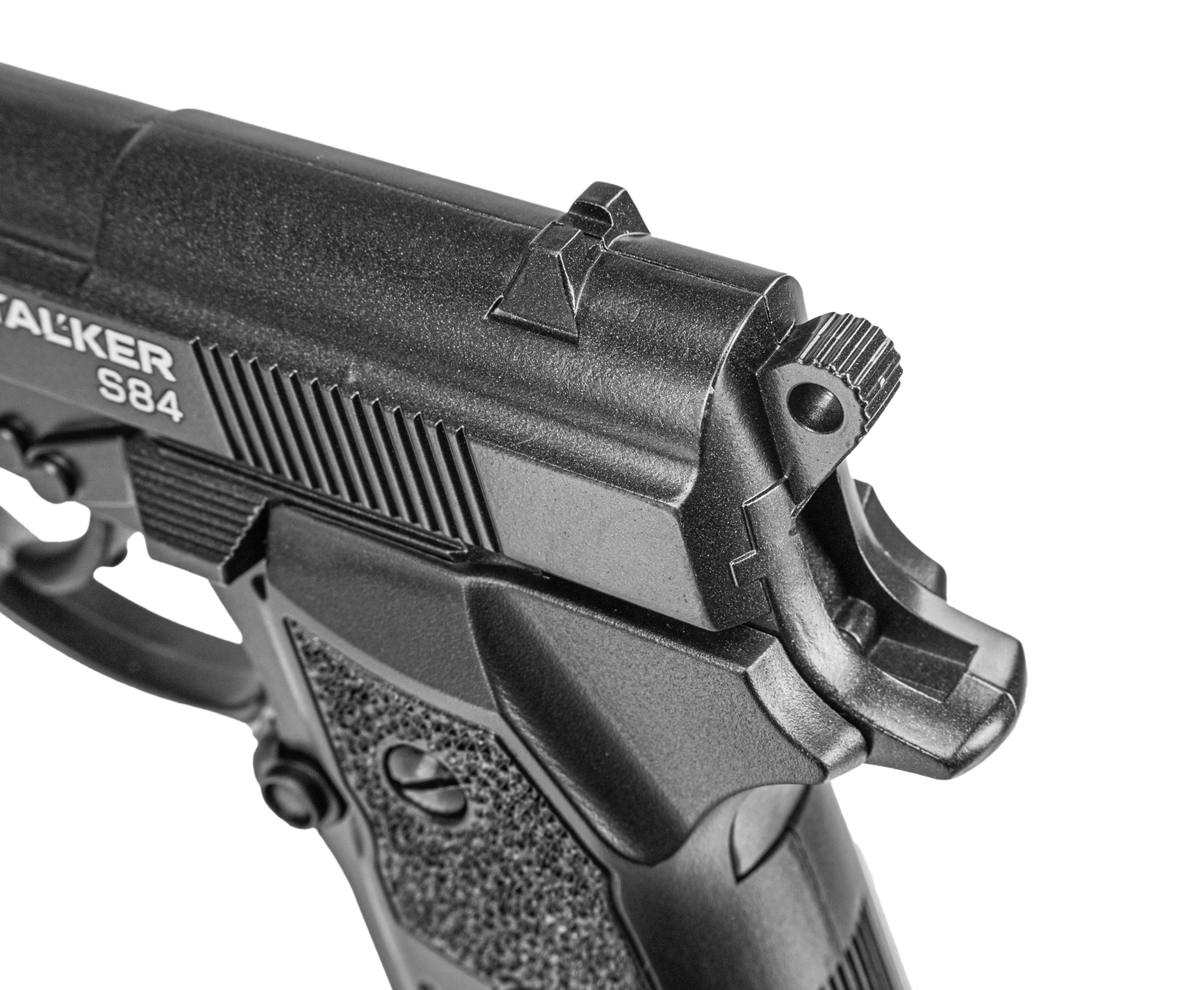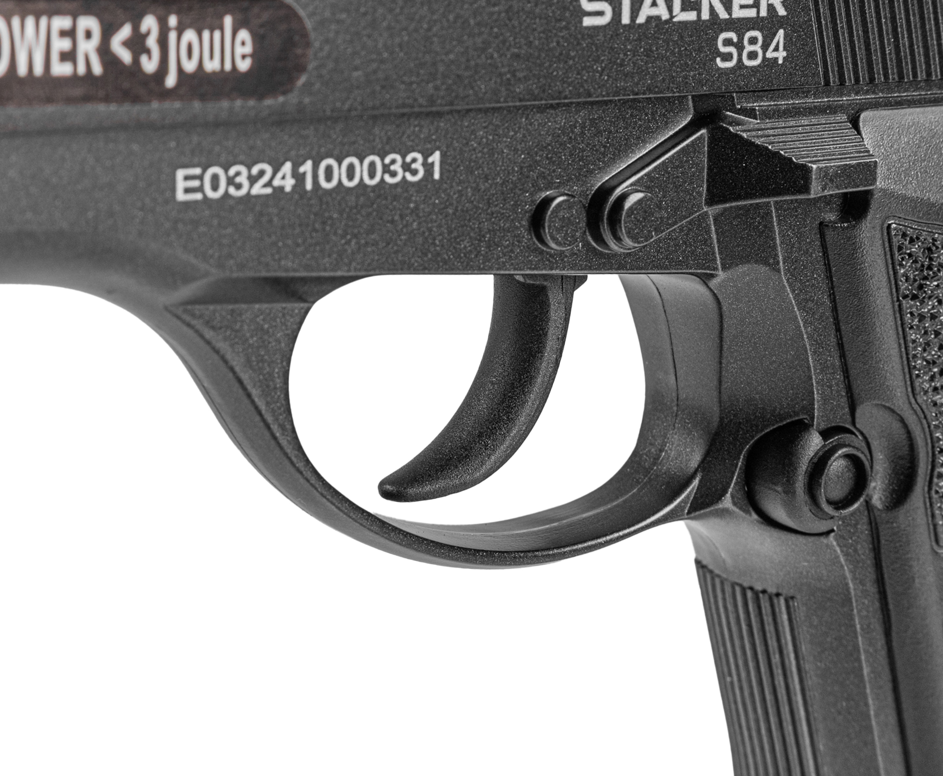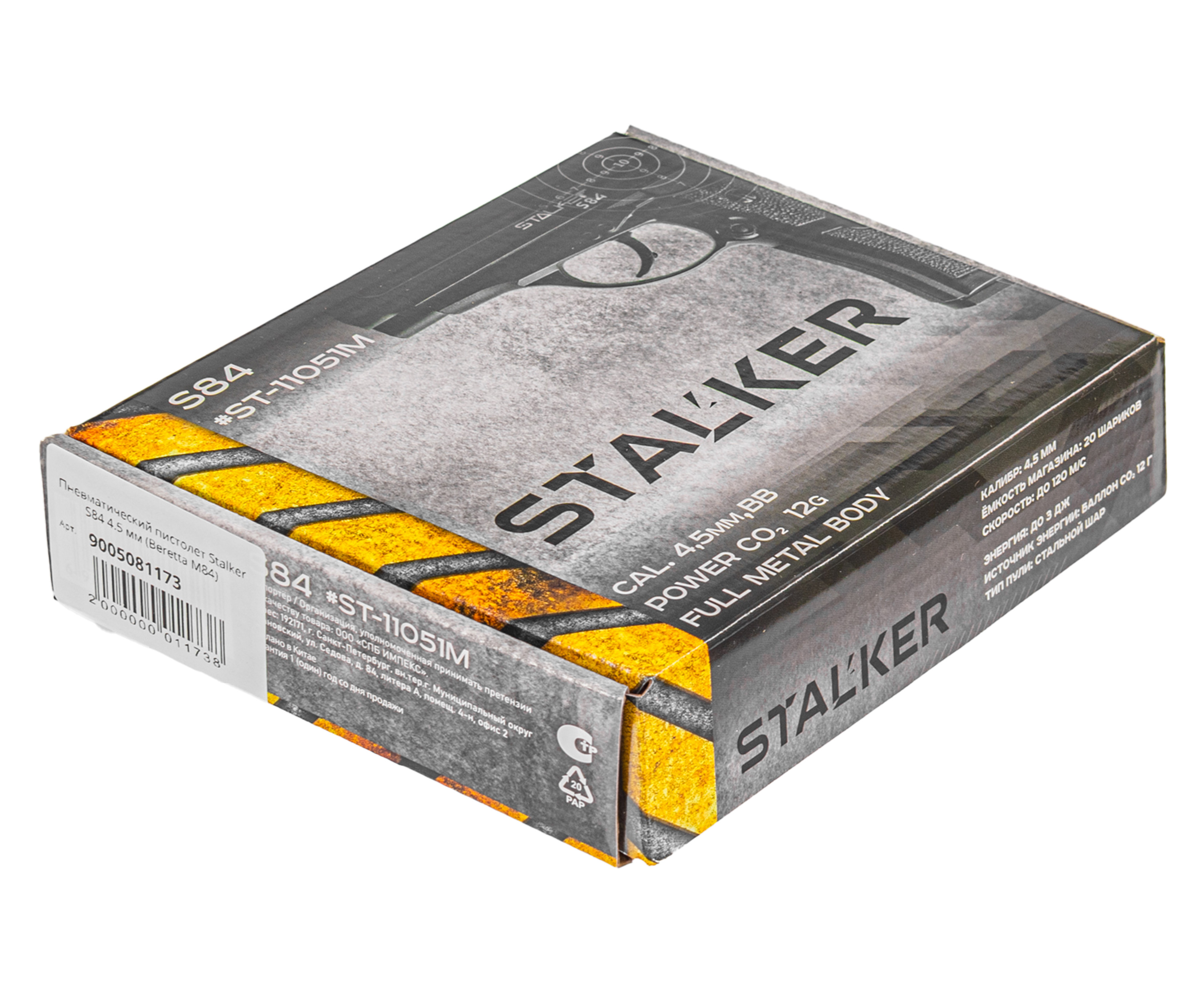 Обозреваемый Stalker S84 Беретта использует стальные шарики калибра 4.5 мм, которые традиционно применяются в газобаллонной пневматике. Гладкий ствол придает снаряду должную траекторию и не требует сложного ухода. Магазин, выступающий в качестве элемента боепитания, рассчитан на 20 боеприпасов, а последние уже включены в комплект в количестве 500 штук.