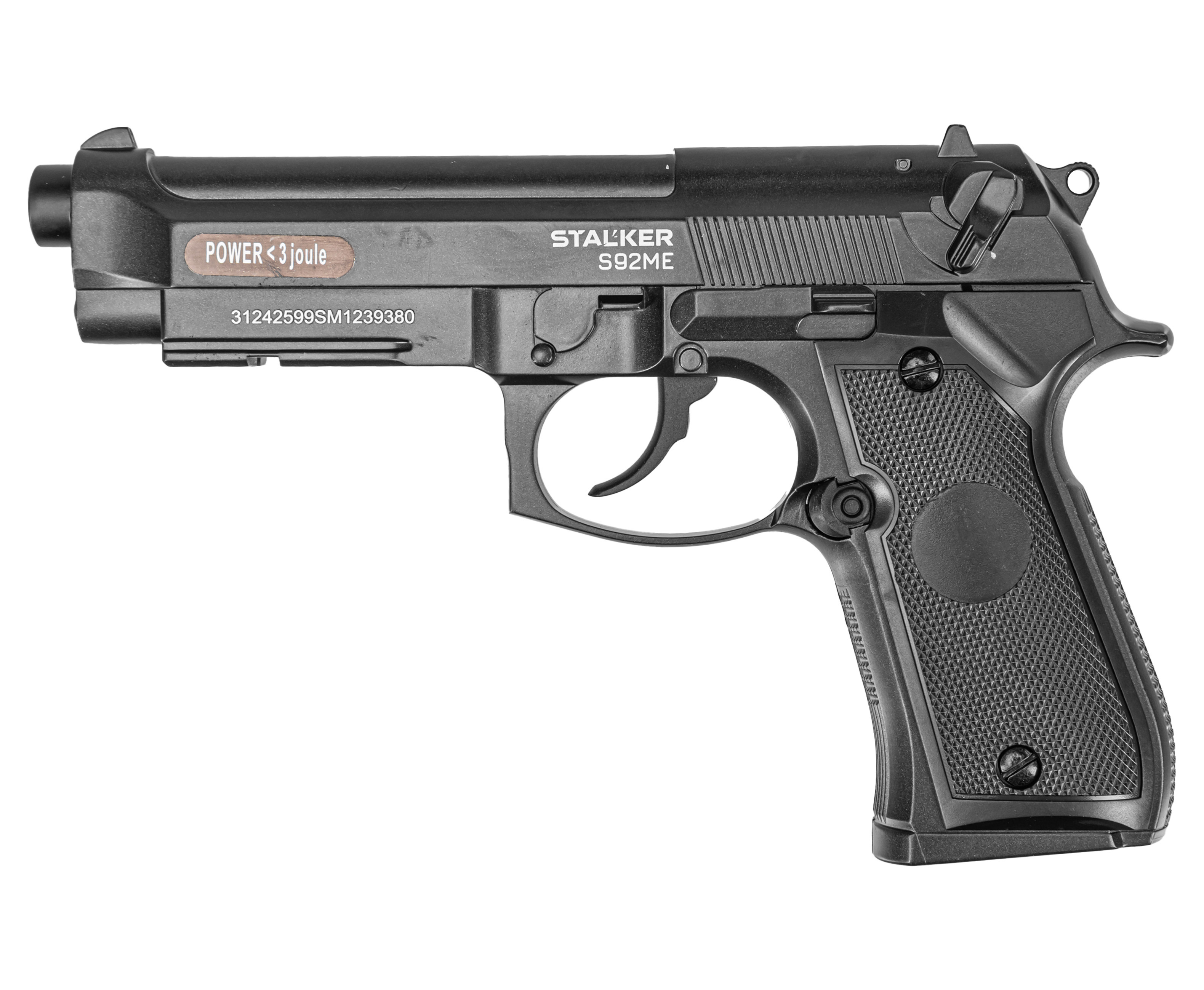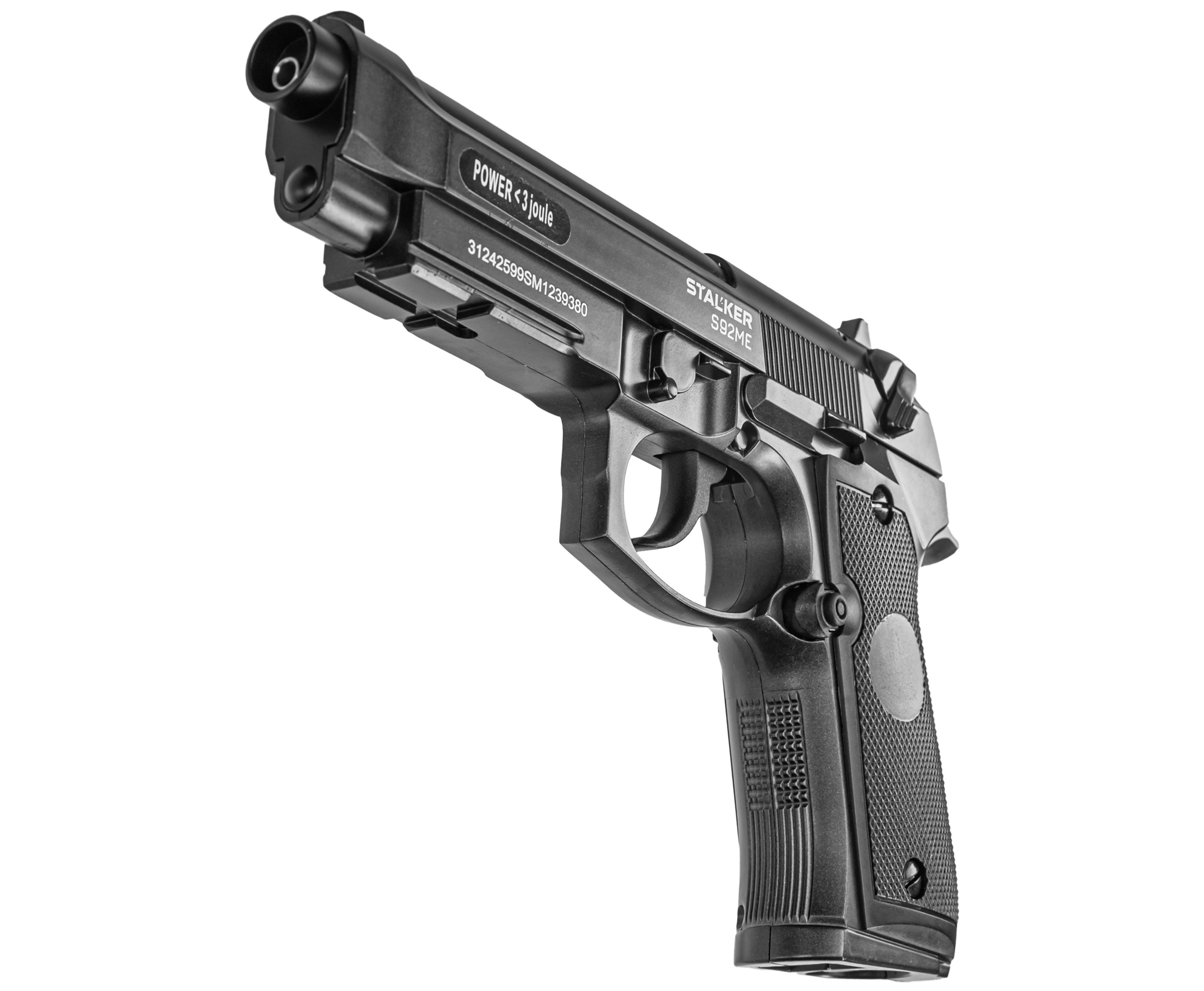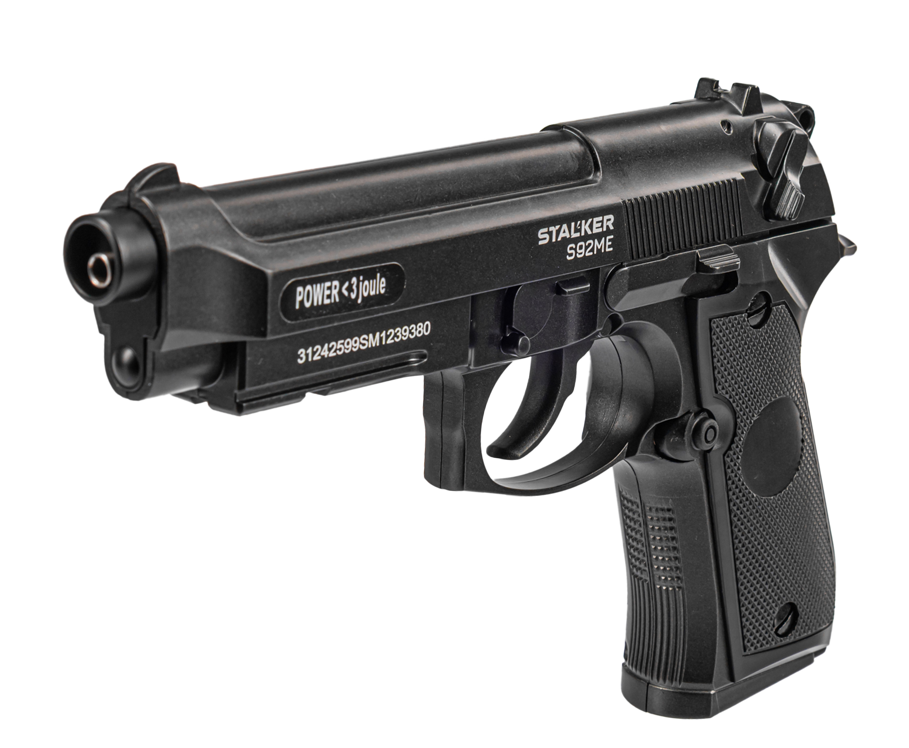 Обозреваемый S92ME Stalker пневматический пистолет, в котором для осуществления выстрела используется сила, образующаяся в процессе расширения газа углекислоты. Источником энергии в подобных моделях оружия выступают 12 граммовые CO2 баллончики, устанавливаемые перед началом стрельбы в рукоять через отверстие в ее основании. Комплект Хантер номер 2 включает в себя набор из десяти баллонов, чего с запасом хватит для проведения нескольких активных тренировок.