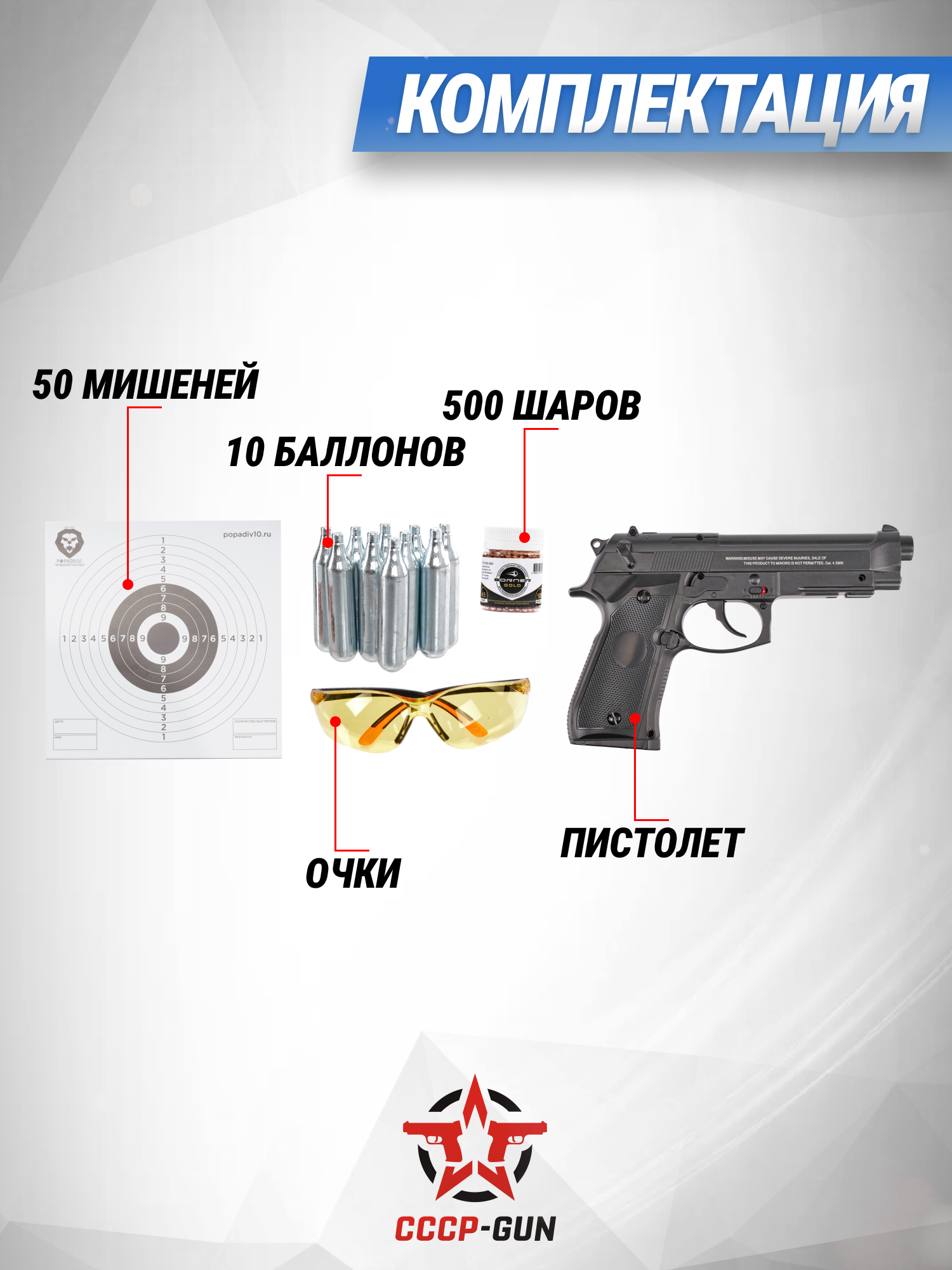 Помимо перечисленных элементов, описанный комплект товаров также включает в себя очки с линзами из поликарбоната, задача которых заключается в защите органов зрения и упаковки из пятидесяти картонных мишеней. Приобретение такого набора дает начать заниматься стрельбой буквально сразу после покупки, не требуя от пользователя подбора прочих сопутствующих принадлежностей.