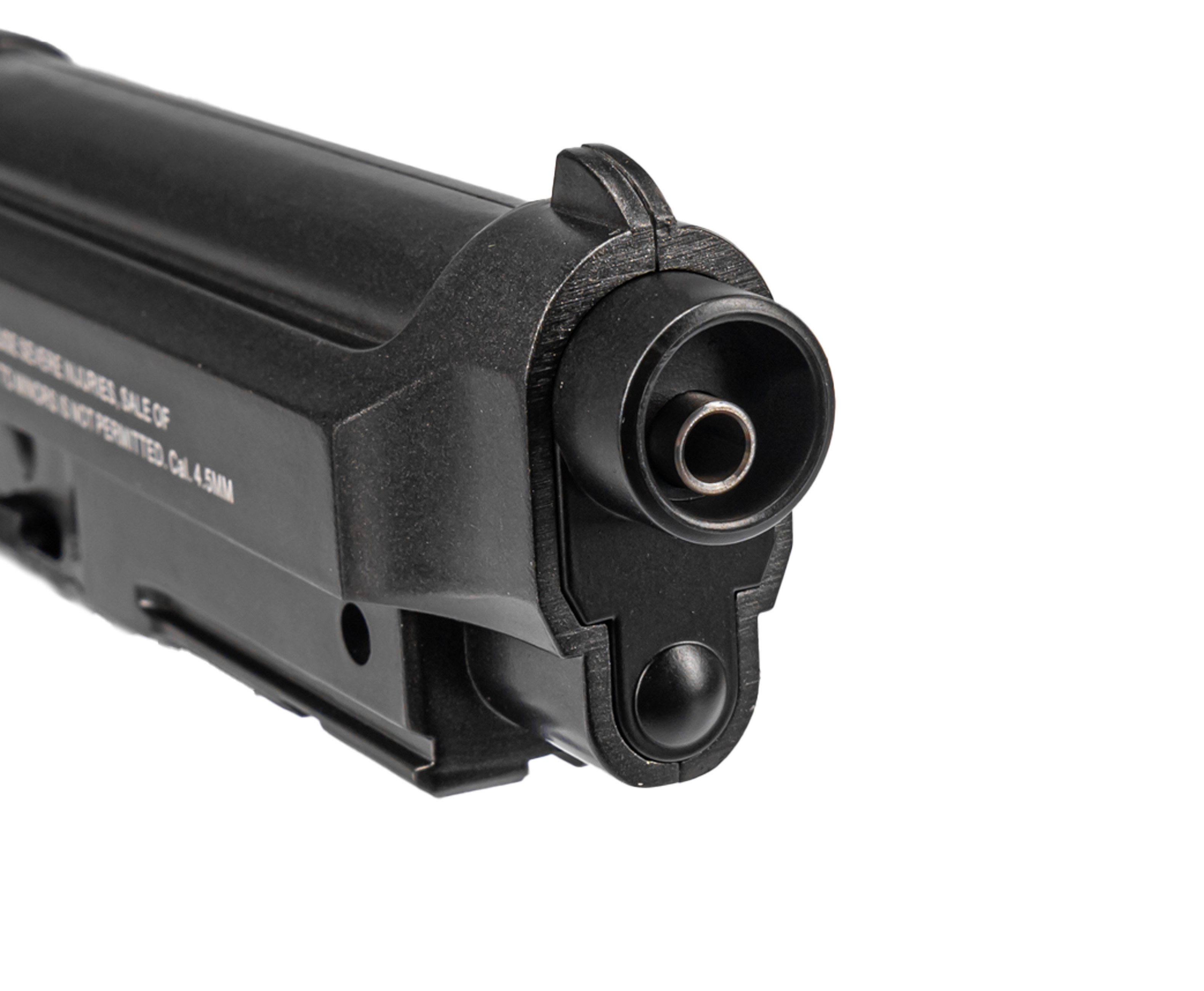 Значение дульной энергии выстрела у рассматриваемого образца пневматического оружия не превышает отметки равной трем Джоулям, о чем свидетельствует сертификат. Благодаря этим показателям покупка пистолета не требует наличия лицензии или других разрешительных документов. При этом производитель отмечает, что при стрельбе пуля способна разгоняться до 120 метров в секунду.