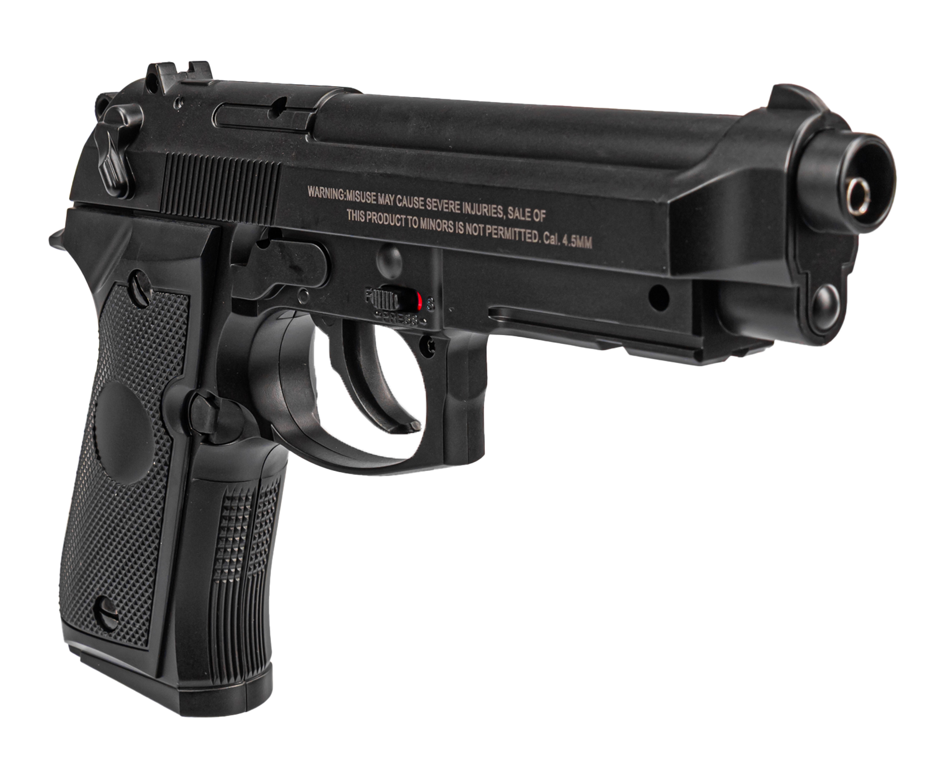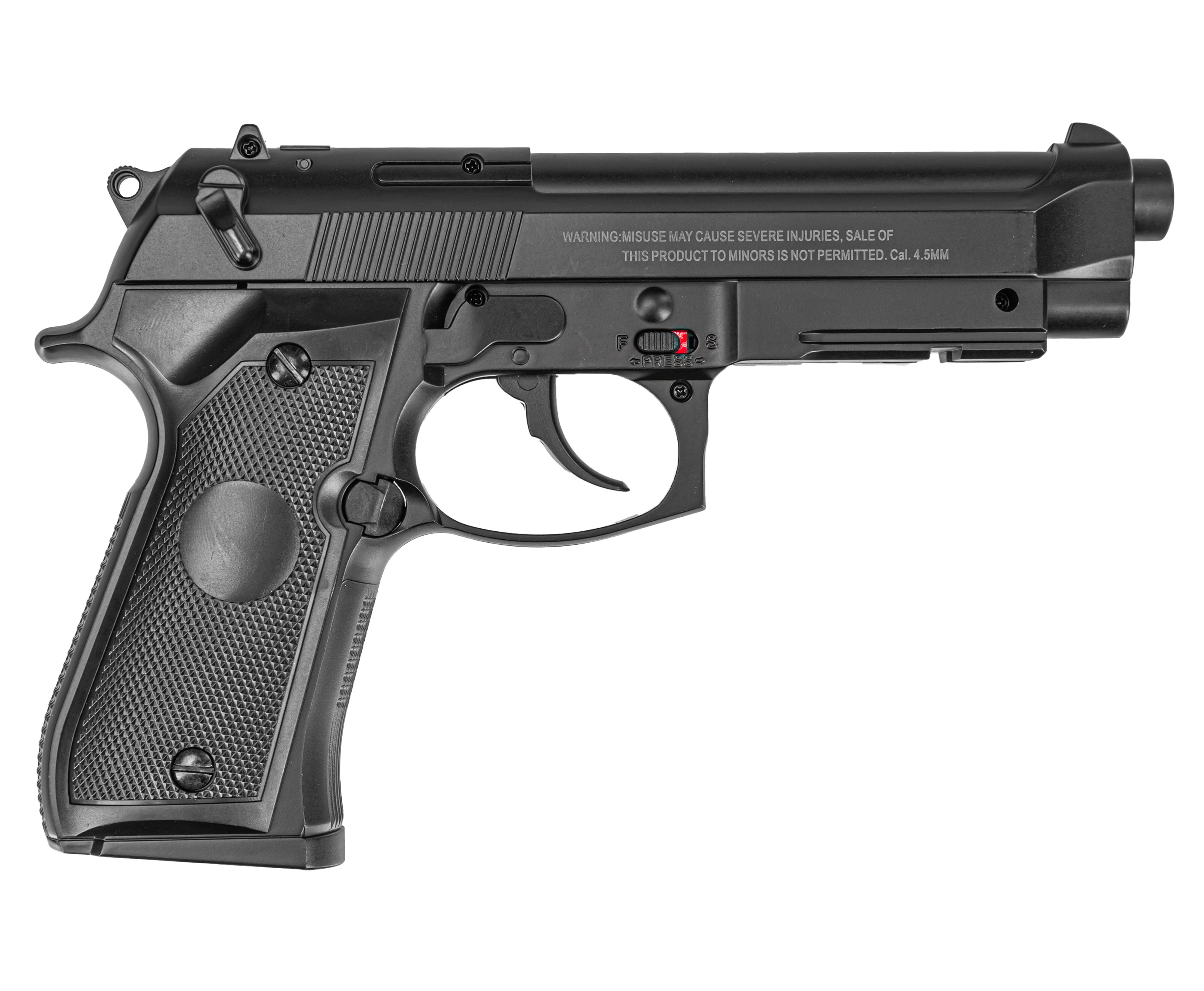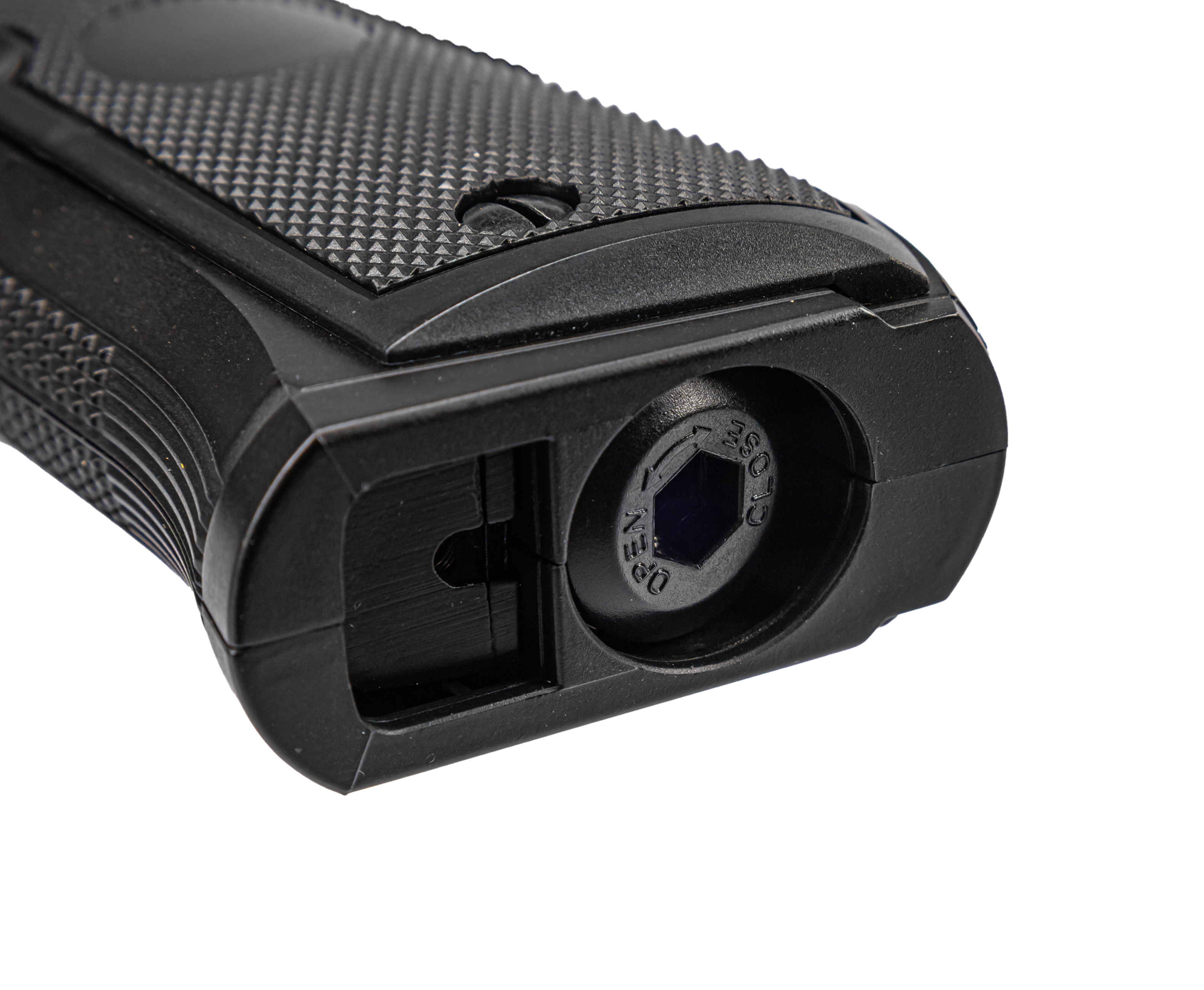 Чтобы обеспечить требуемый уровень безопасности при обращении с пневматическим пистолетом и исключить случайного поражения посторонних объектов, изготовитель оснастил модель двухпозиционным предохранителем. В позиции «Save» с белой индикацией, описанная клавиша блокирует работу УСМ и не дает произвести выстрел при случайном нажатии спускового крючка.