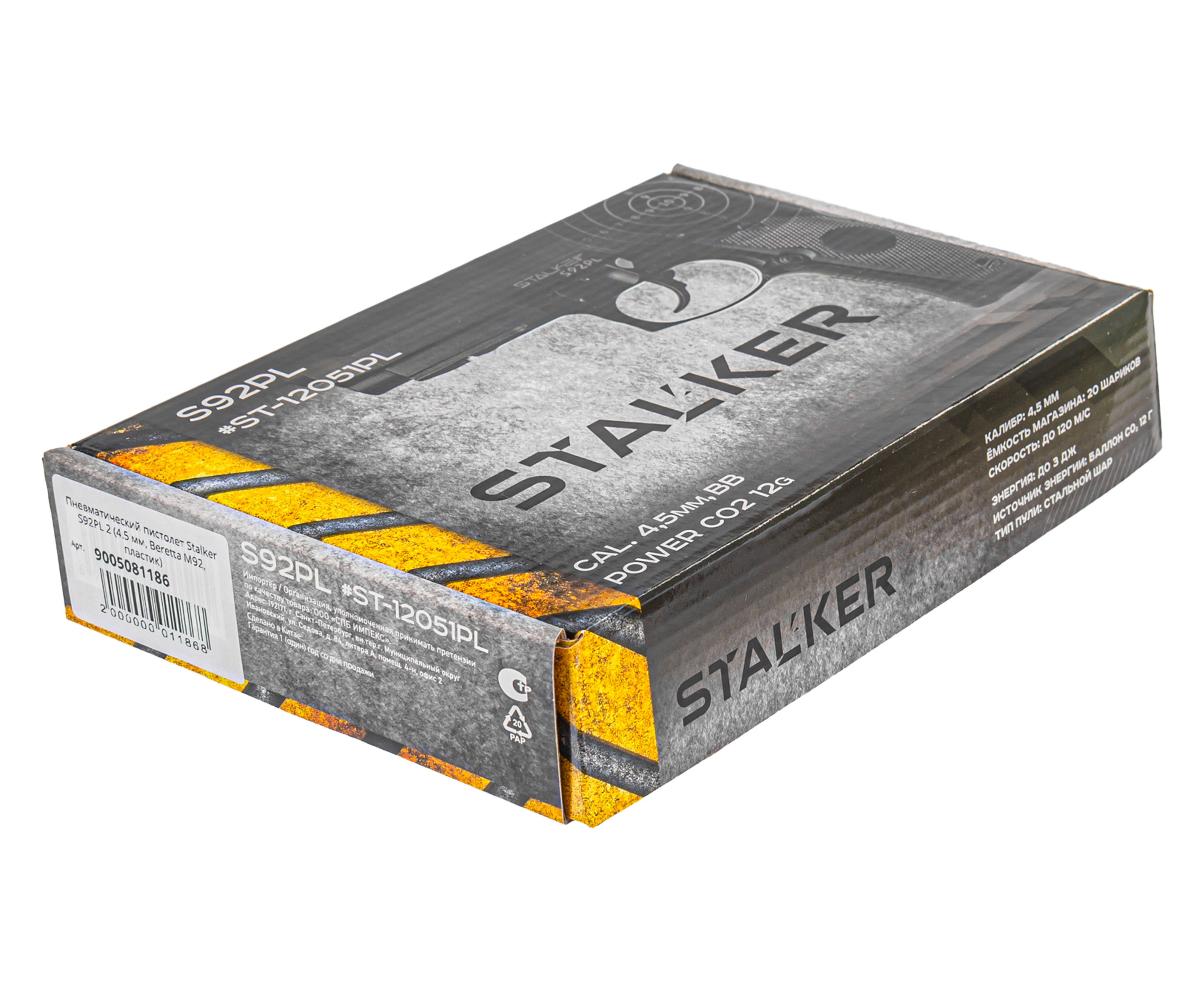 К перечню упомянутых товаров относится рассматриваемый набор Хантер Сет номер 3, основой для формирования которого выступает пневматический пистолет S92PL 2 от компании Stalker. Визуально представленный пневмат повторяет внешний вид, а также конструкцию узнаваемой итальянской Беретты 92, нередко демонстрируемой в популярных фильмах, сериалах и видеоиграх.