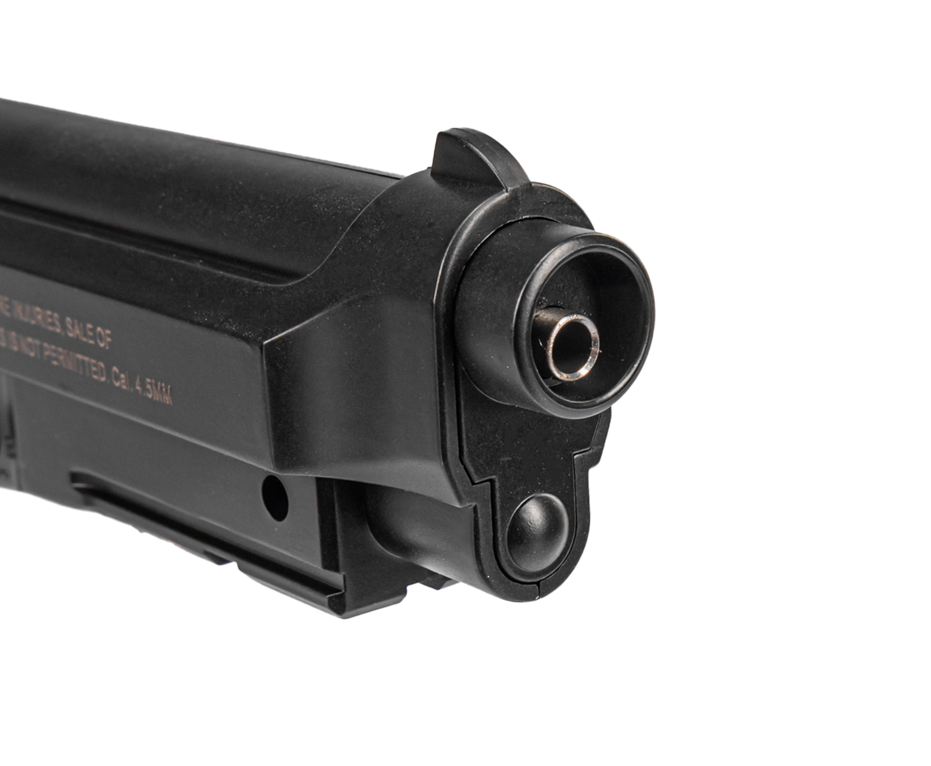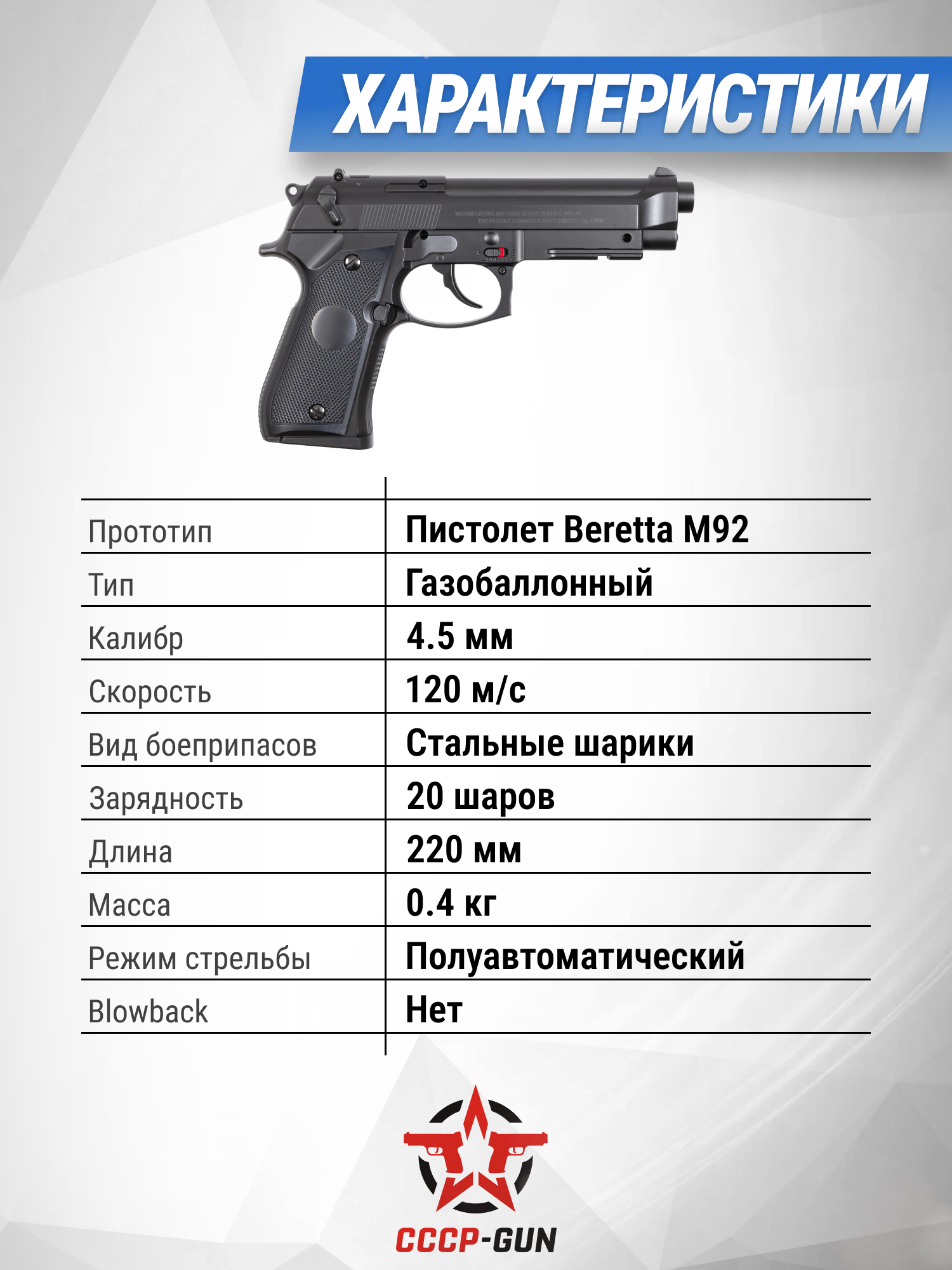 Производитель обращает внимание пользователей на скорость разгона стальных пуль, которая сохраняется в пределе 120 метров в секунду, что в свою очередь говорит о возможности занятия эффективными тренировками на средних для подобных пистолетов дистанциях и праве на покупку изделия без специальной оружейной лицензии.