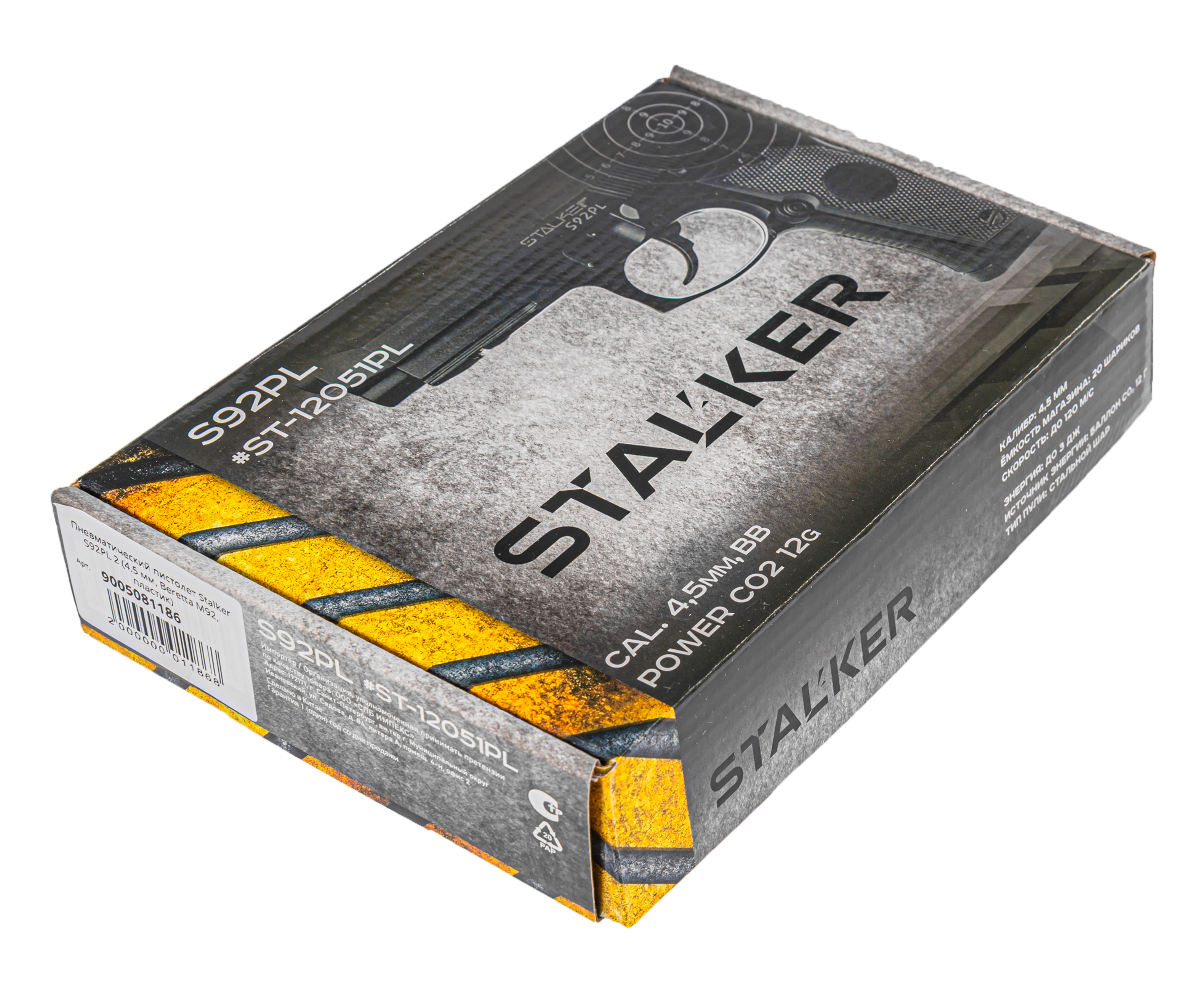 Упомянутый образец имеет визуальную схожесть с легендарным итальянским пистолетом Beretta 92 в исполнении с подствольным креплением для целеуказателей и тактических фонарей. Поскольку прототип, которым вдохновлялись конструкторы компании Stalker, более 40 лет состоит на вооружении разных армий мира, а также всевозможных силовых структур, он сумел заработать статус культового экземпляра оружия. На узнаваемость пистолета также повлияла его частая демонстрация в фильмах, компьютерных играх и других направлениях популярной культуры.