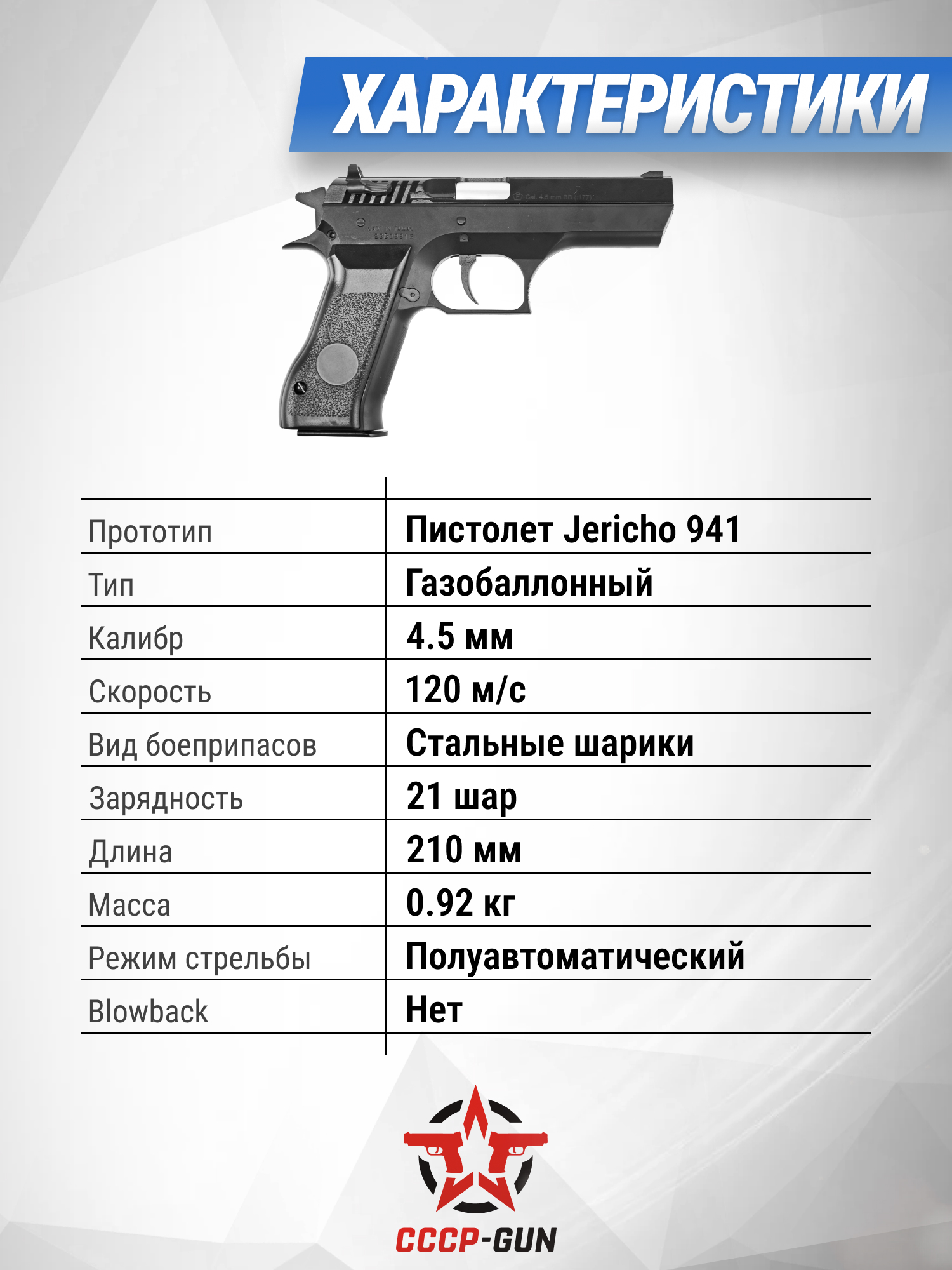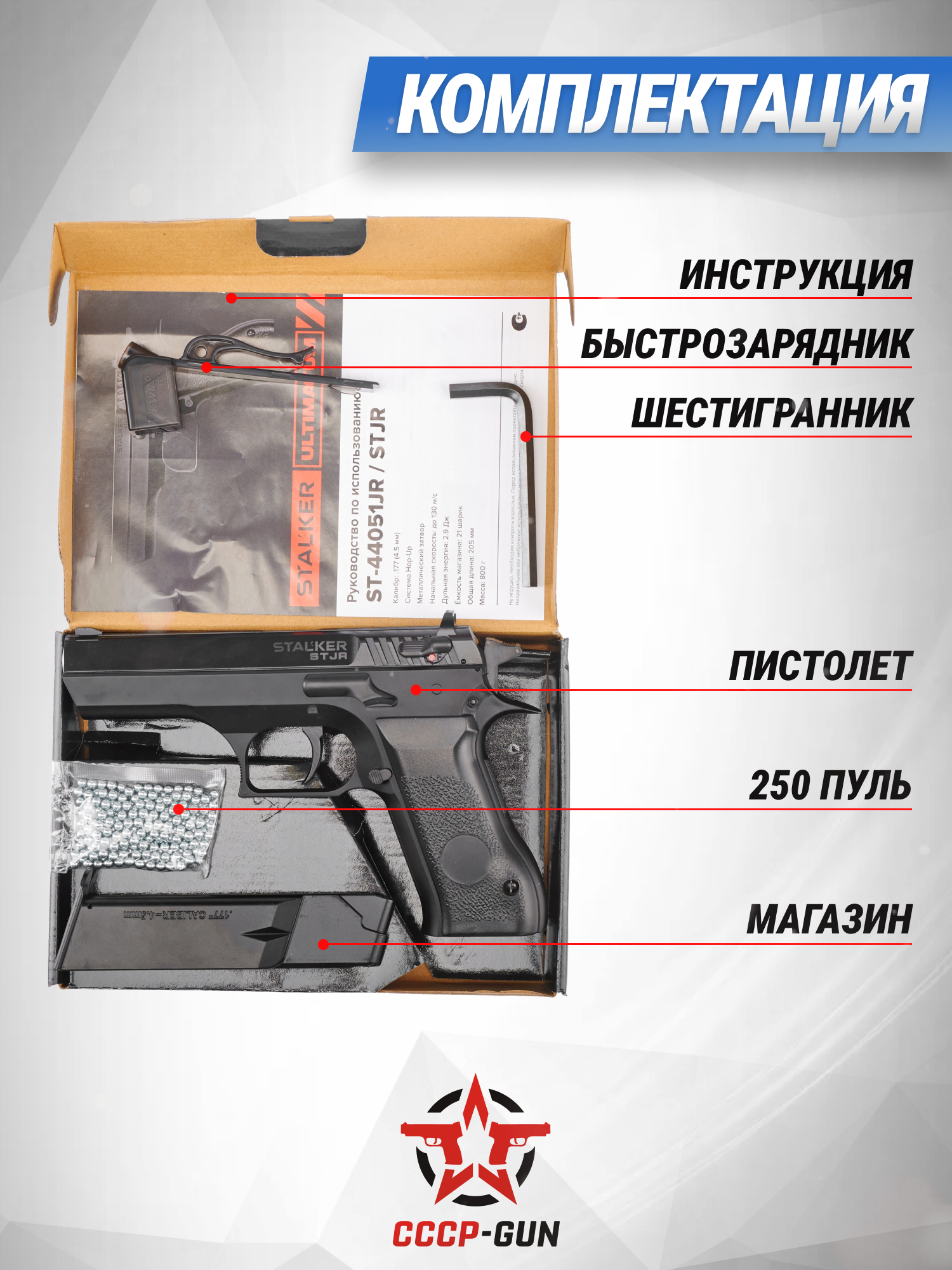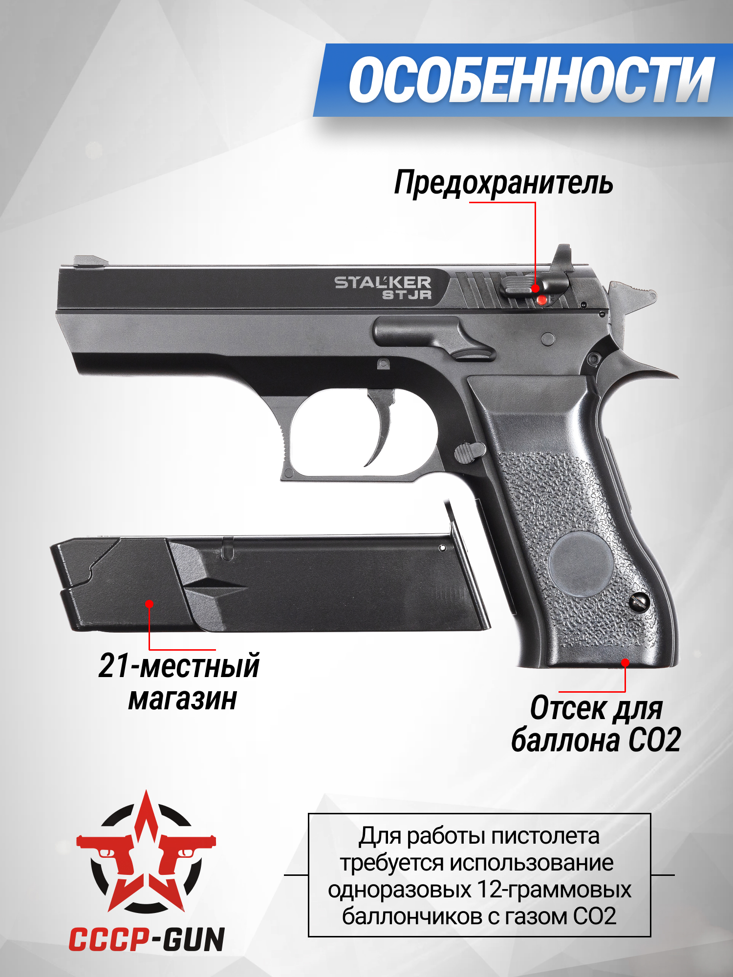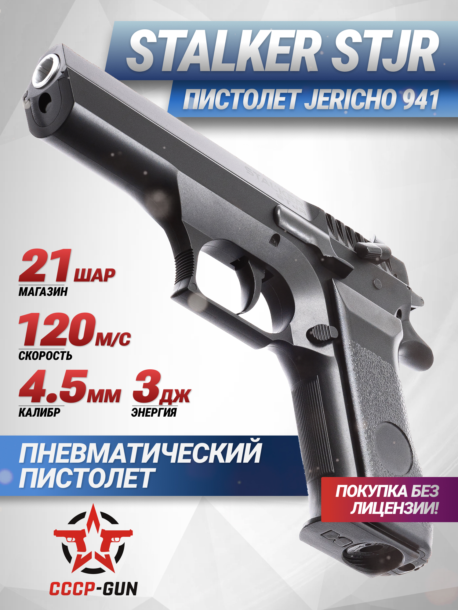 Stalker STJR был разработан конструкторами по образу израильского пистолета Jericho 941, который стоит на вооружении спецподразделений и армий с 1990 года. Обозреваемая пневматическая модель весит порядка 920 грамма, а полная длина изделия равна 210 миллиметрам. Материалом рамки и рукояти выступает ударопрочный пластик, при этом затвор изготовлен из сплава, что добавляет пистолету аутентичности.