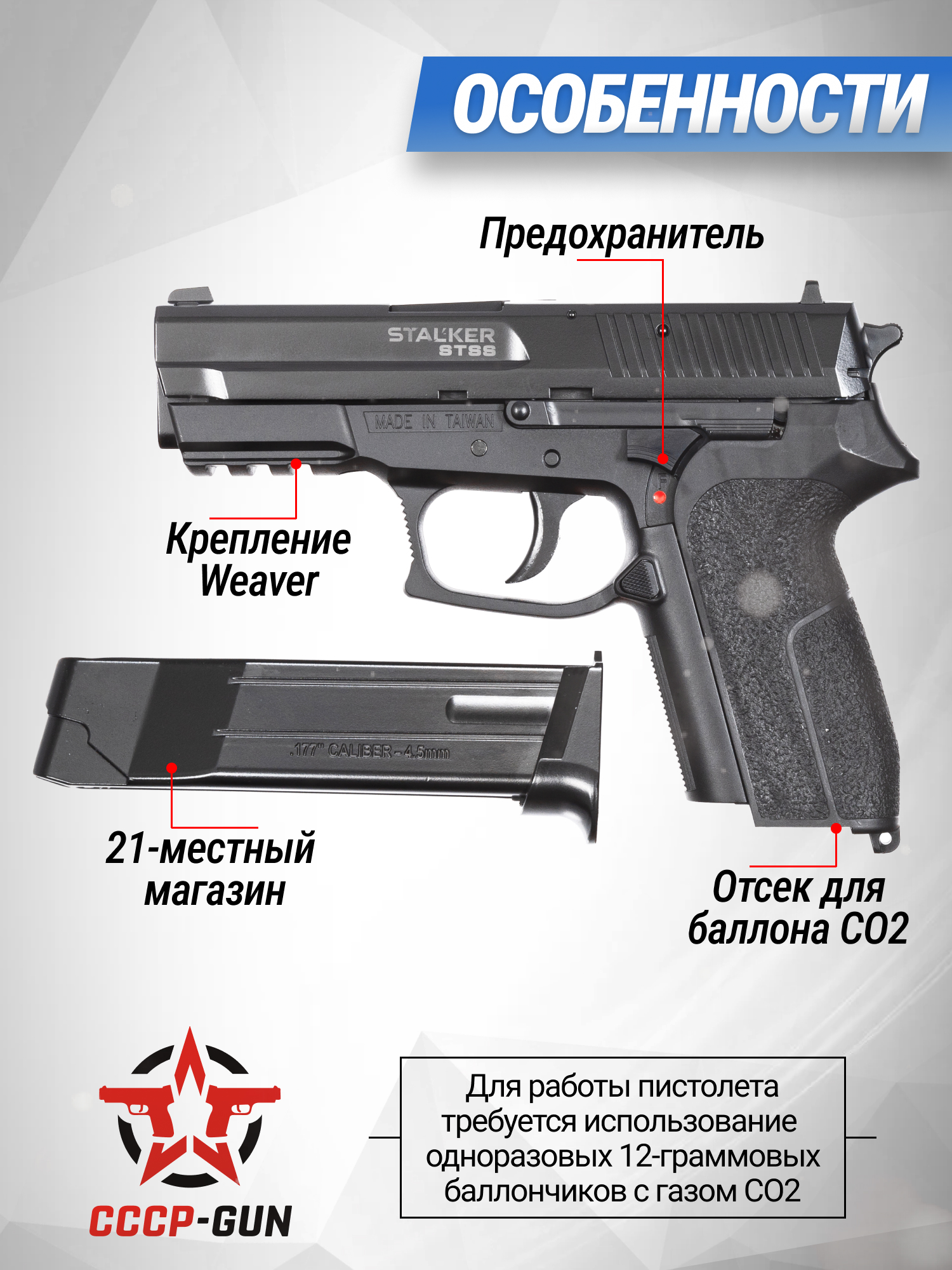 Пневматические пистолеты стали распространенным средством для развлекательной стрельбы и тренировки меткости за счет простого способа приобретения, что помогает начинающим пользователям приобщаться к оружейной культуре. Бренд Stalker, который является дочерним предприятием популярной компании CYMA, разрабатывает такие изделия и продает на территории России с 2015 года. За этот период времени фирме удалось завоевать доверие покупателей и обзавестись большим количеством фанатов.