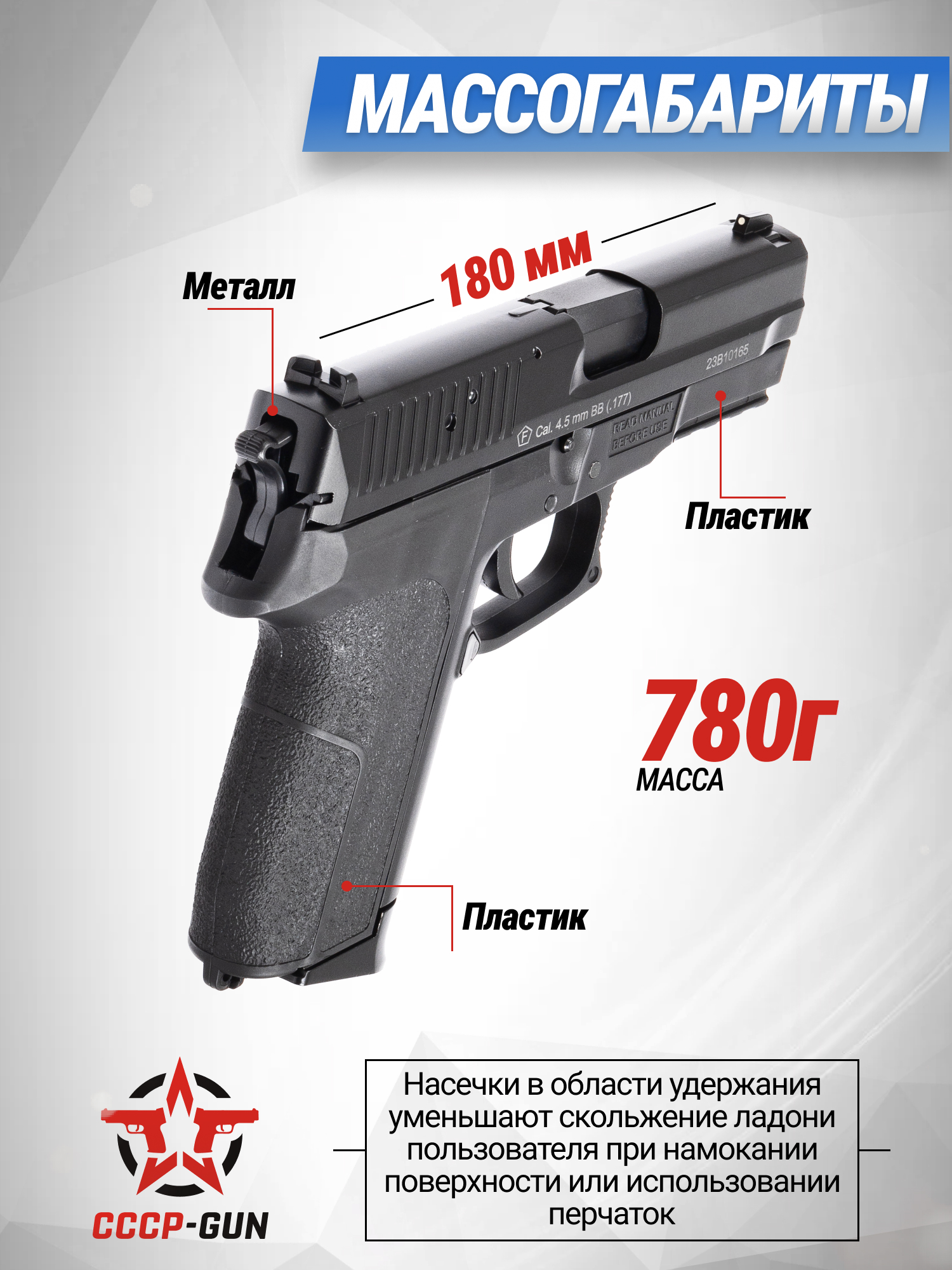 Стрельба осуществляется шариками калибра 4.5 миллиметра из стали, которые относятся к распространенному формату Bullet Balls. Вставляются боеприпасы в магазин, рассчитанный на 21 снаряд, а для ускорения перезарядки производитель приложил в набор специальный фаст-лоадер. Более того, большим плюсом считается то, что в комплекте с пистолетом находятся сразу двести пятьдесят шариков для стрельбы.