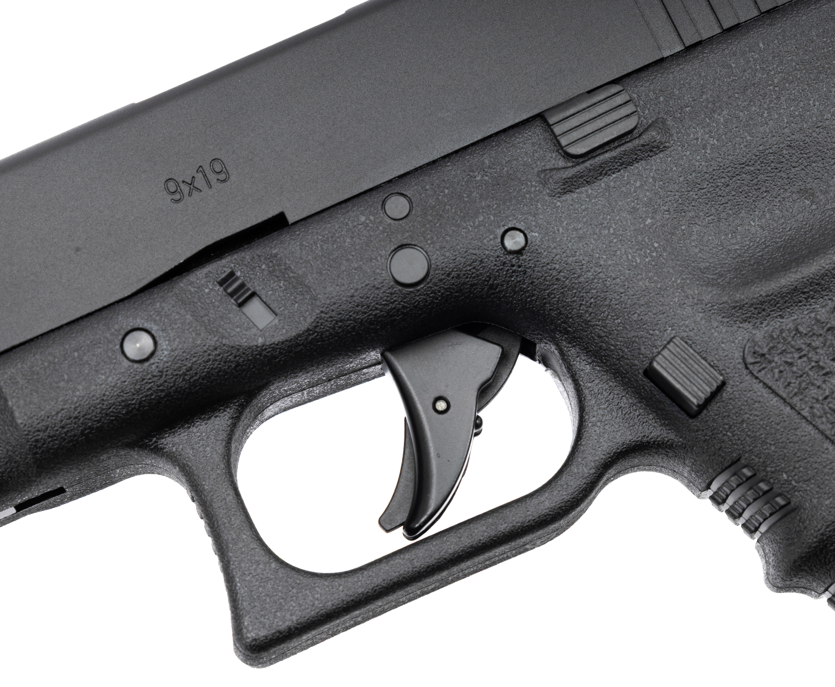 В целях безопасности в обозреваемой модели присутствует автоматический предохранитель на спусковом крючке и дополнительный двухпозиционный переключатель на корпусе под стволом. Там же установлена RIS-планка, для фиксации на пистолете приборов типа лазерных целеуказателей или фонарей. Затворная рама включает механические нерегулируемые прицельные приспособления открытого формата с белой маркировкой для выделения целика и мушки.
