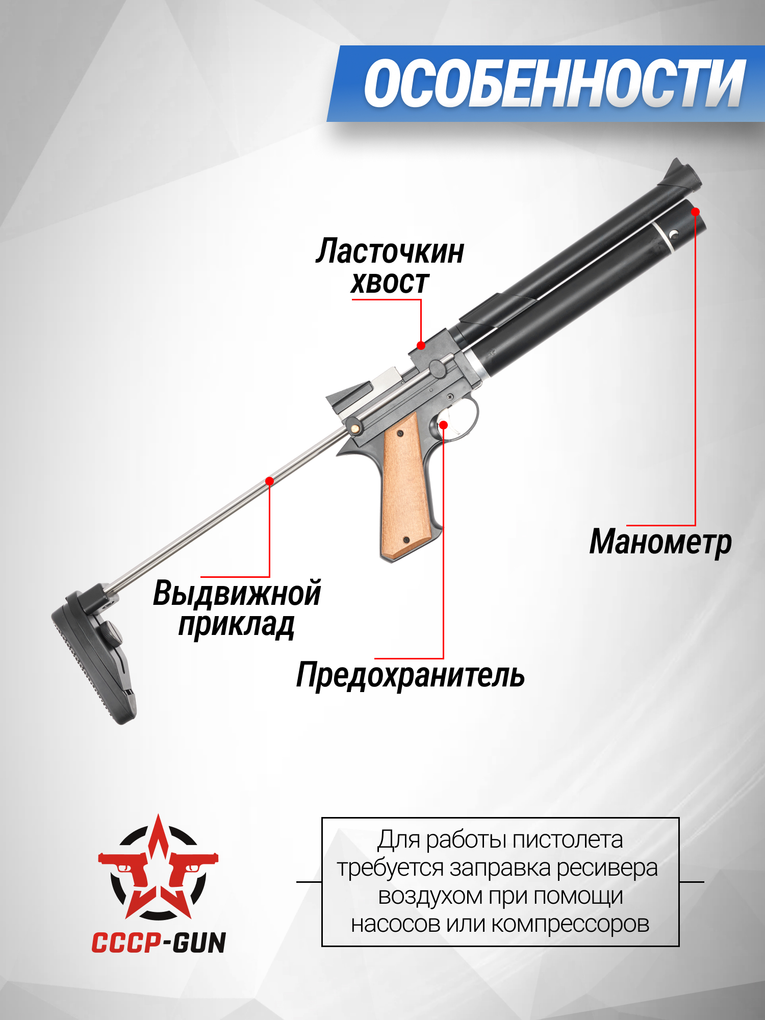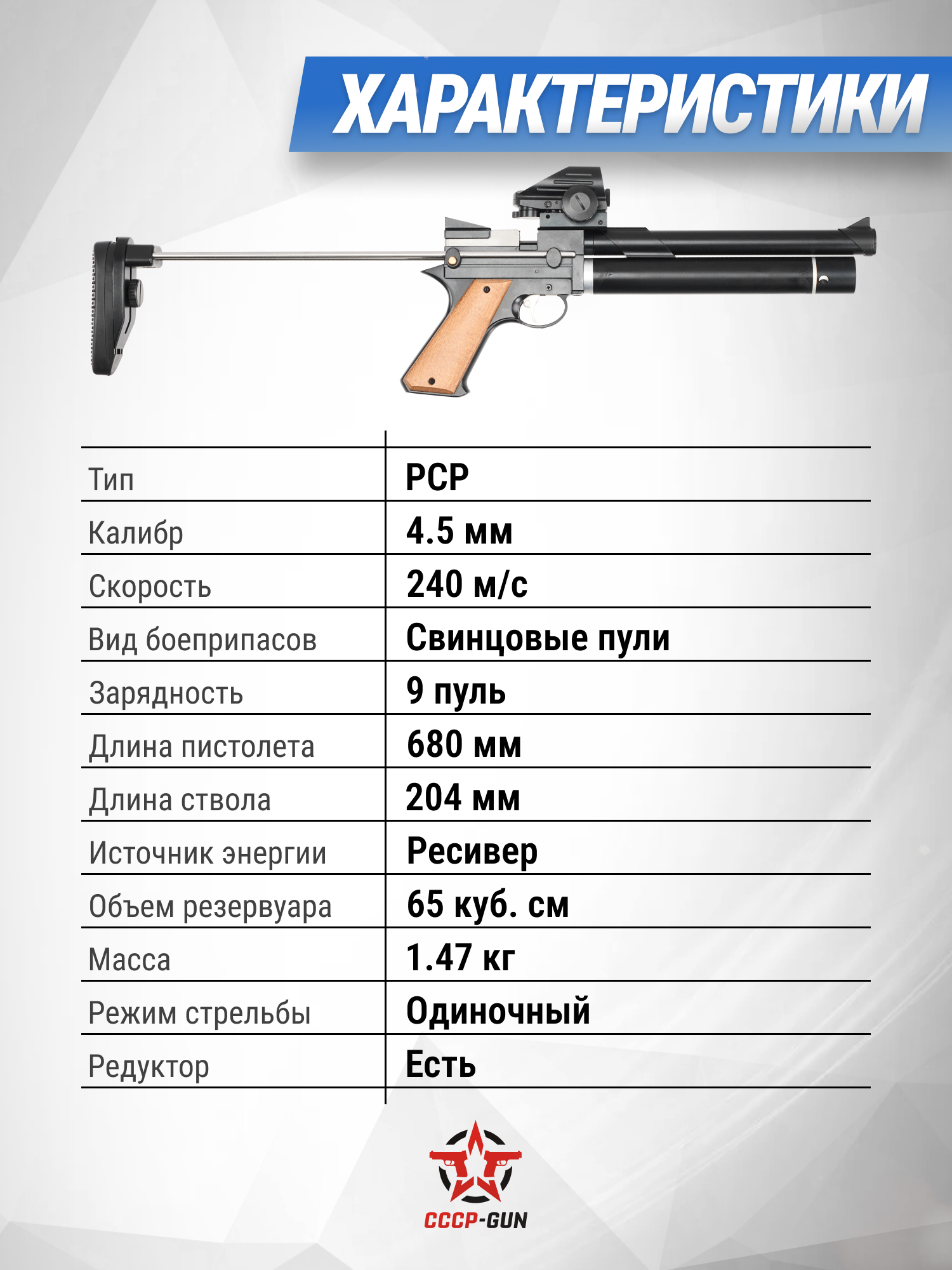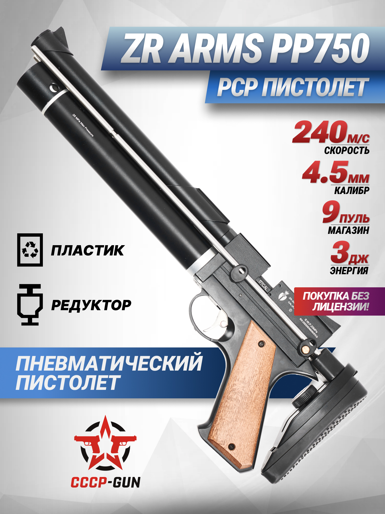 Пневматический пистолет ZR Arms PP750 4.5 мм (PCP, приклад)