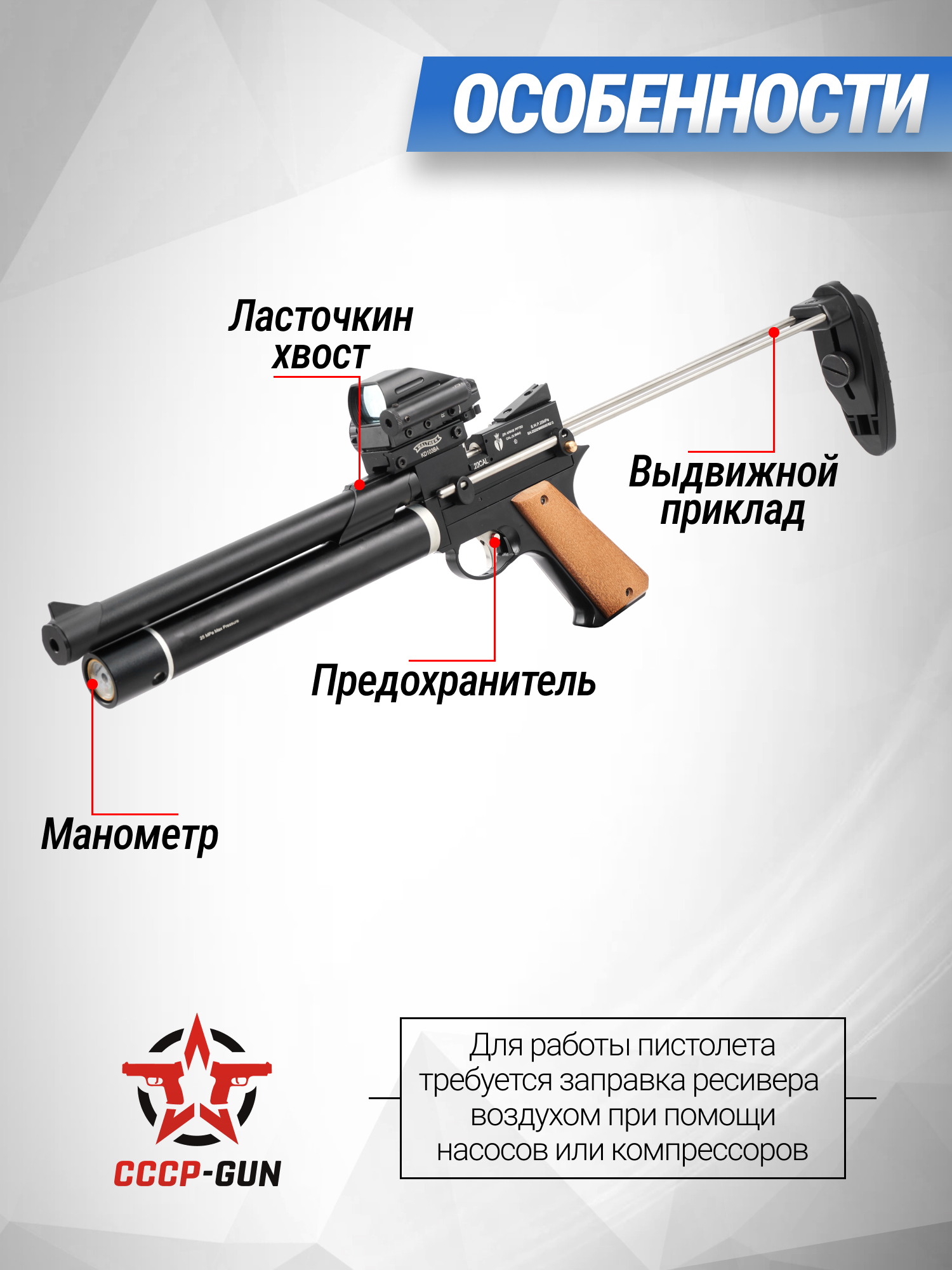 Пневматический пистолет ZR Arms PP750 4.5 мм (PCP, приклад)