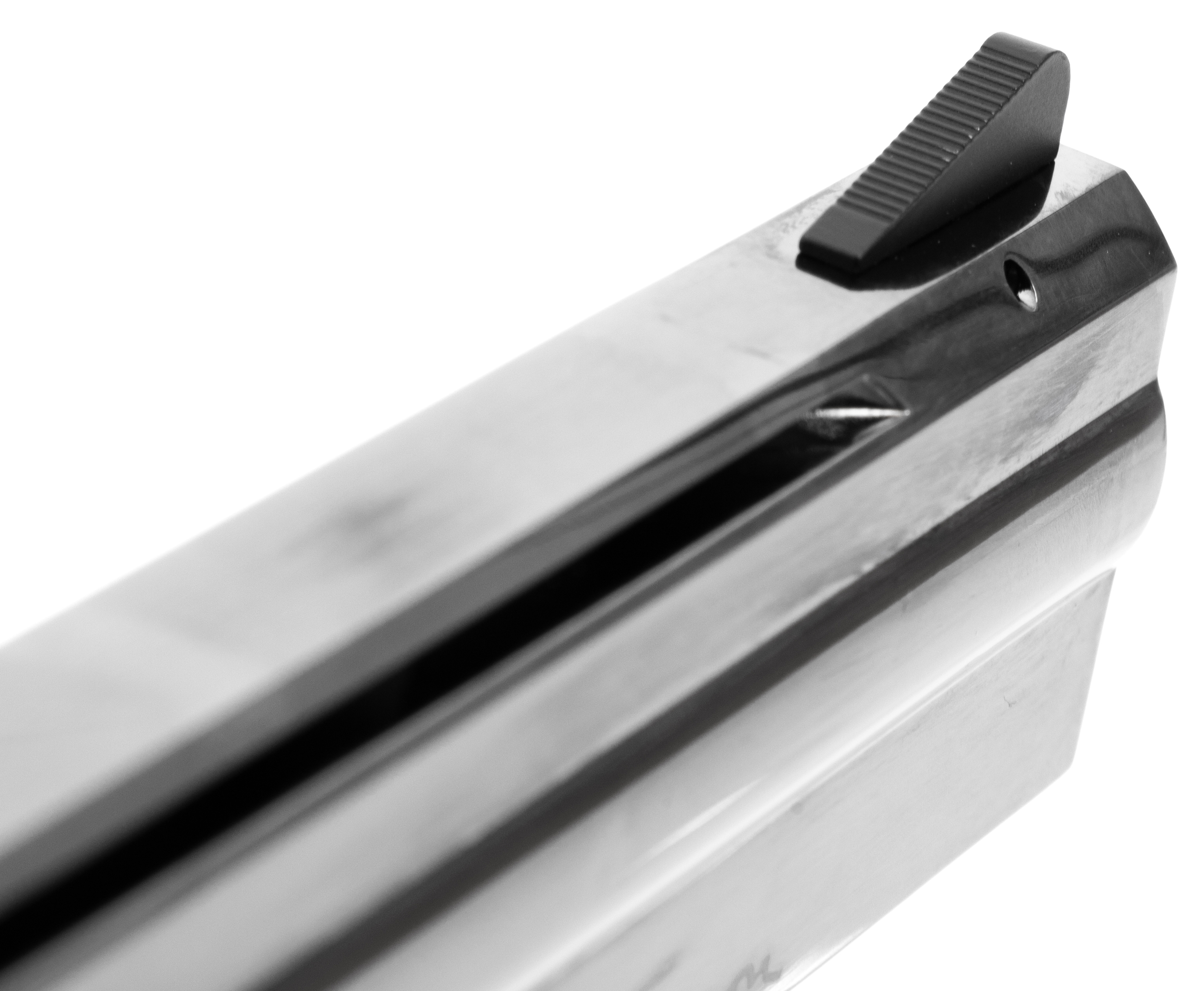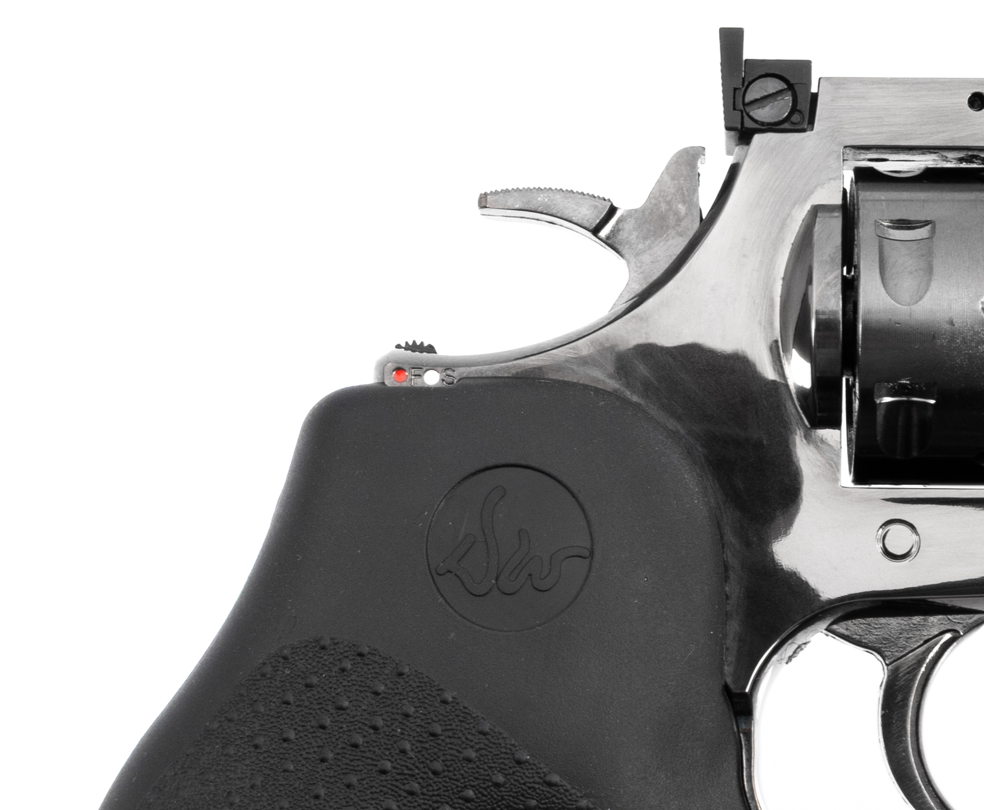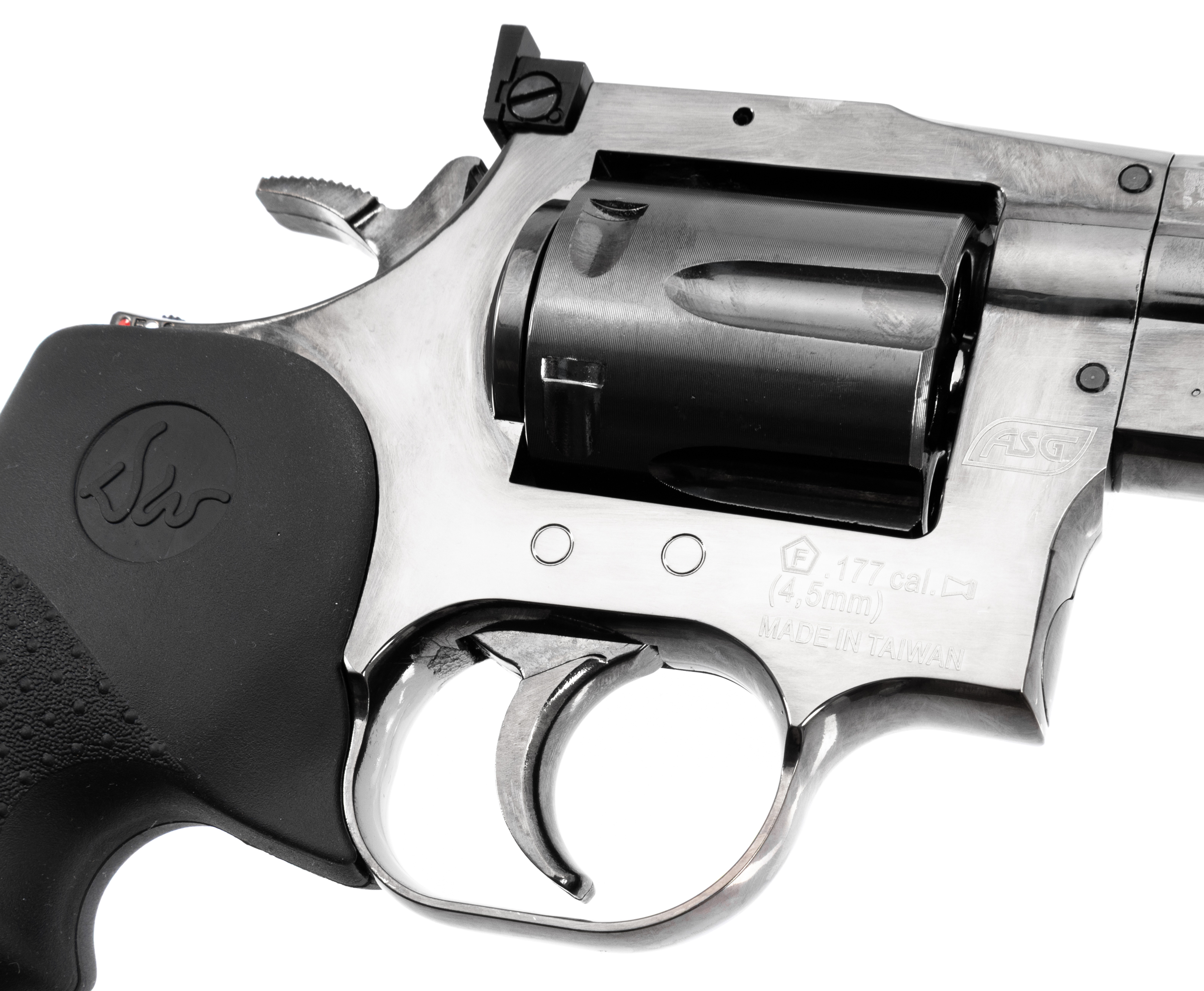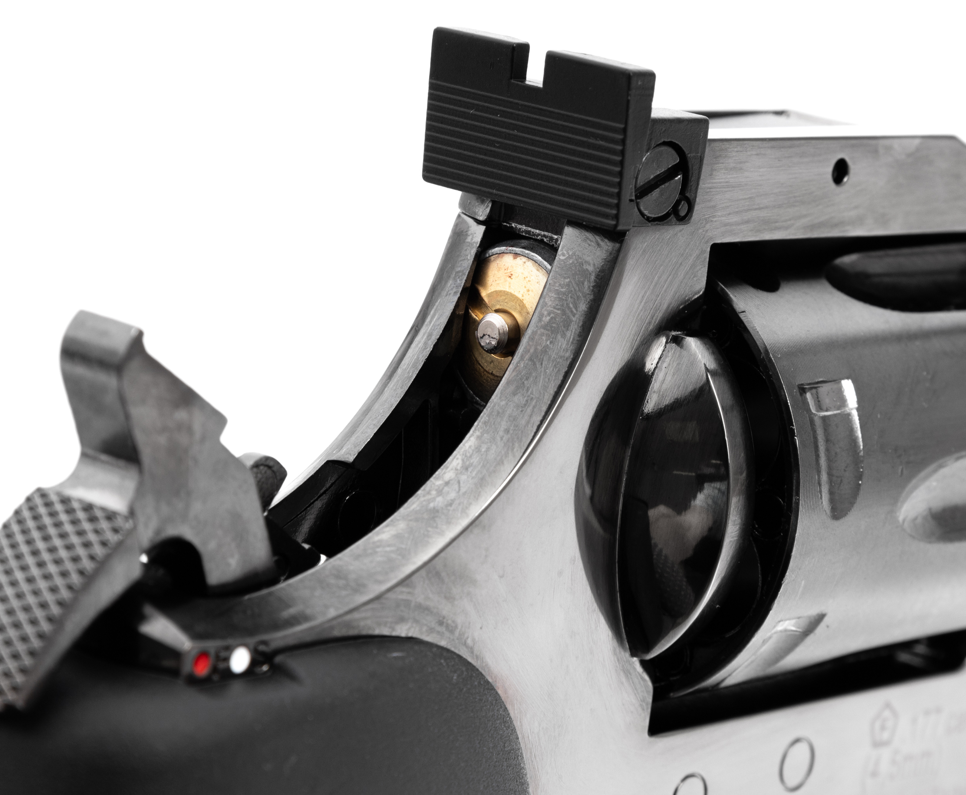Рассматриваемый револьвер спроектирован для стрельбы свинцовыми воланчиковыми пулями калибра 4.5 миллиметра, относящимися к распространенным боеприпасам. Заряжаются снаряды в 6-местные барабаны с помощью фальшпатронов, которые предусматривают ускоренную интеграцию в магазин через комплектный фаст-лоадер. Поскольку ствол револьвера нарезной, модель демонстрирует хорошую точность даже при работе по целям, расположенным на отдалении.