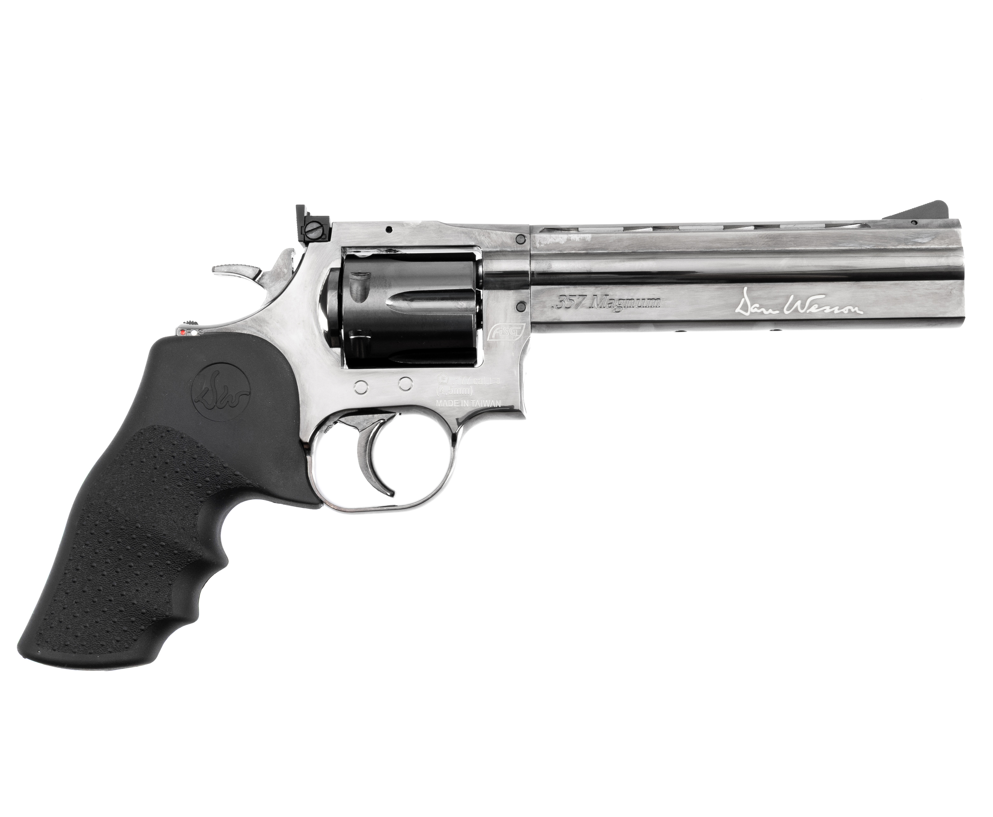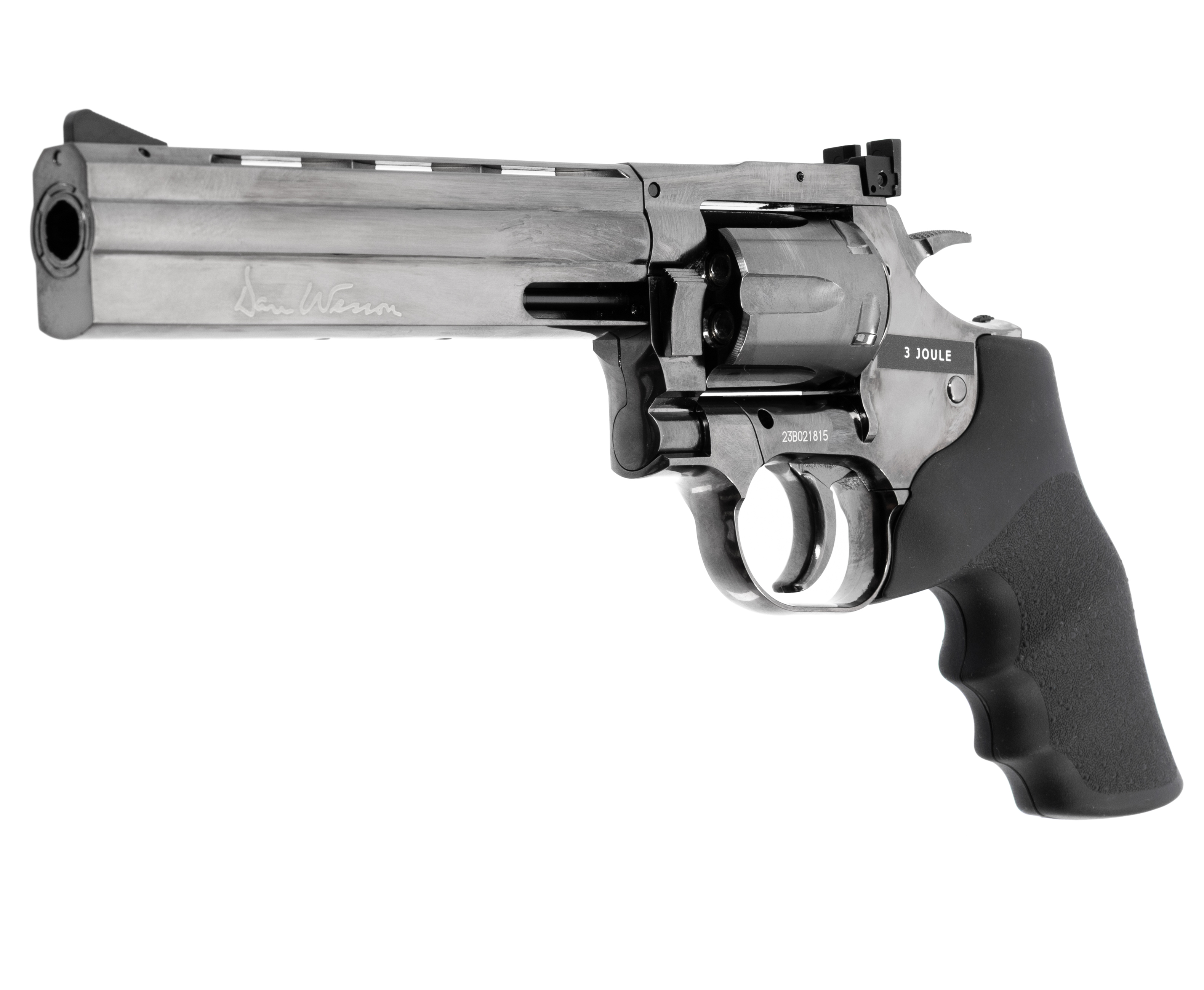 Обозреваемое изделие представляет собой премиальную пневматическую адаптацию револьвера Dan Wesson Model 715 с длиной ствола, равной 6 дюймам. Изготавливается экземпляр из металла, ввиду чего конструкторам удалось приблизить массу к характеристике боевого образца, составляющую 1.15 кг при габаритах в 300 мм. Также стоит отметить, что пневматика оборудована стальными мушкой и целиком открытого плана, которые выделяются надежностью и прочностью.