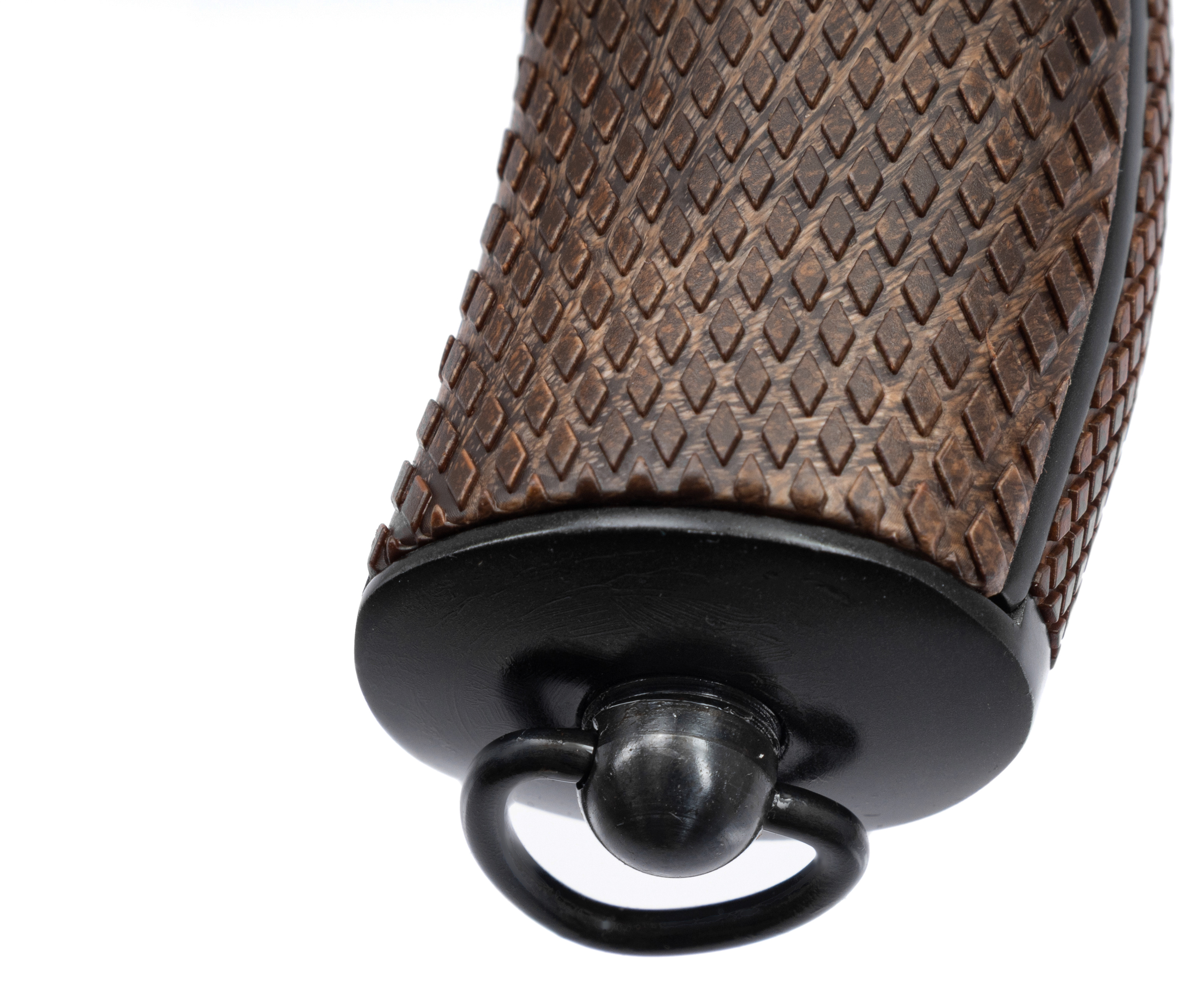 Рассматриваемая модель Борнер НГТ-П может похвастаться полностью металлическим корпусом черного оттенка, что добавляет аутентичность изделию. Полный размер пневматики равен 23 сантиметрам, а вес составляет порядка 700 грамм. На рукояти предусмотрены пластиковые накладки с рельефной текстурой, которые выполнены в коричневом цвете, имитируя каноничные деревянные вставки.