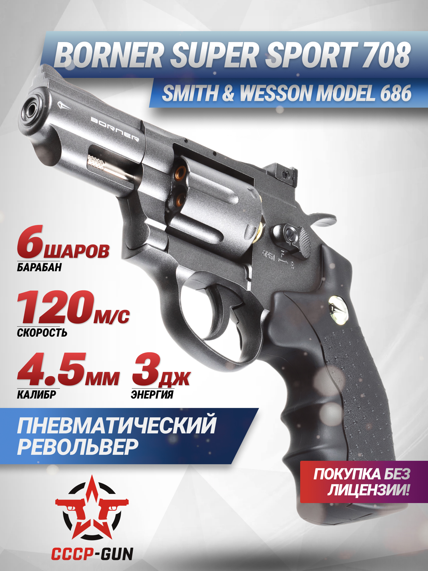 При выстреле револьвер разгоняет снаряд до скорости в 120 метров в секунду, что относит изделие к классическим представителям газобаллонной пневматики. Дульная энергия таких моделей не превышает ограничения в 3 Джоуля, а это значит, что для покупки Borner Super Sport 708 пользователю не понадобится оформлять специальную лицензию в разрешительном отделе Росгвардии. Опираясь на эти данные не сложно понять, что производитель делает пневматику доступной для развлекательной стрельбы и тренировок новичков.