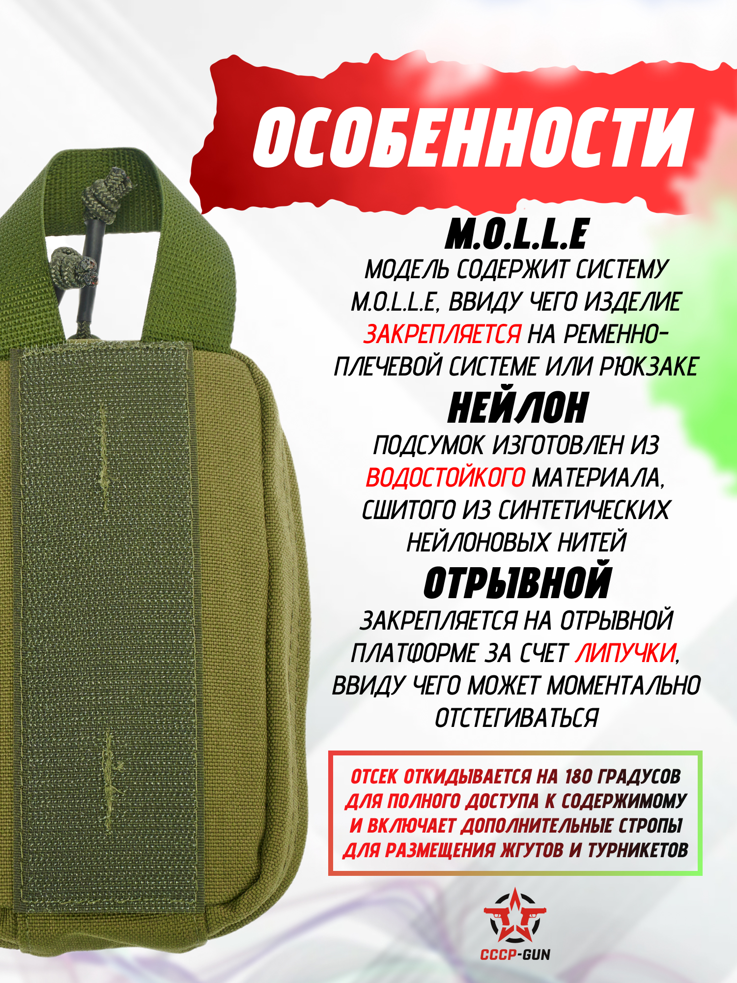 Также подсумок очень надежен поскольку в его изготовлении использовалась водонепроницаемая, плотная ткань марки Cordura 1000D.