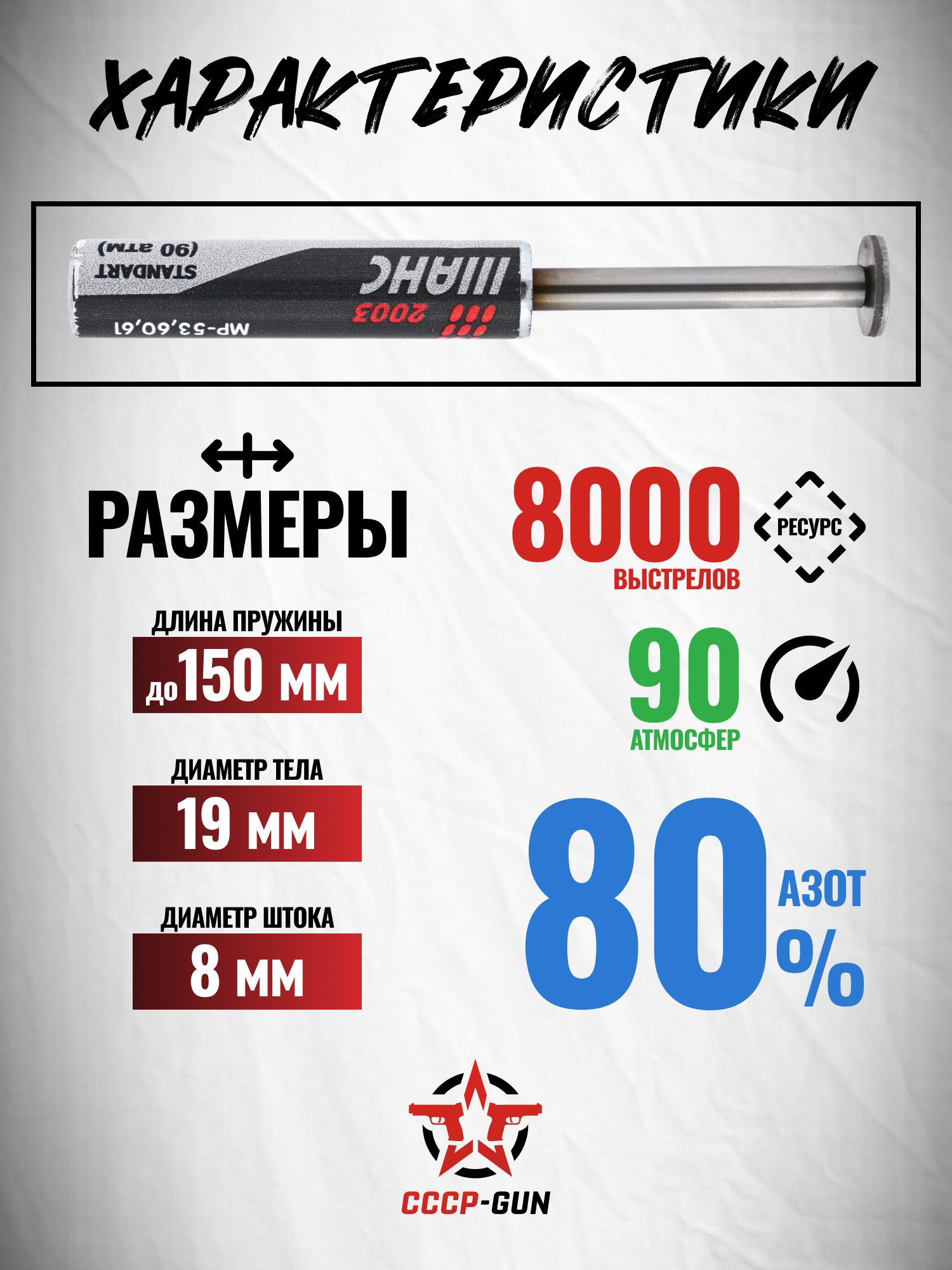 Для усовершенствования винтовок распространенных серий МР-53, МР-60 и МР-61 фирма Шанс разработала рассматриваемый газовый модуль стандартного типа. Образец заполняется азотом 80%, при этом создаваемое давление на штоке составляет 90 Атм. При соблюдении условия, что дульная энергия оружия остается в разрешенной границе, модернизацию допустимо выполнять в домашних условиях.