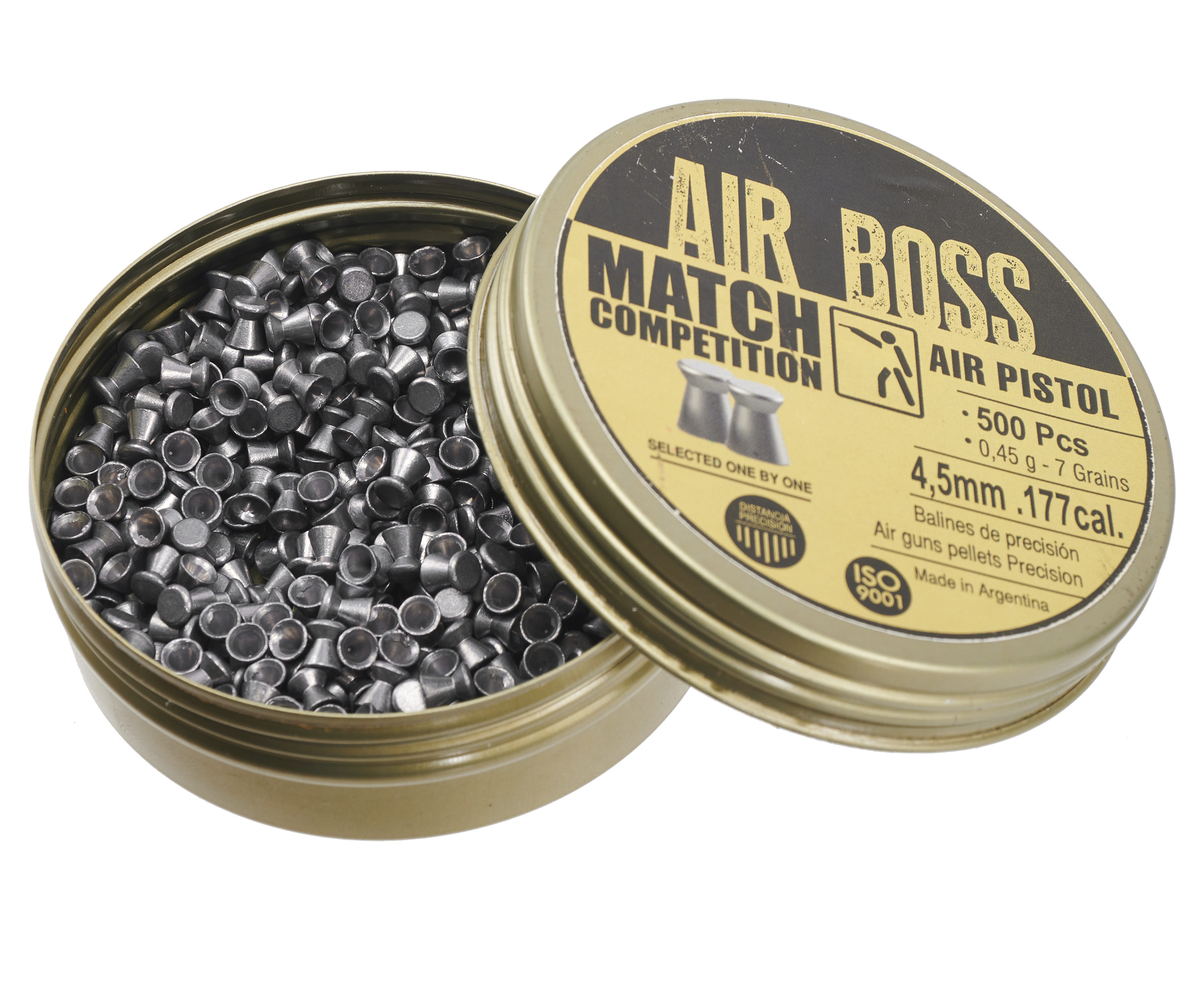 Рассматриваемые экземпляры серии Air Boss Match Pistol изготавливаются из высококачественного свинца и предназначены для использования в пневматическом оружии калибра 4.5 миллиметра. Головная часть боеприпаса характеризуется плоским форм-фактором, что характерно для пуль тренировочного назначения. Это объясняется пониженной вероятностью рикошета и ровными отверстиями, оставляемыми зарядами в бумажной мишени.