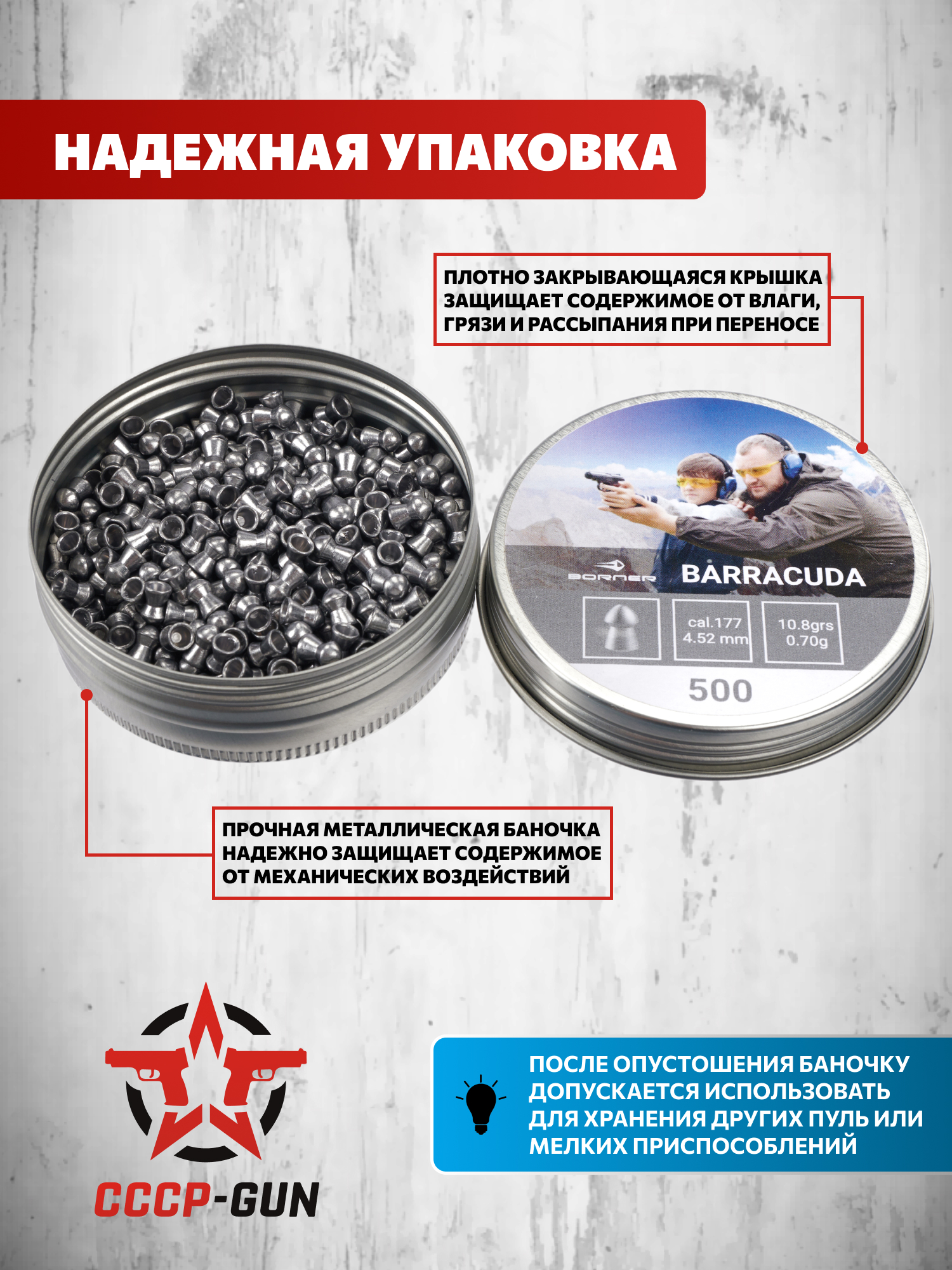 Рассматриваемые пули Барракуда, оснащенные полусферической головкой, демонстрируют повышенную стабильность траектории. Такое решение гарантирует эффективное поражение объектов на удаленной дистанции. Помимо упомянутой геометрической конфигурации, боеприпасы отличаются увеличенной массой, способствующей снижению воздействия от порывов ветра при движении - каждый элемент линейки весит 0.7 грамма.