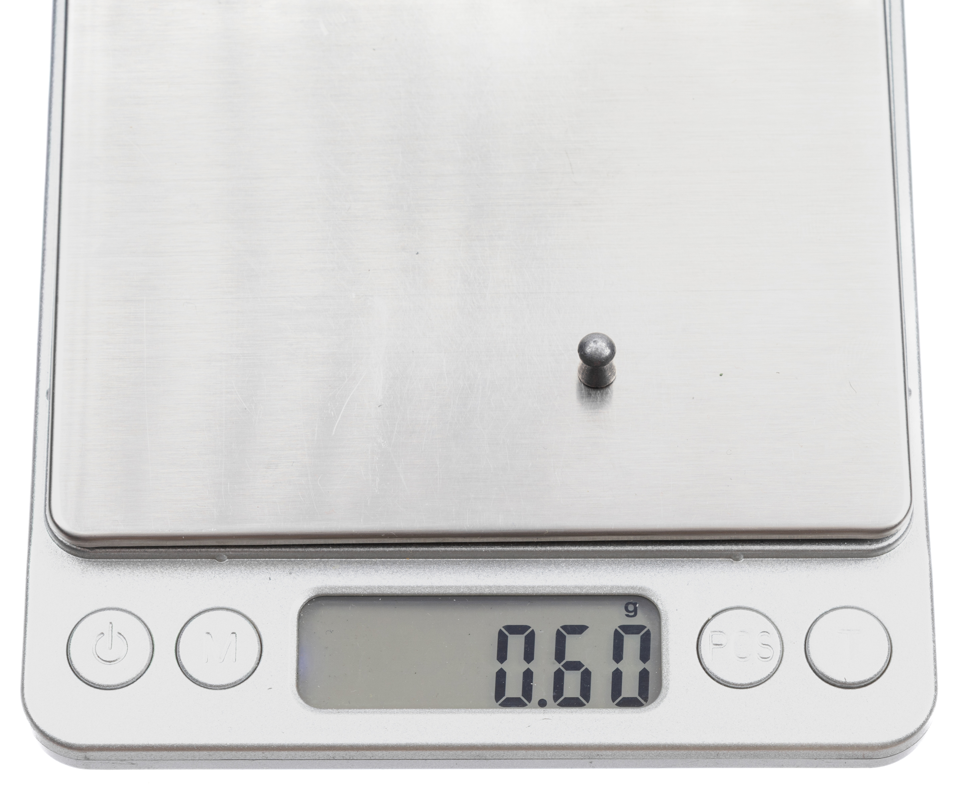 Для изготовления используется свинец - такой материал снижает абразивное воздействие на внутренний канал ствола, увеличивая тем самым его эксплуатационный ресурс. Автоматизированные станки гарантируют минимальные отклонения в массе при номинальном значении 0.55 г между экземплярами, что критически важно для достижения повторяемости результатов при серийной стрельбе.