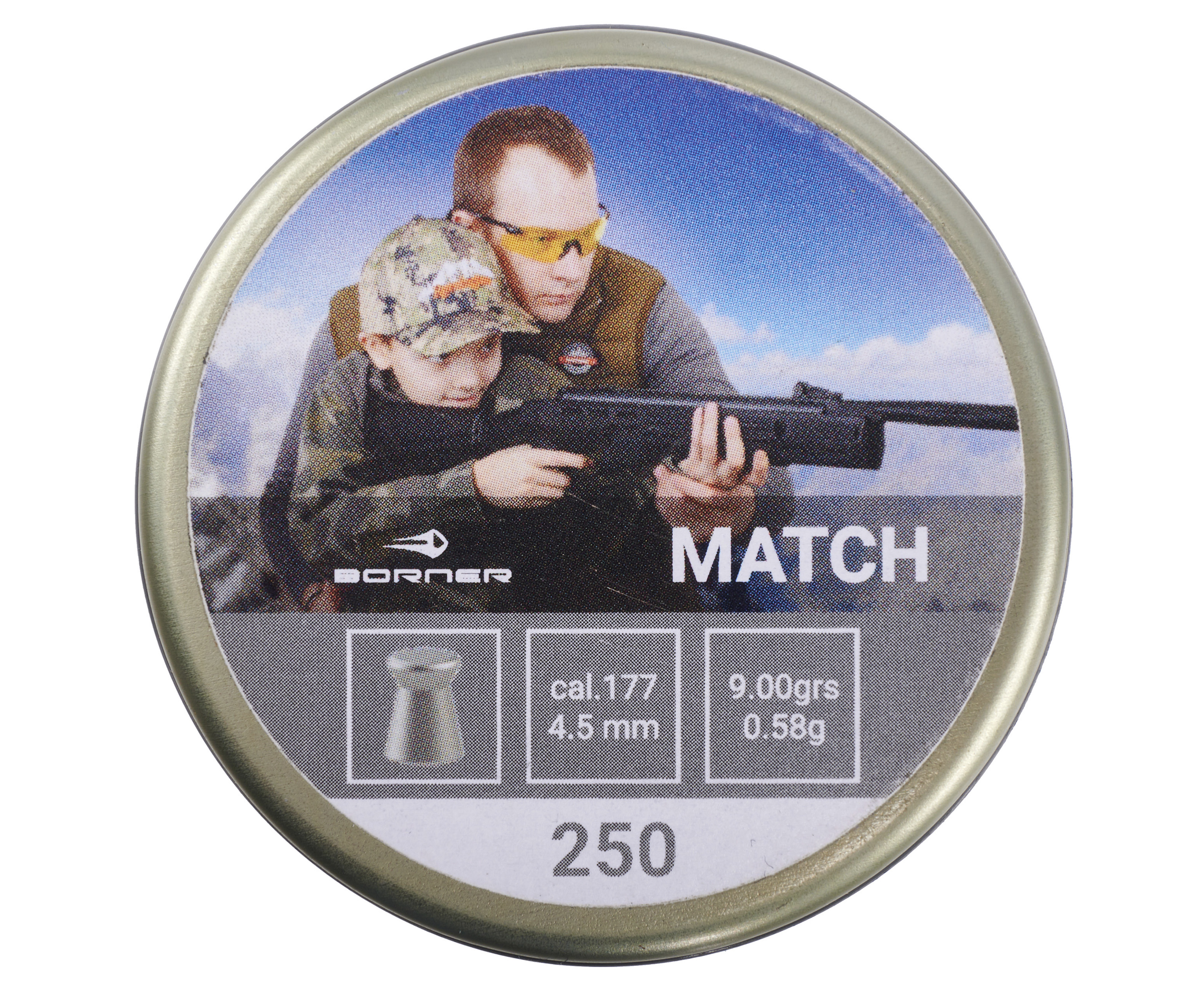 Рассматриваемые боеприпасы серии Match созданы для нарезных пневматических винтовок и пистолетов с диаметром внутреннего канала ствола 4.5 миллиметра. Отмеченные заряды производятся из свинца на автоматизированных станках - гарантируется полная идентичность экземпляров по геометрии. Следовательно, формируется повторяемость выстрелов относительно баллистики, что важно для профессиональных стрелков при соревнованиях или тренировках.