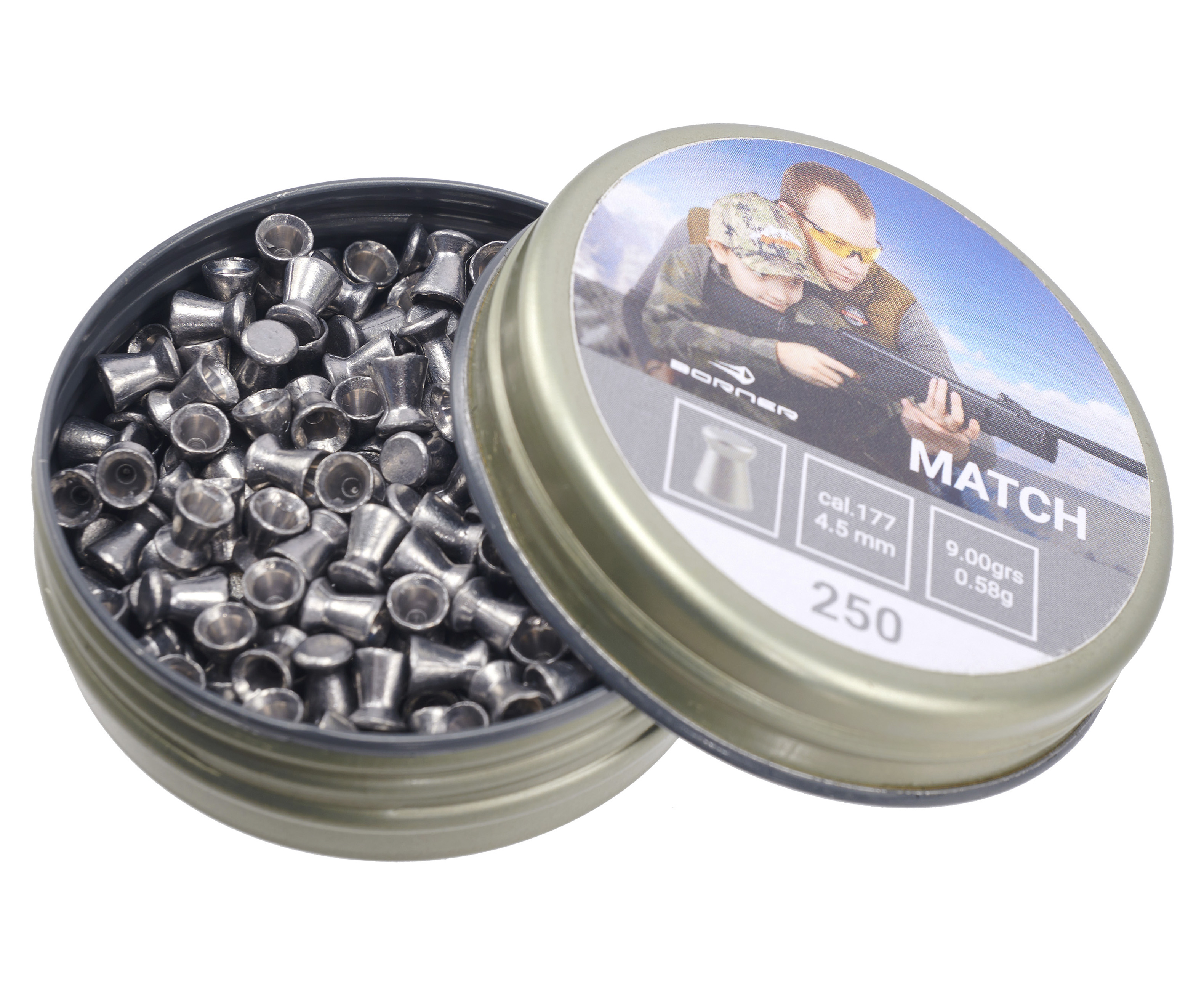 Для эффективного применения пневматических устройств стрелок выбирает метательные элементы, соответствующие техническим параметрам системы. В этом аспекте спросом пользуется продукция от американского производителя Борнер, который известен выпуском не только оружия, но и сопутствующих компонентов. Предприятие активно насыщает свой ассортимент всевозможными пулями, которые различаются диаметром, массой и форматом головной секции.